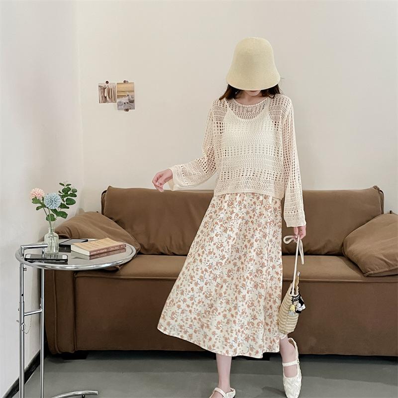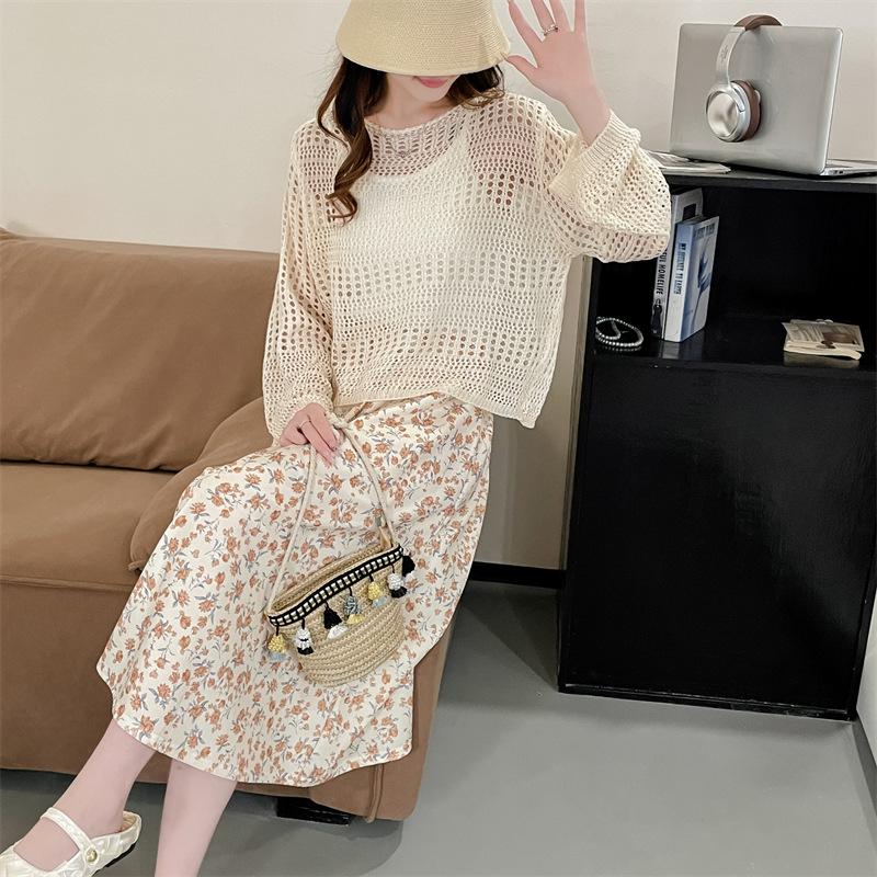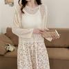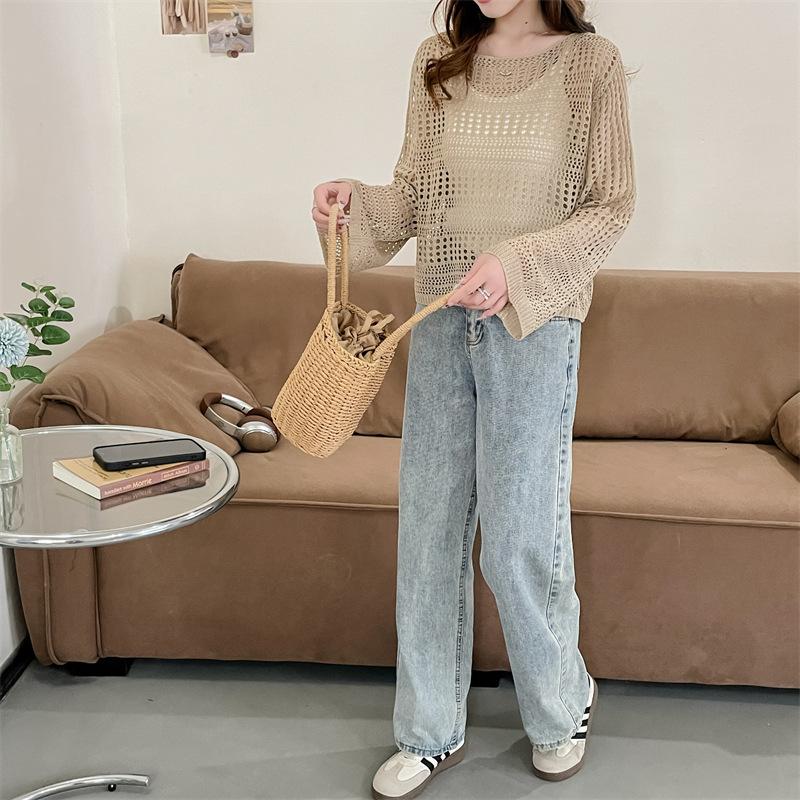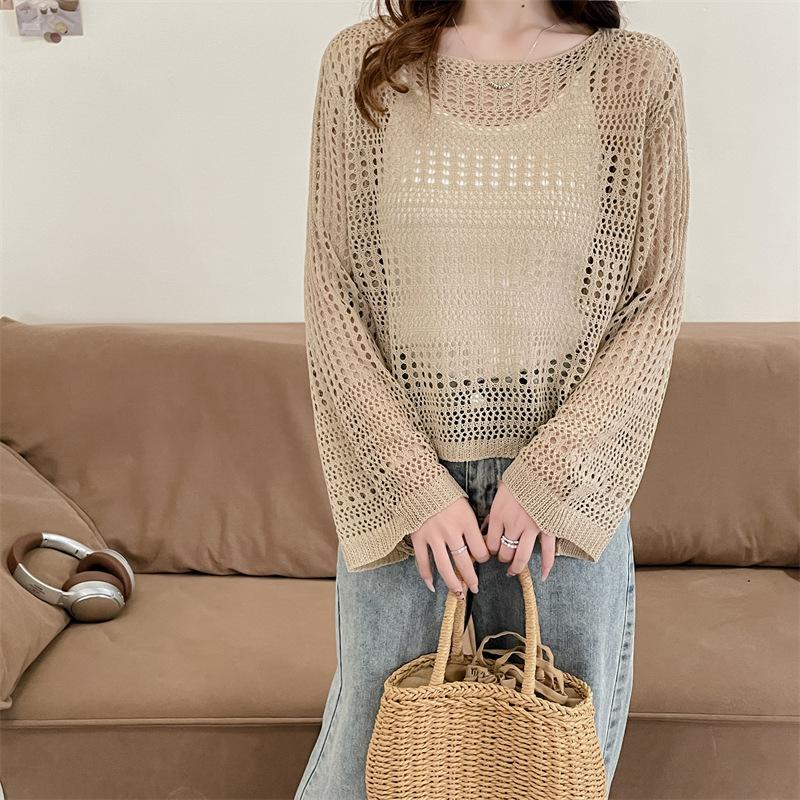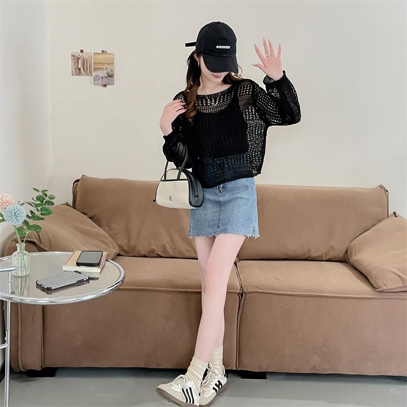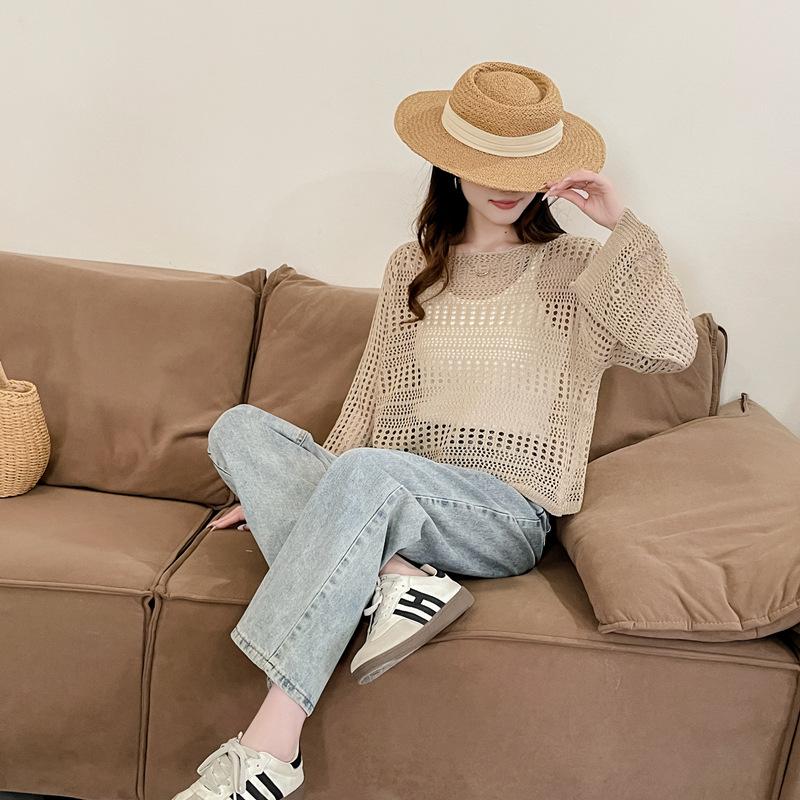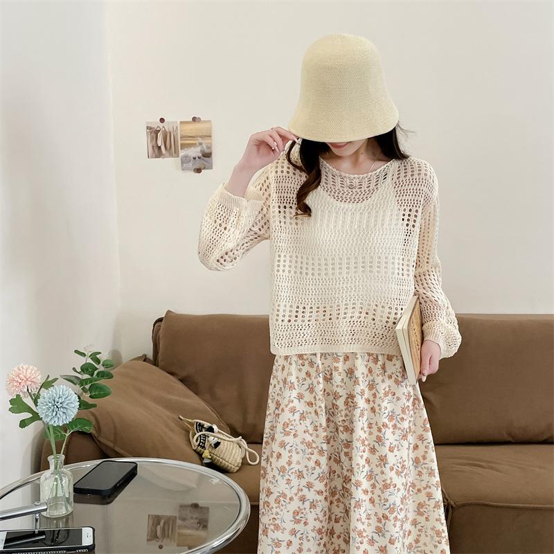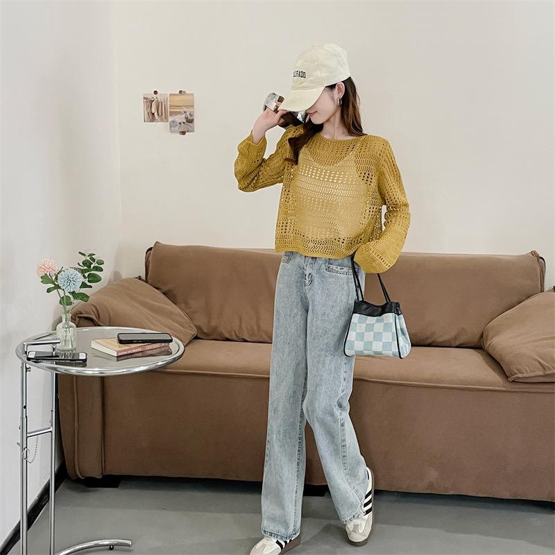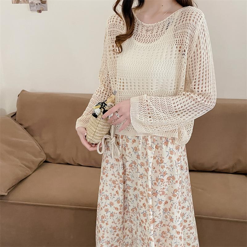 Blusa de Punto Calada Corta Protectora Solar de Tiro Real para Mujer Verano Nuevo Diseño Nicho Top Dulce de Manga Larga