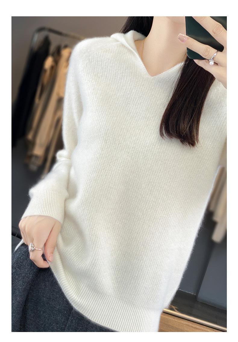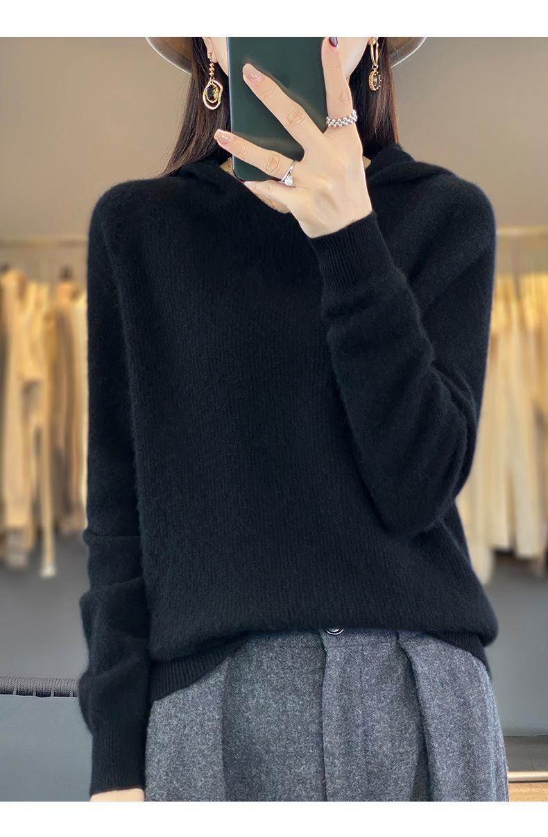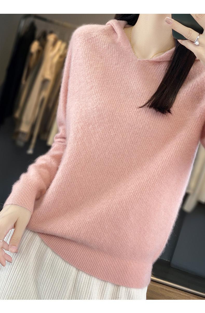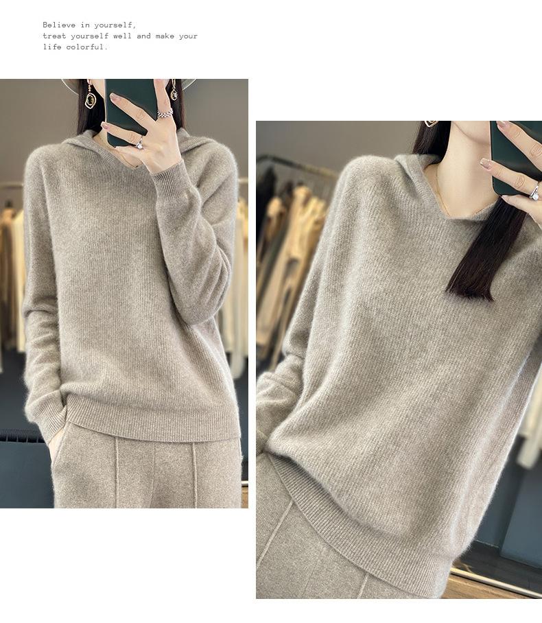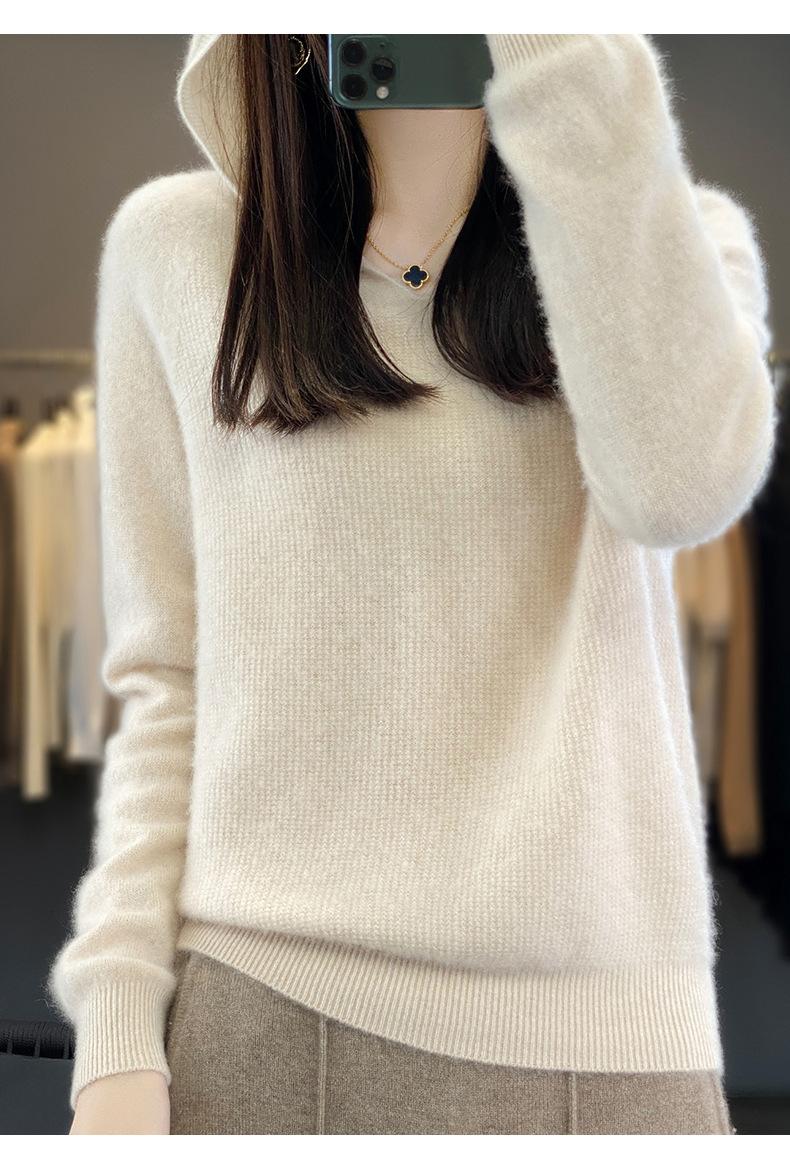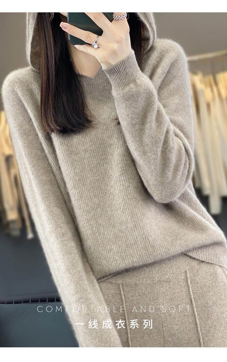 Ropa de primera línea otoño e invierno suéter grueso holgado estilo coreano con capucha para mujer camisa básica de punto de lana