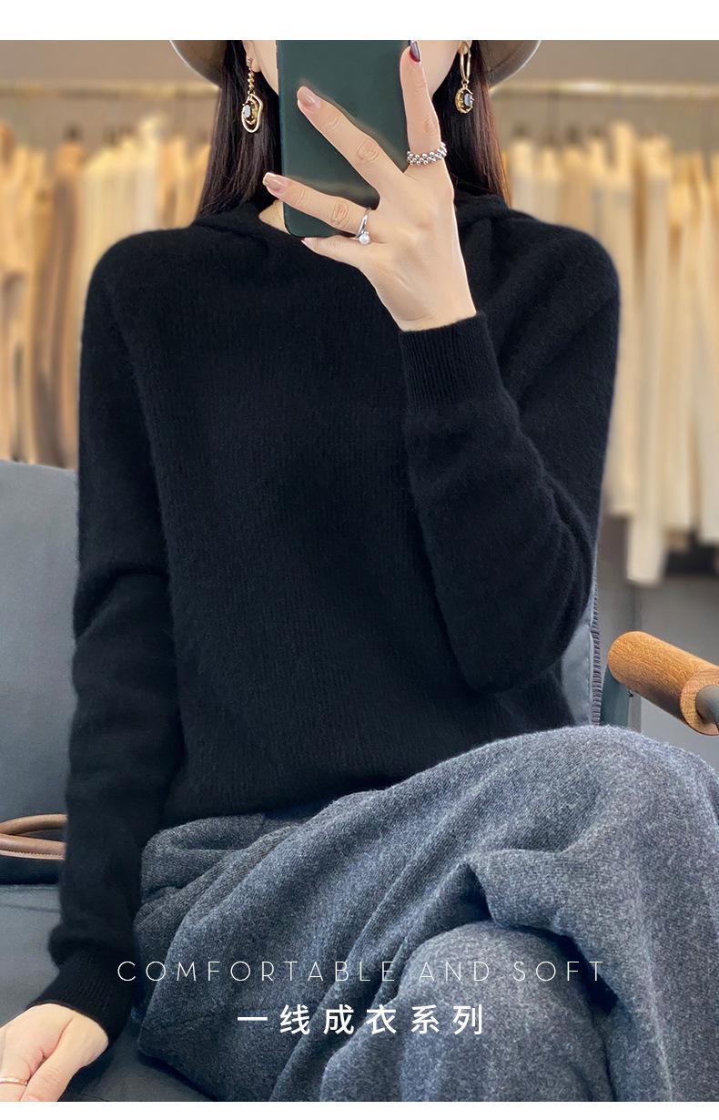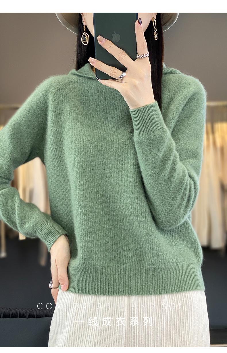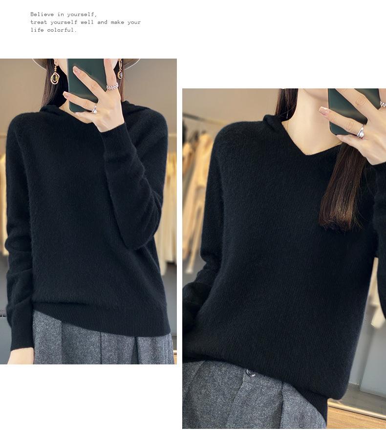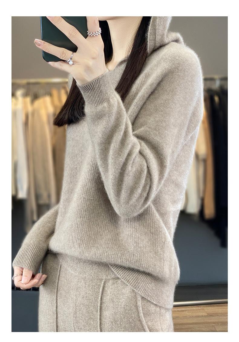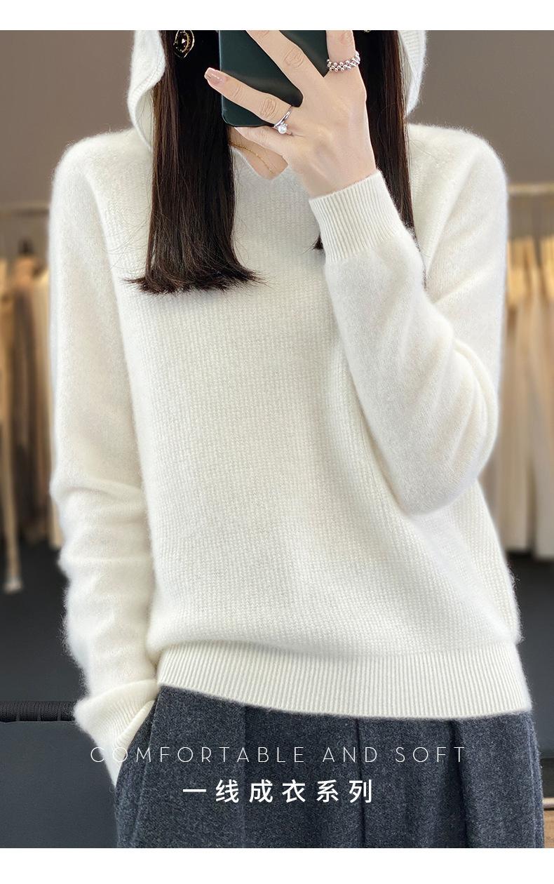 Ropa de primera línea otoño e invierno suéter grueso holgado estilo coreano con capucha para mujer camisa básica de punto de lana