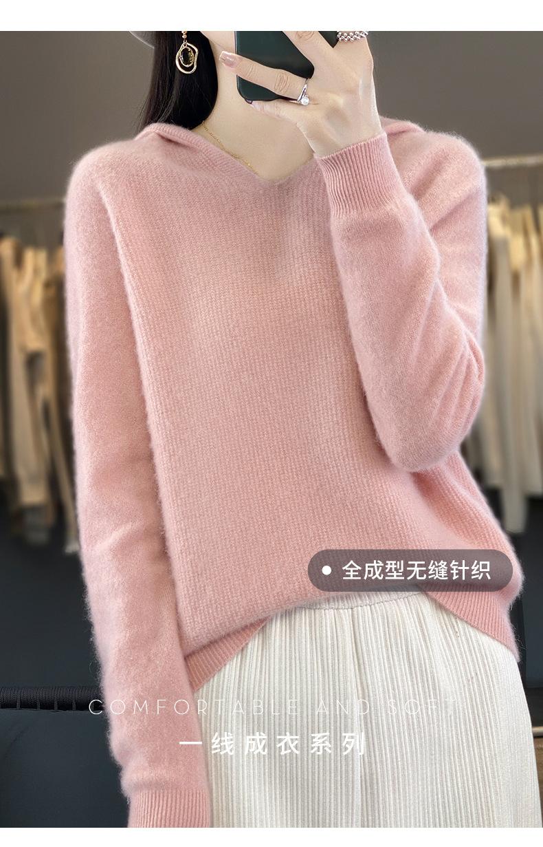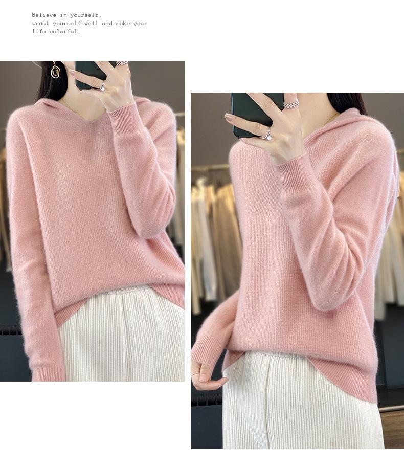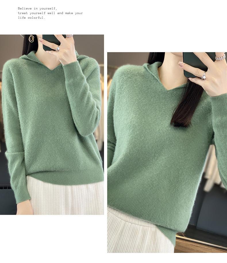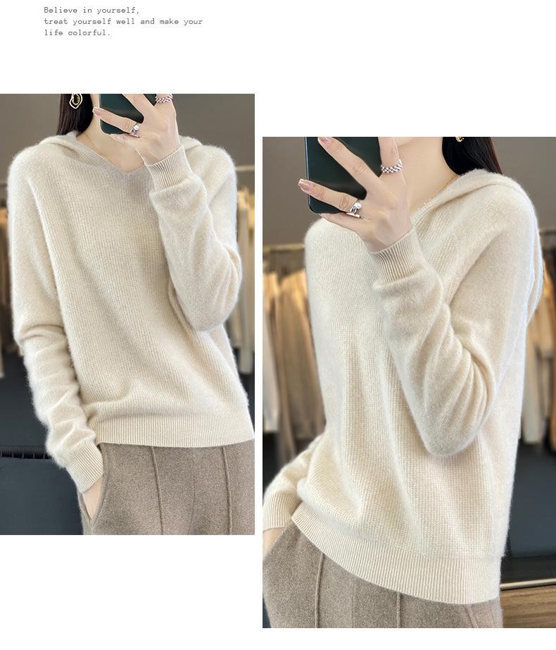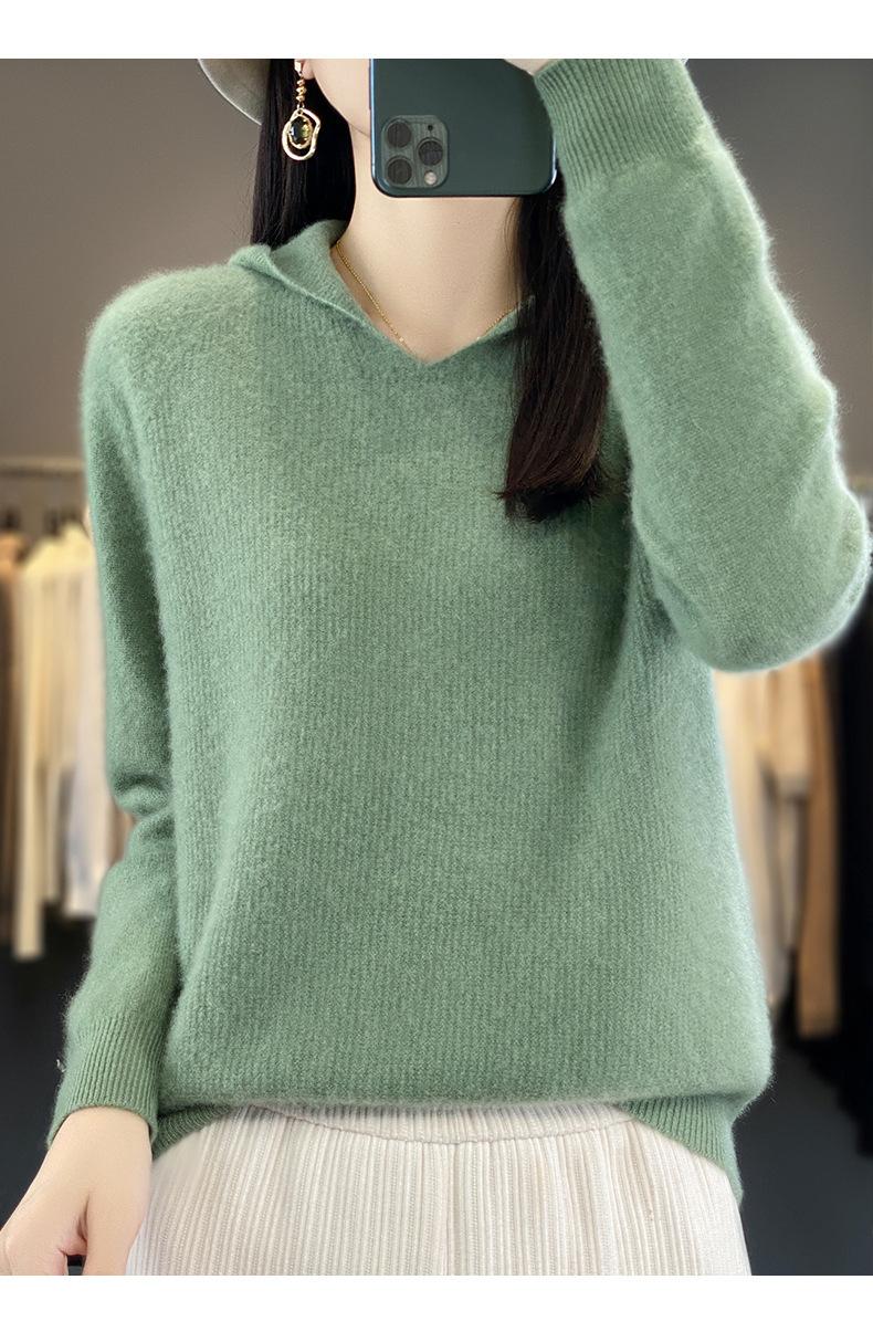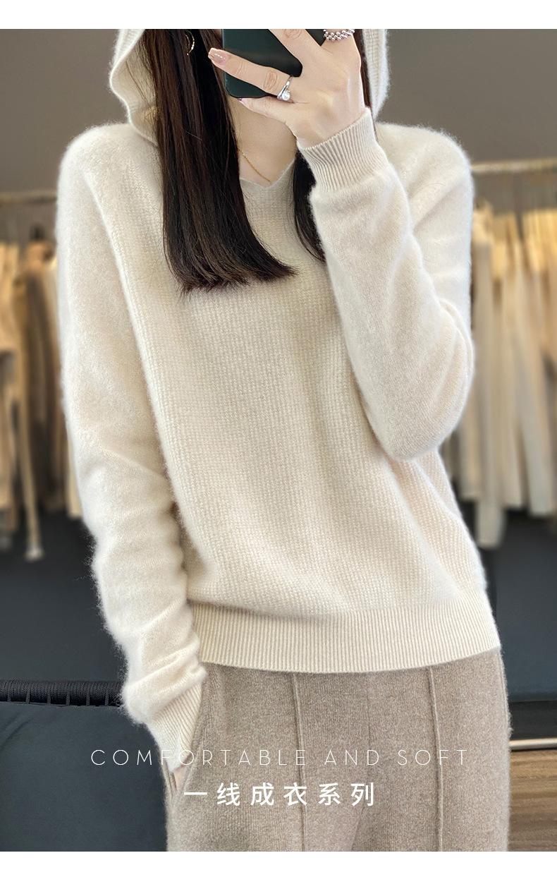 Ropa de primera línea otoño e invierno suéter grueso holgado estilo coreano con capucha para mujer camisa básica de punto de lana