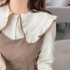 El escote del vestido chaleco adopta un diseño de escote barco para modificar la línea del cuello.