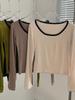 2023 outono novo casual simples commuter mercerizado pele líquida moda contraste cor pescoço redondo manga comprida camisa de fundo para as mulheres