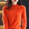 Otoño e invierno 2024 nueva ropa de primera línea suéter de lana entera para mujer cuello medio alto color sólido manga larga suéter para mujer camisa base