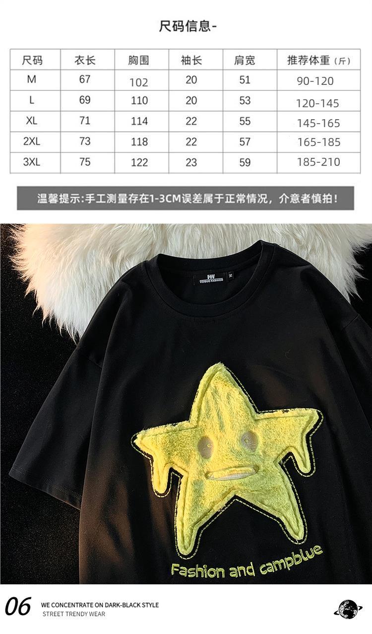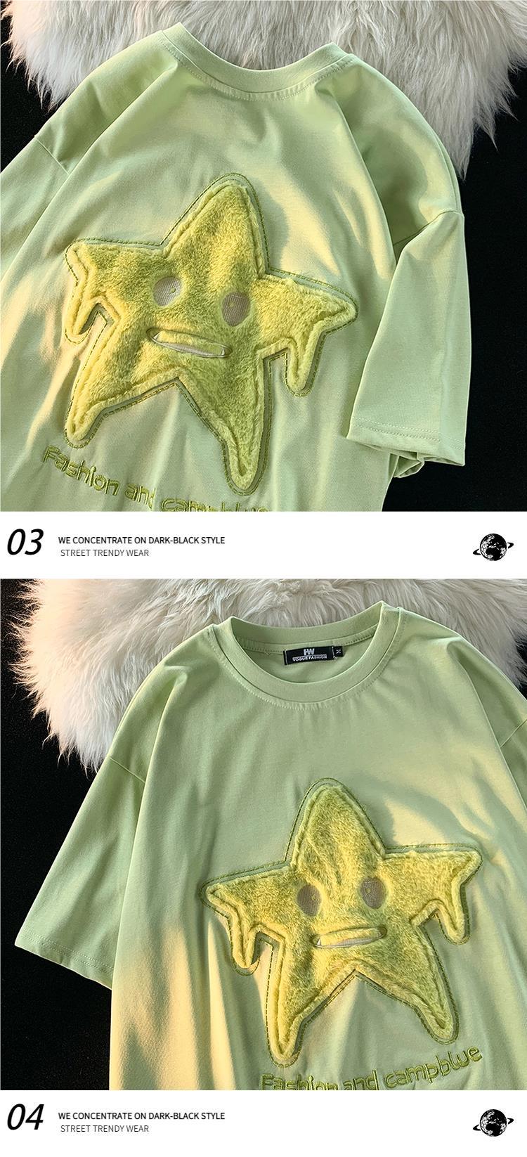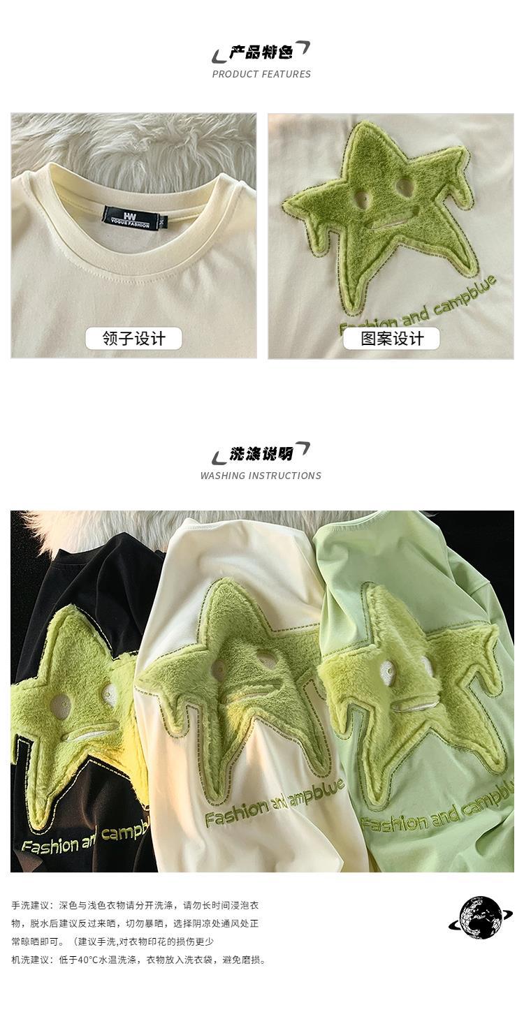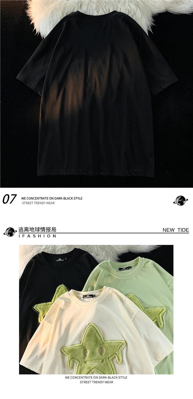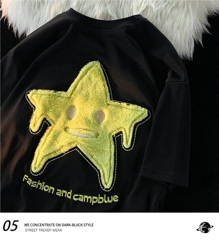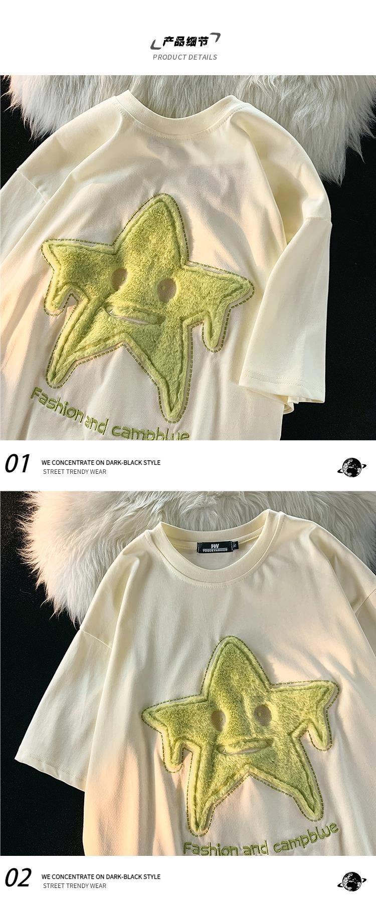 Camiseta bordada de algodón flocado de verano 2025, estilo americano, holgada, de manga corta, para mujer, de verano, con cuello redondo y manga corta para pareja.