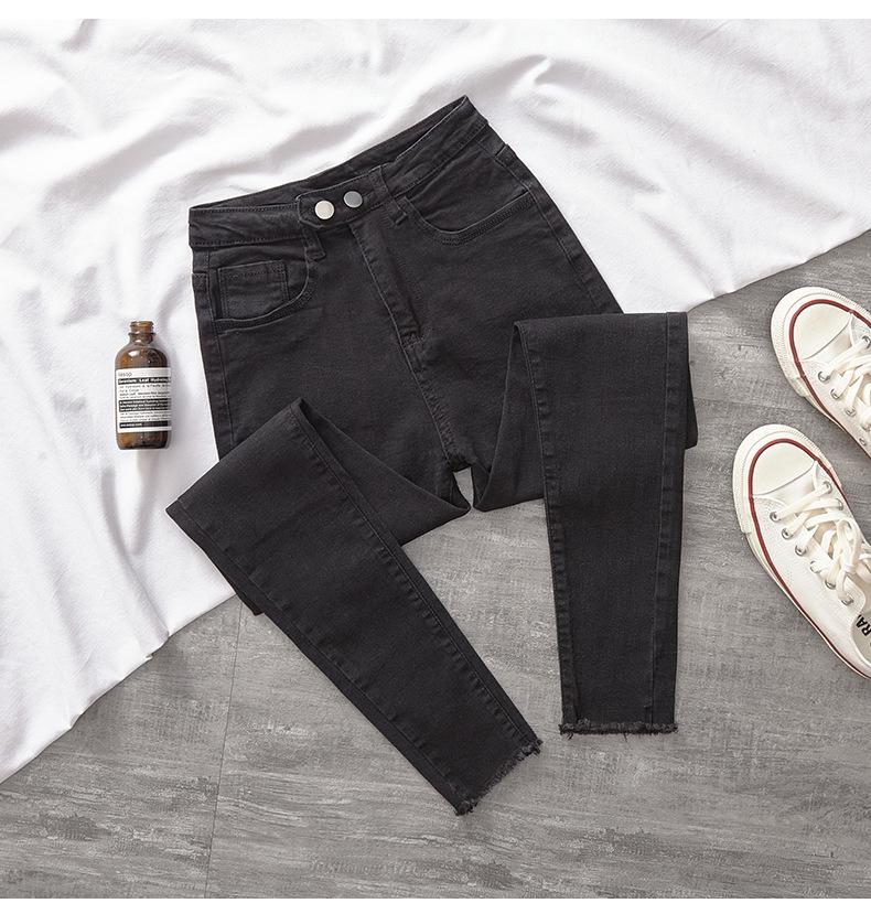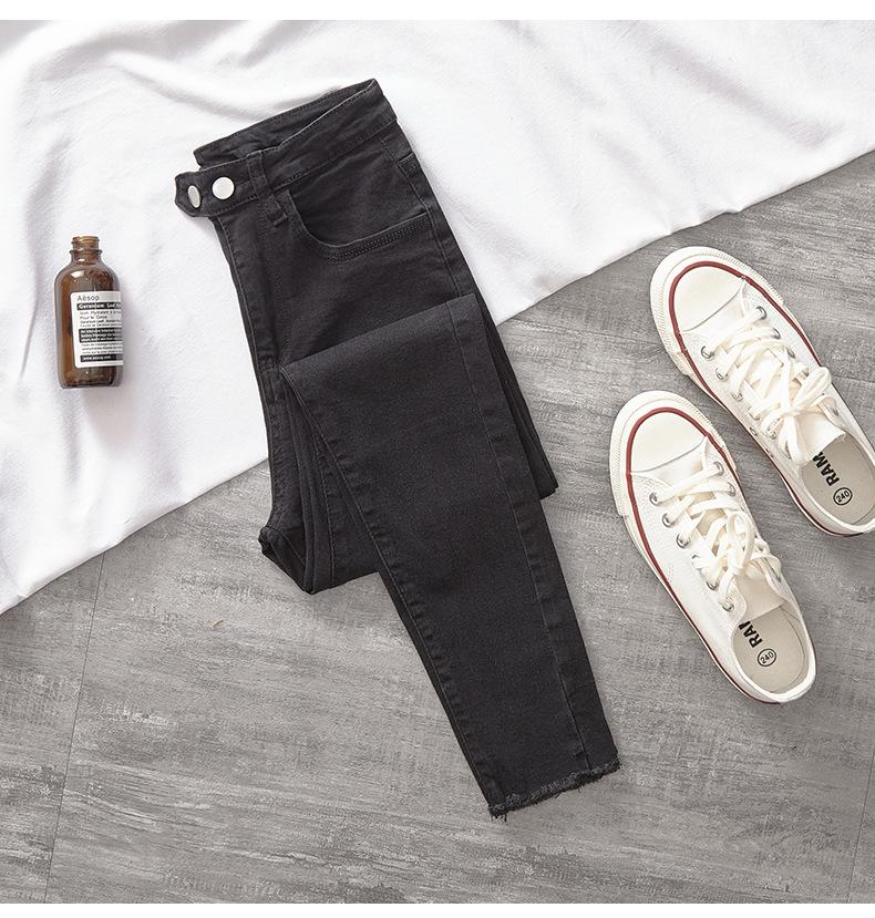 Pantalones vaqueros negros ajustados de cintura alta para mujer, primavera y otoño, nuevos modelos de ropa exterior, ajustados, combinables, recortados, elásticos, tipo lápiz.
