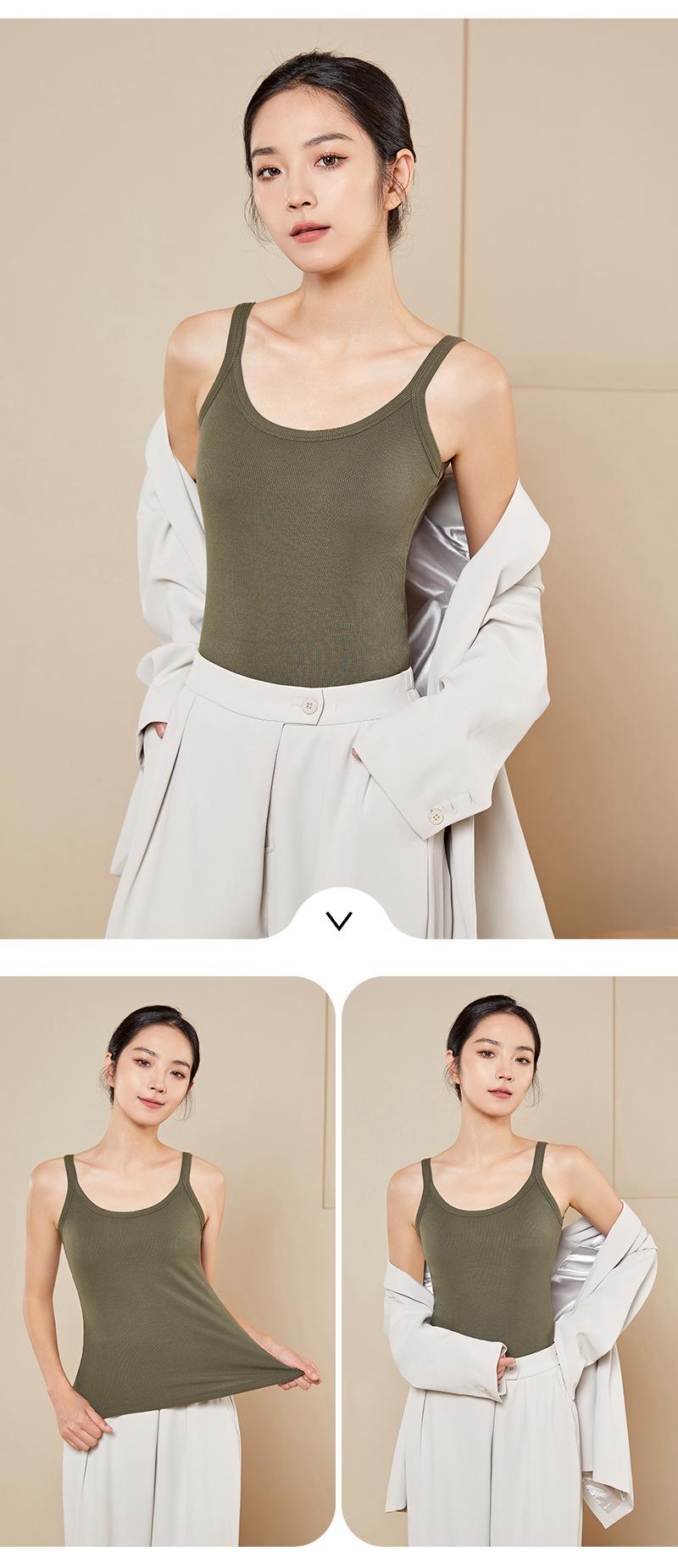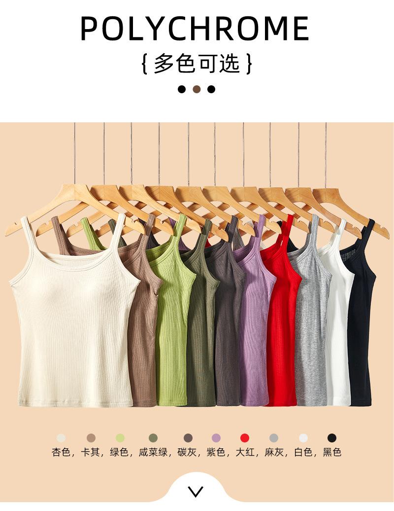 Primavera y Verano Nuevo Estilo 2025 Chaleco de Tirantes con Cuello Redondo para Mujer con Almohadilla en el Pecho, Ajuste Simple y Entallado, Hermosa Espalda, Camiseta Básica Versátil y sin Costuras