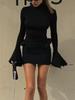 Otoño 2024 Nuevo vestido elegante ajustado con cuello redondo, mangas acampanadas y color liso de Amazon Crossborder, disponible en Europa y América