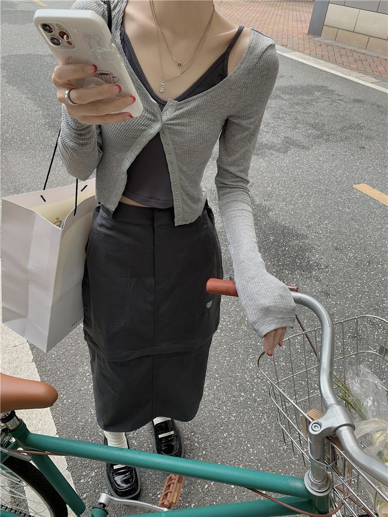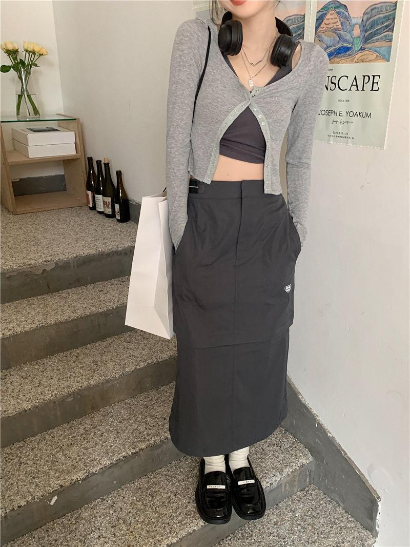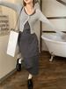 Light gray cardigan one-piece, Dark gray sling single piece, Light gray cardigan + dark gray sling, Dark gray skirt one-piece
