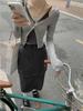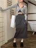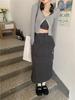 Falda A-line de Nicho con Diseño Retro Gris para Mujer, Falda Midi, Cárdigan con Tirantes, Traje de Moda de Tres Piezas