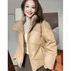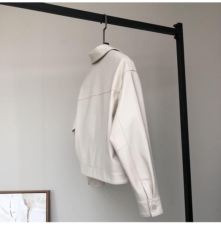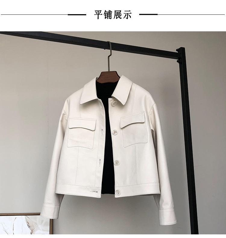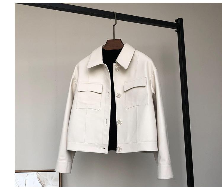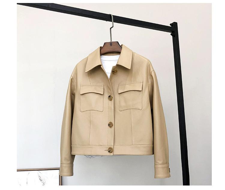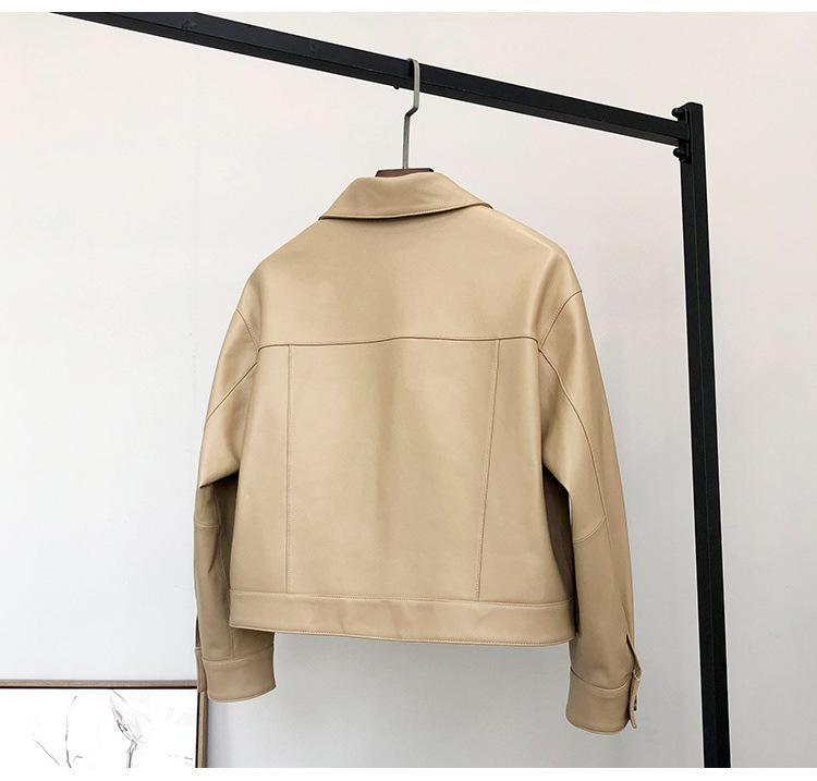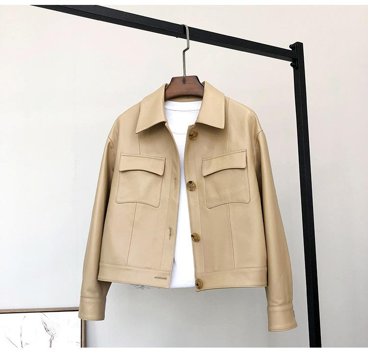 Chaqueta de Piel Genuina Haining Nueva Primavera 2025 para Mujer Corta de Piel Genuina de Piel de Oveja Moda Personalizada Cuello Cuadrado Chaqueta Pequeña