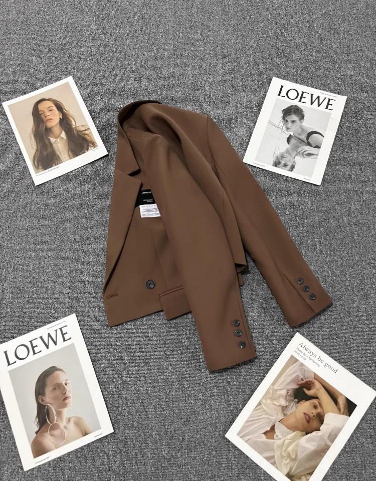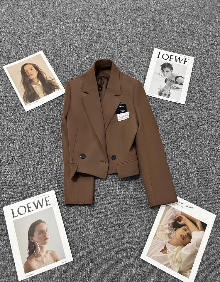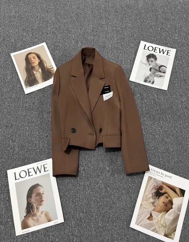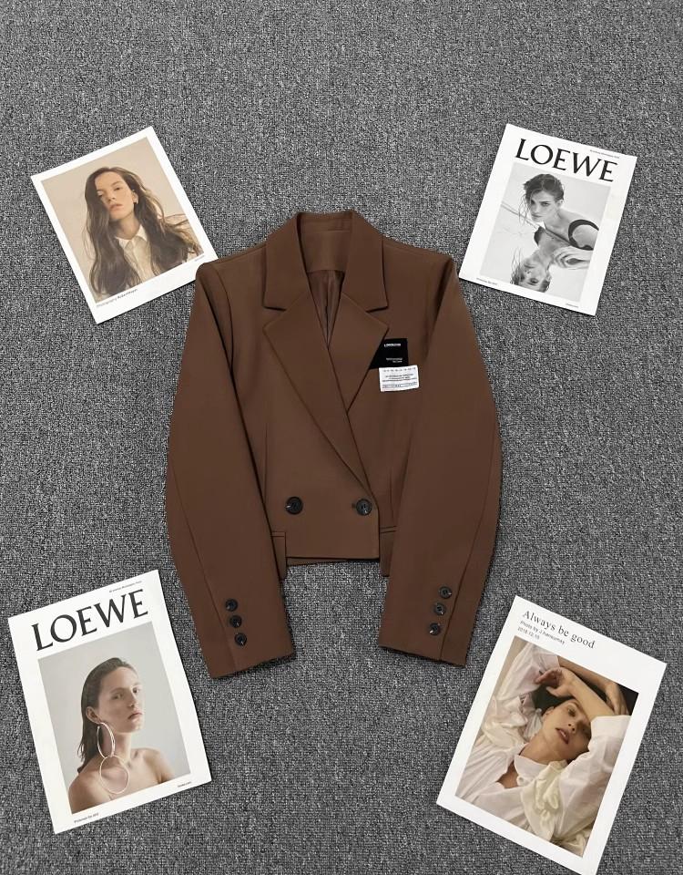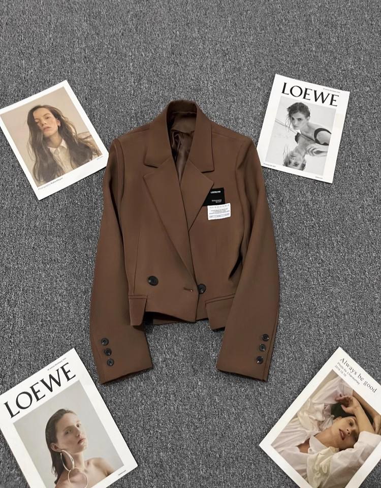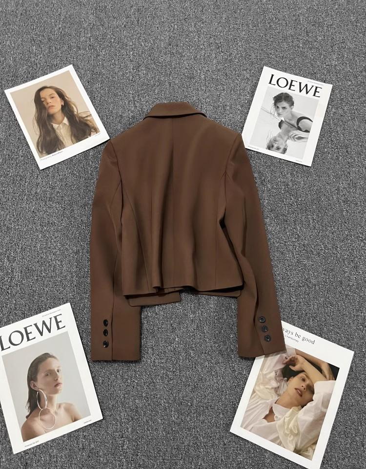 Chaqueta de Traje Corta Marrón para Mujer Primavera y Otoño 2024 Nuevo Estilo Diseño Pequeño Estilo Coreano Casual Nicho Traje