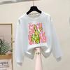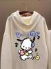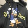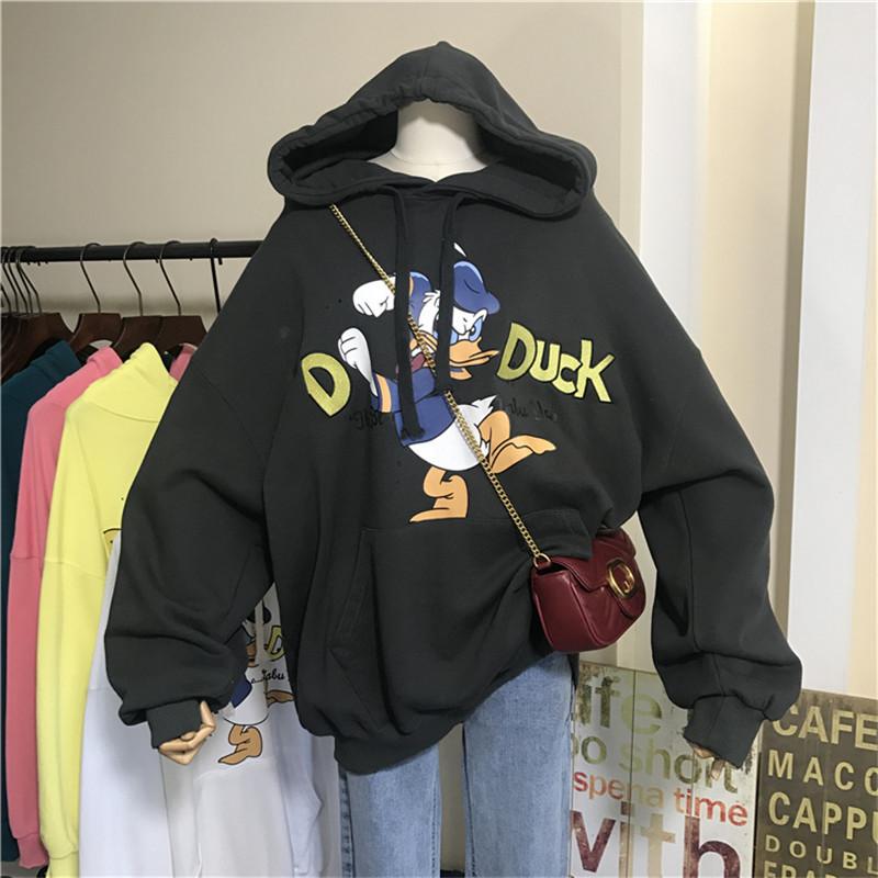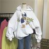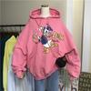 2025 Nuevo Otoño e Invierno Estampado de Dibujos Animados Cordón Capucha Terciopelo Engrosado Solapa Bolsillo Pantalones Sudadera Chaqueta Holgada para Mujer Estilo Coreano