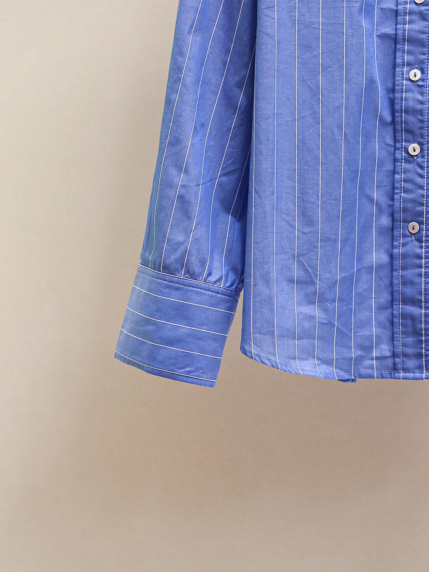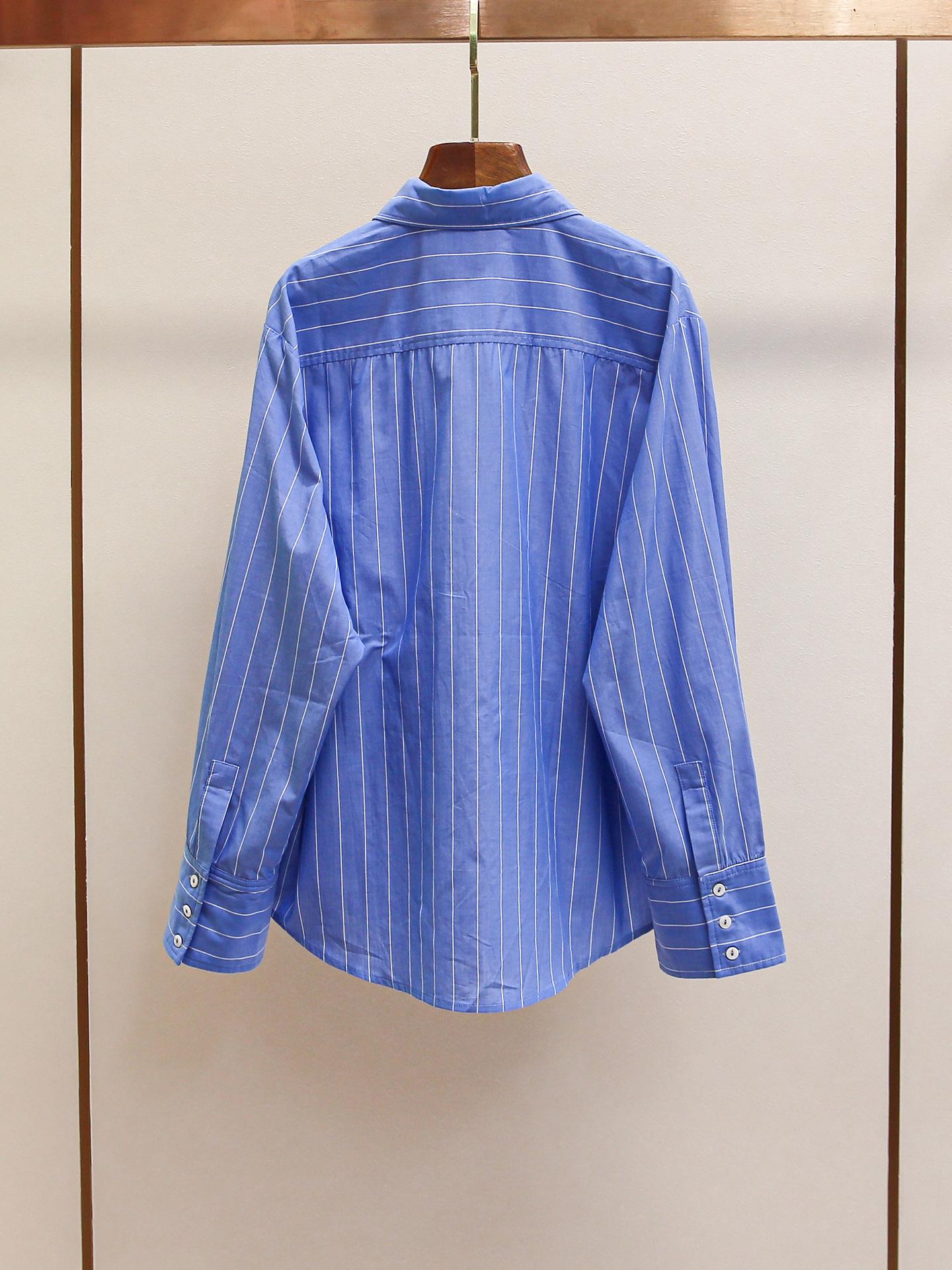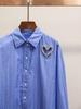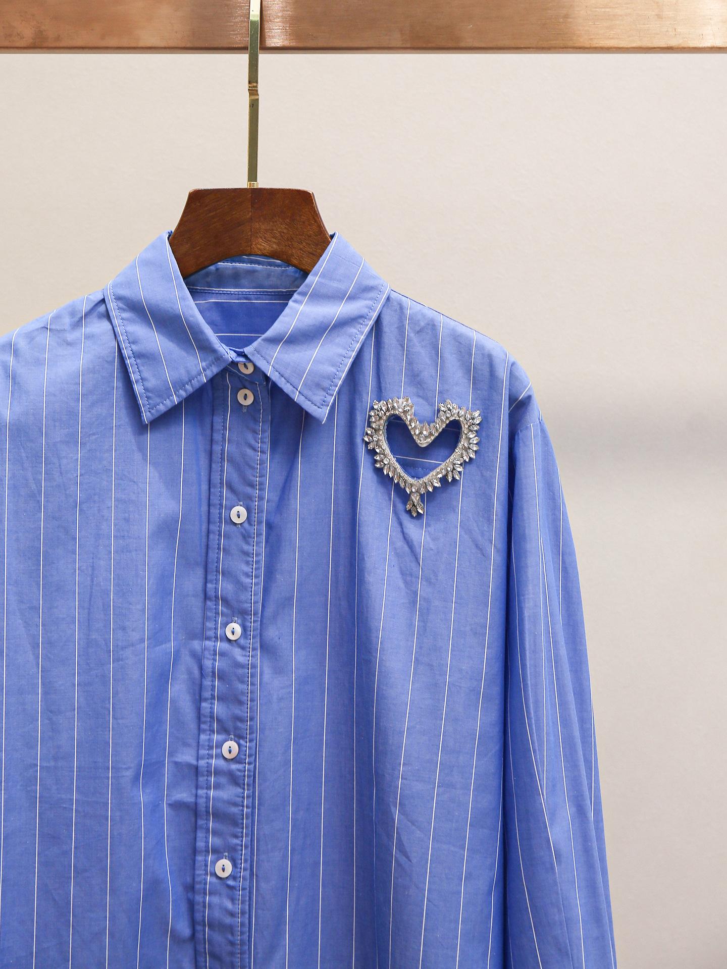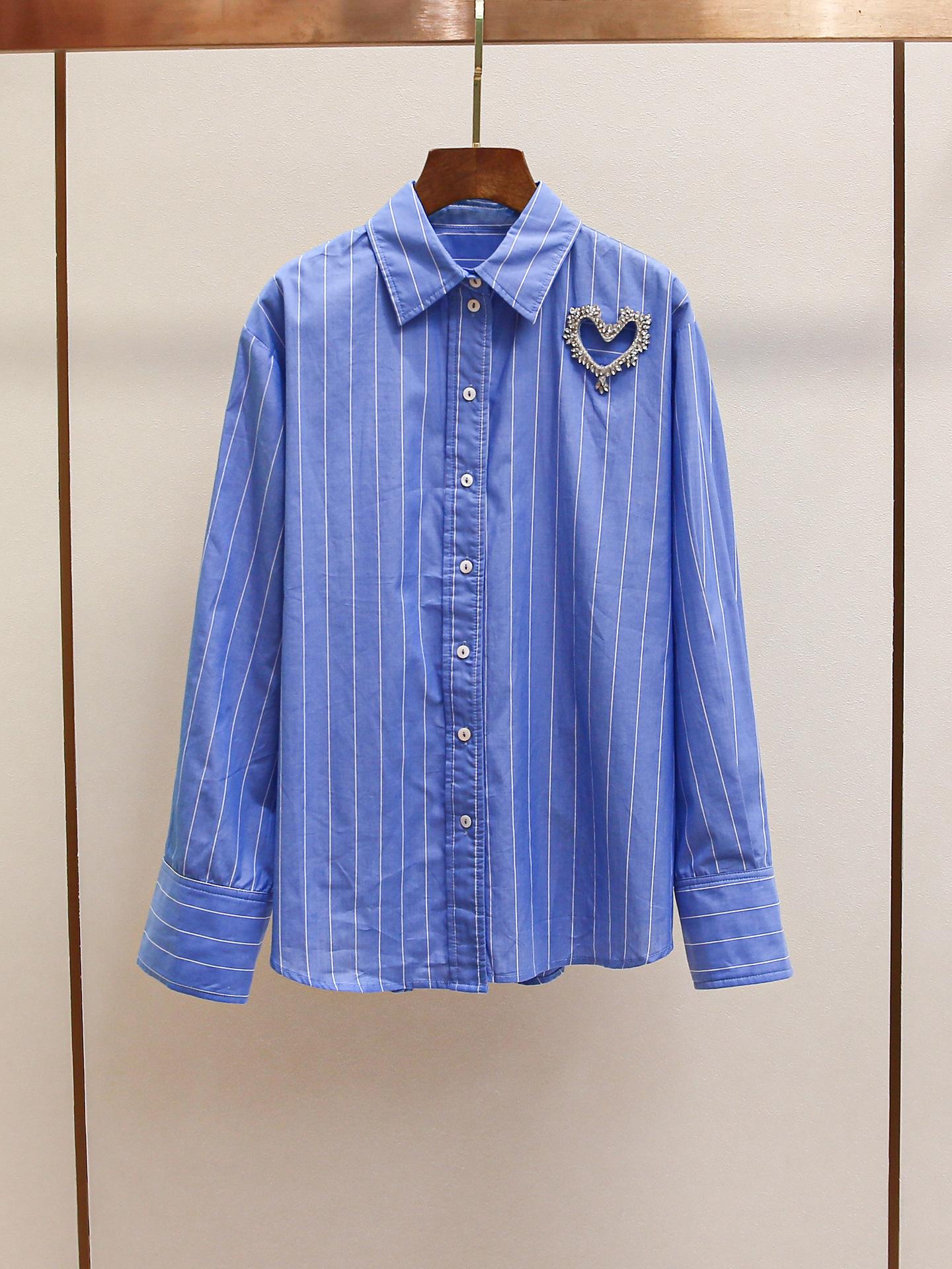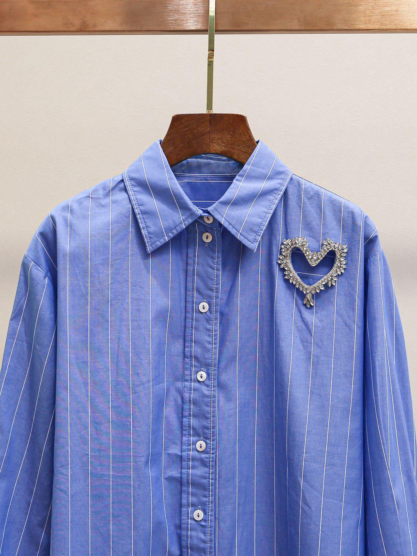 S Home 2024 Primavera Nuevo Solapa Francesa Diamante Calado Amor Camisa Rayada de Un Solo Botón Top para Mujer