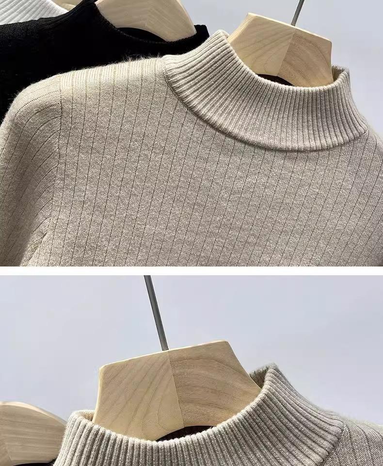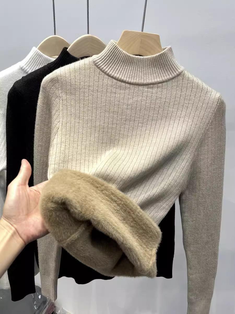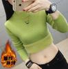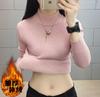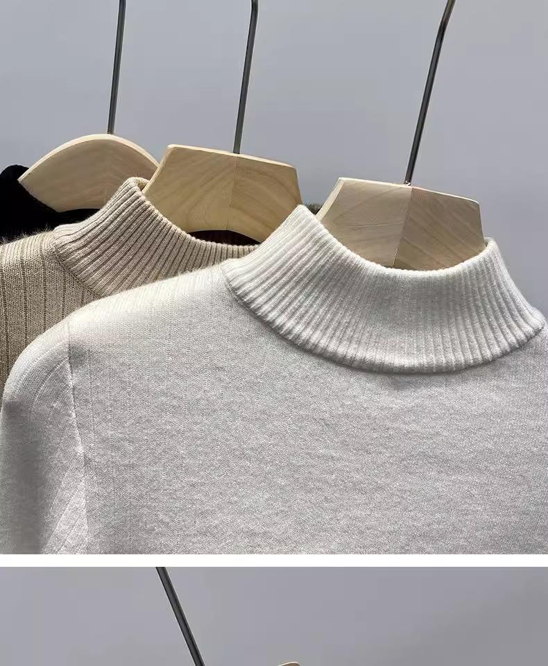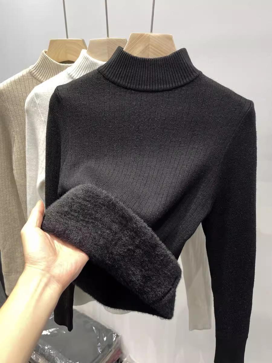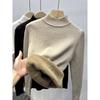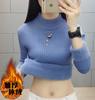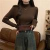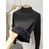 Suéter de cuello alto medio de terciopelo de una pieza engrosado para mujer, otoño e invierno, nuevo suéter interior cálido con forro polar, color sólido que combina con todo.