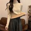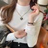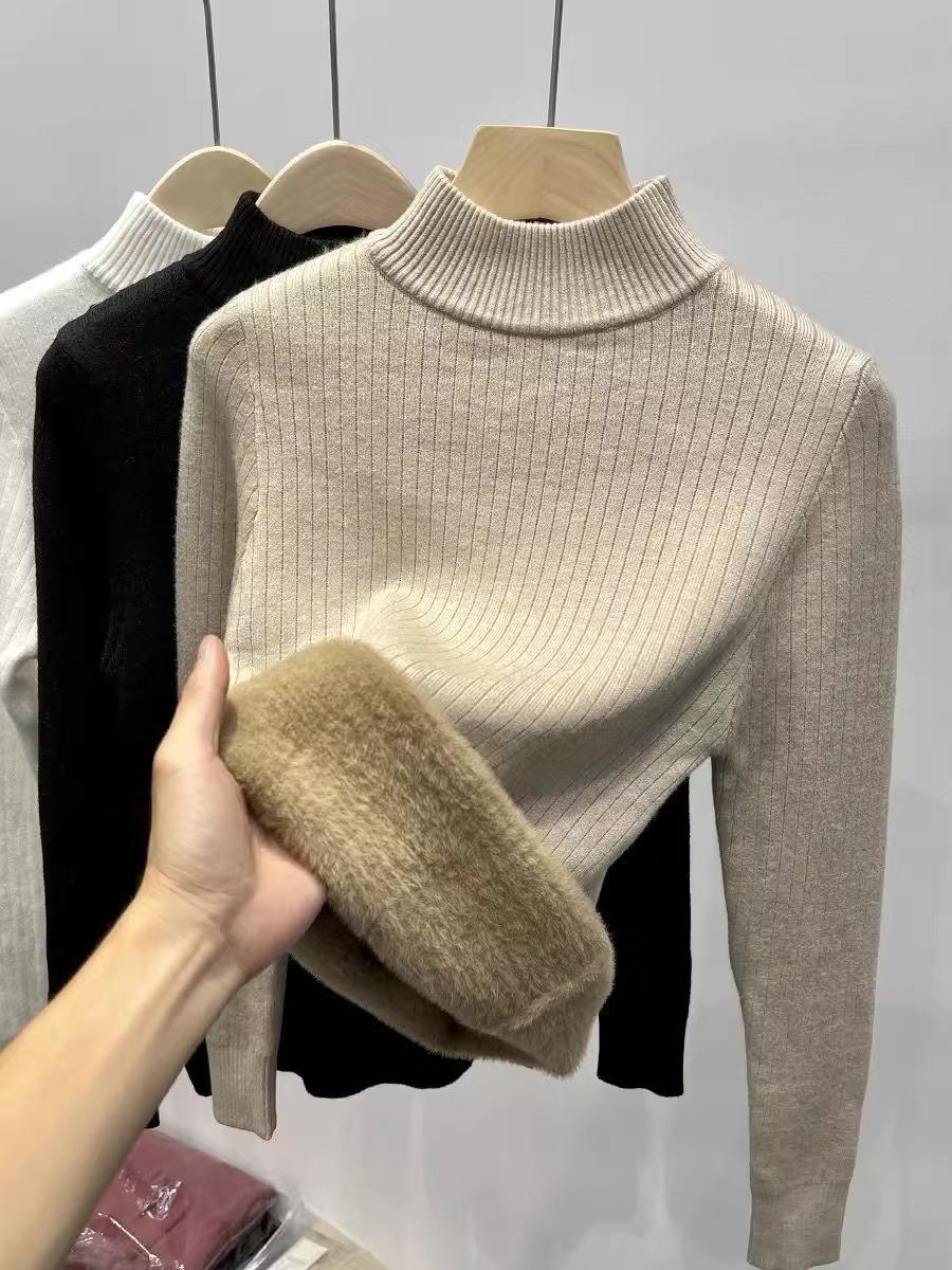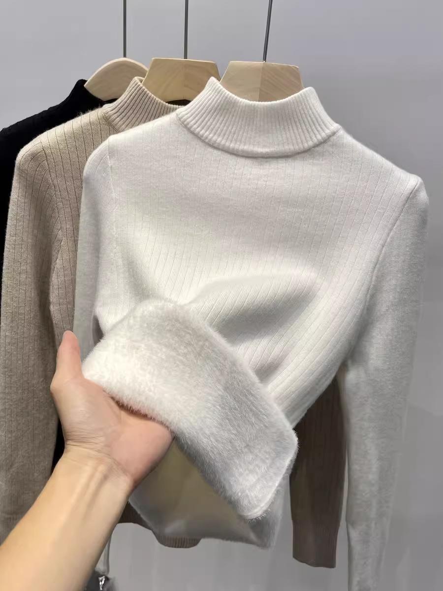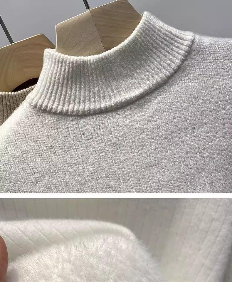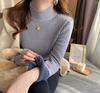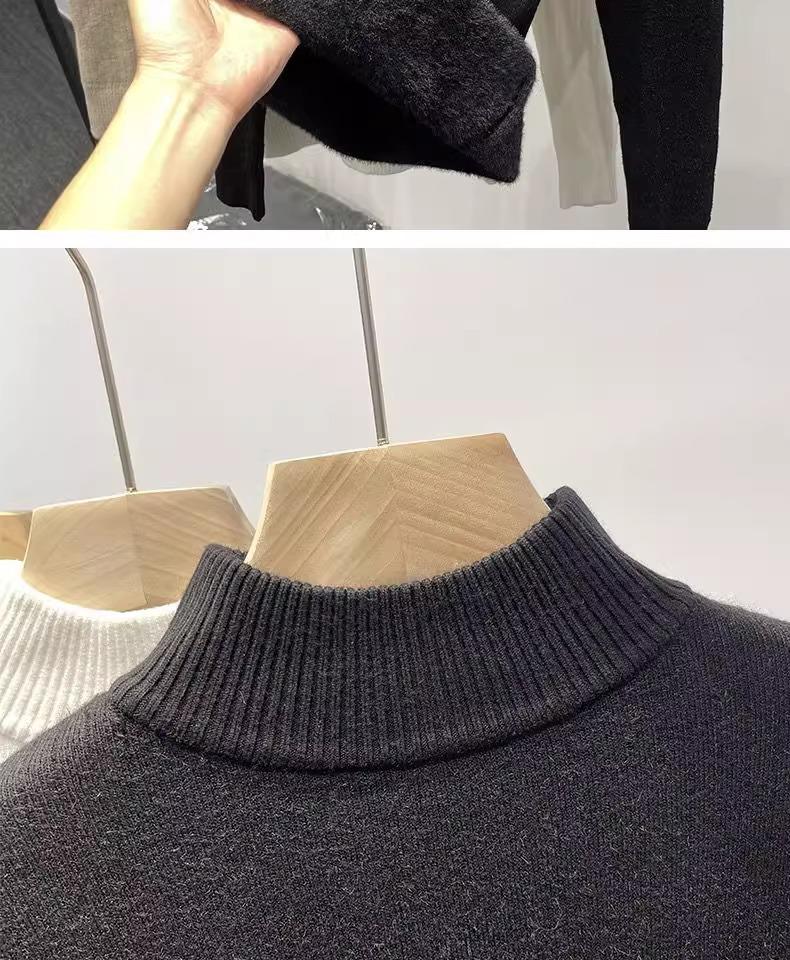 Suéter de cuello alto medio de terciopelo de una pieza engrosado para mujer, otoño e invierno, nuevo suéter interior cálido con forro polar, color sólido que combina con todo.