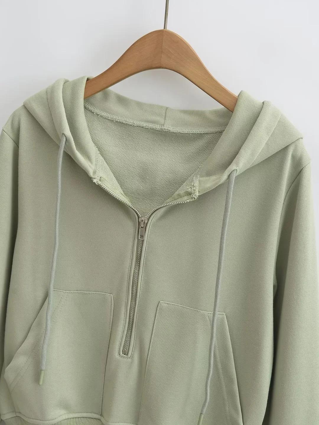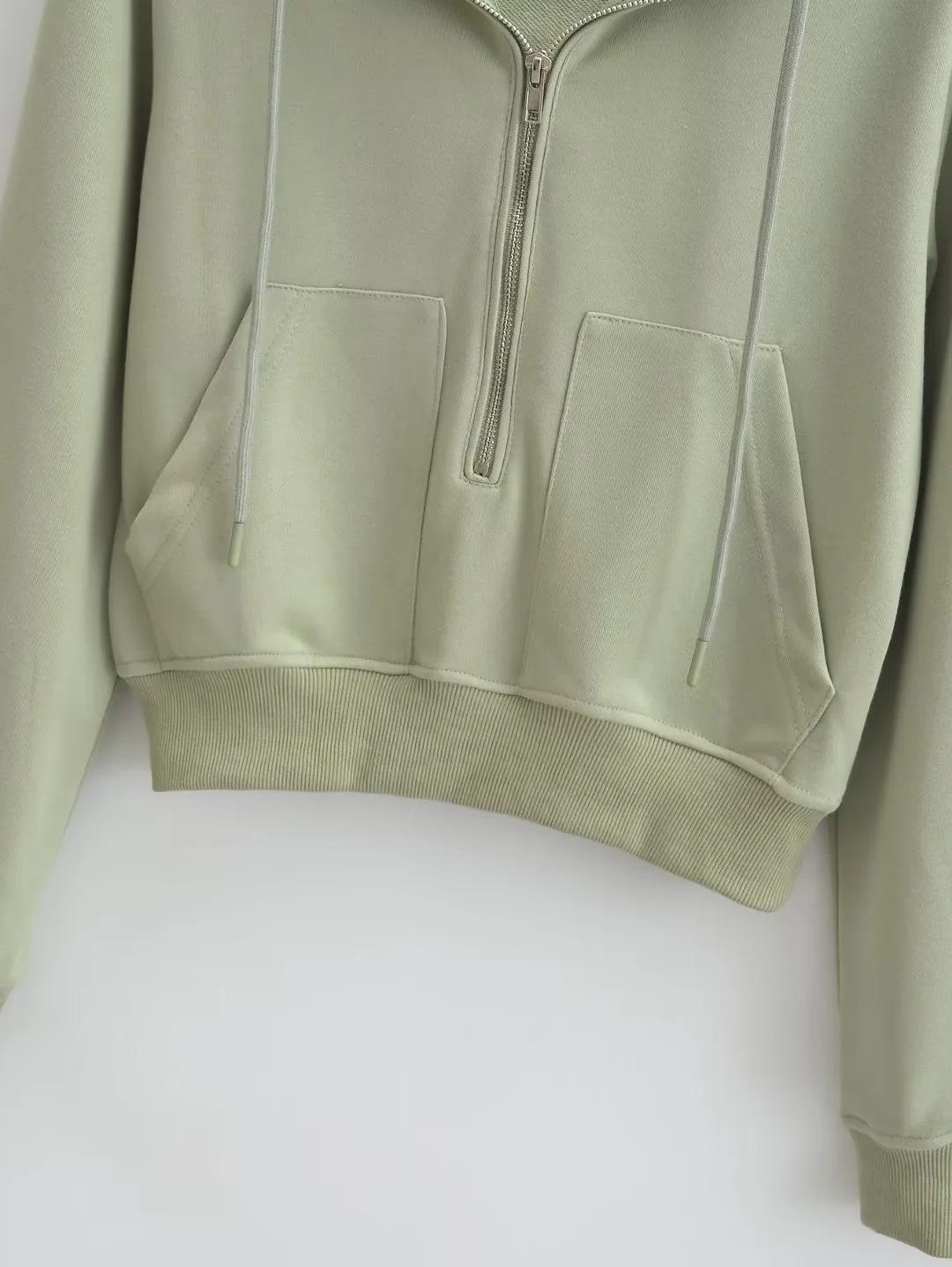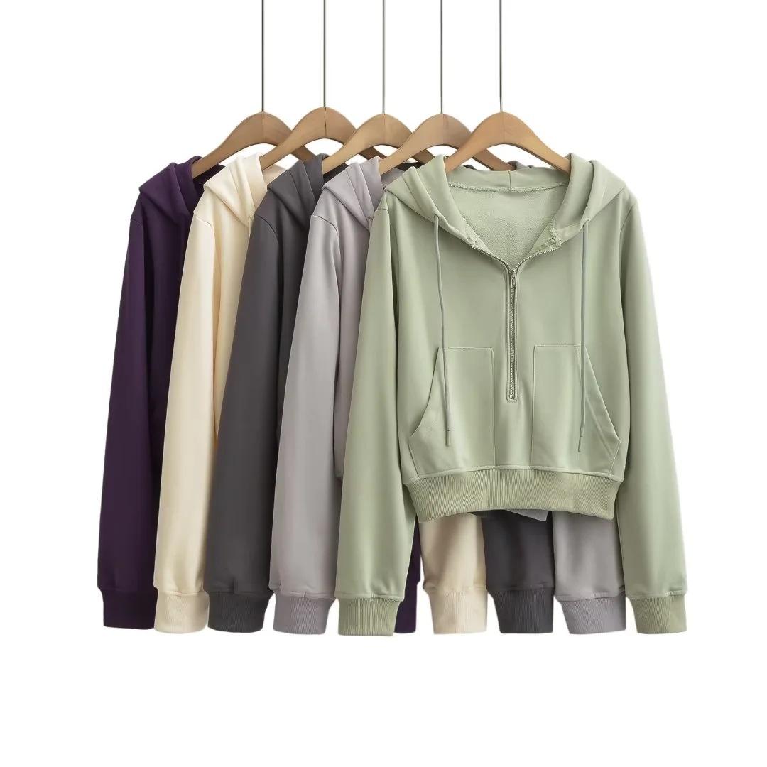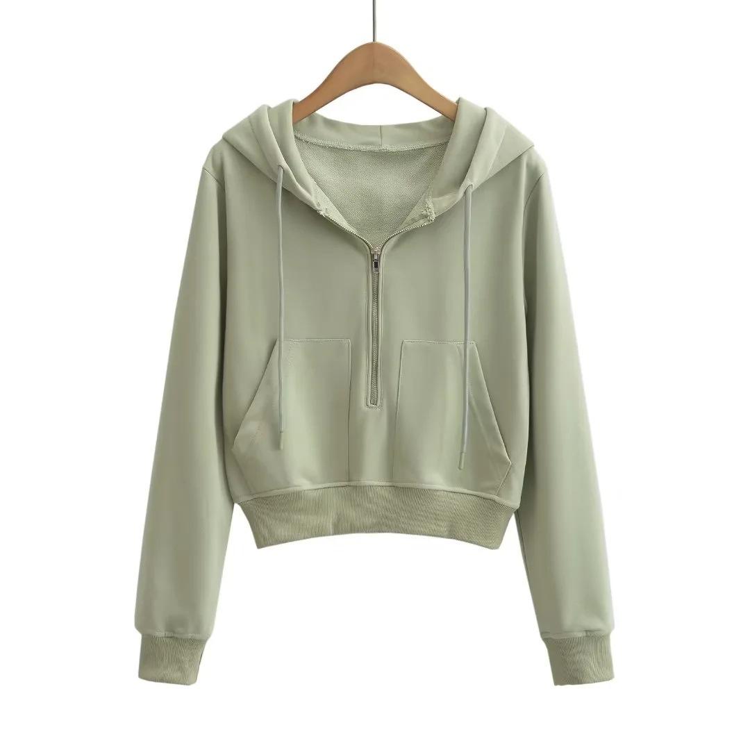 Suéter corto con media cremallera de estilo europeo y americano para mujer, otoño 2023, nuevo abrigo básico holgado con capucha, abrigo de moda para mujer