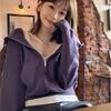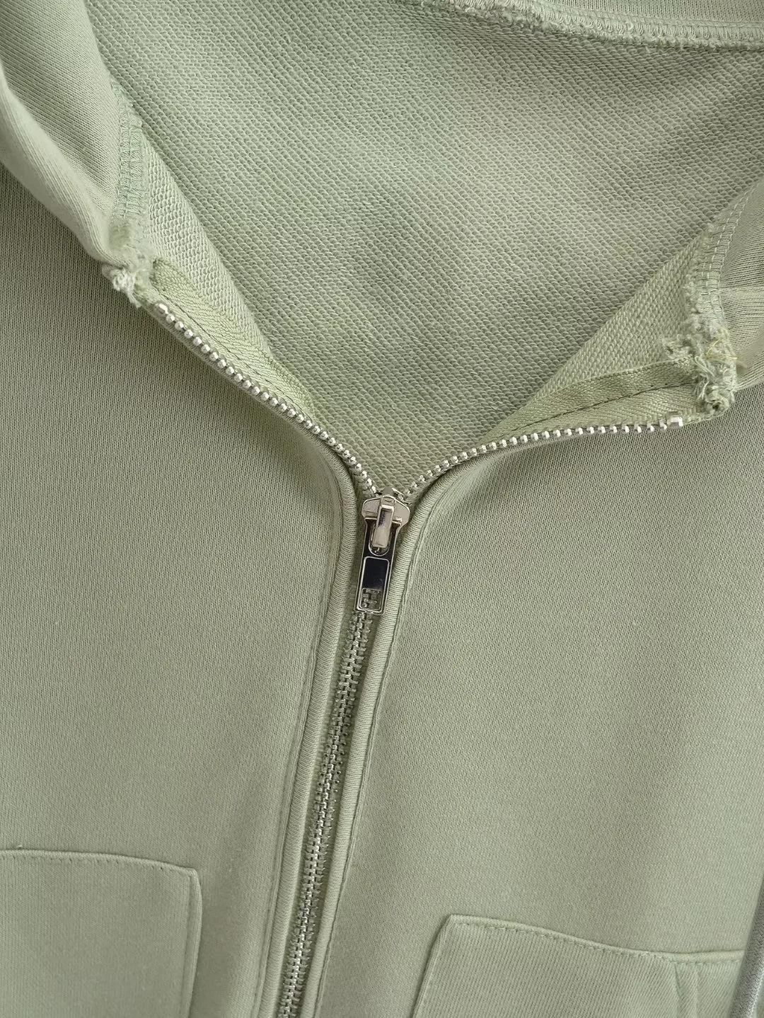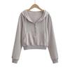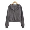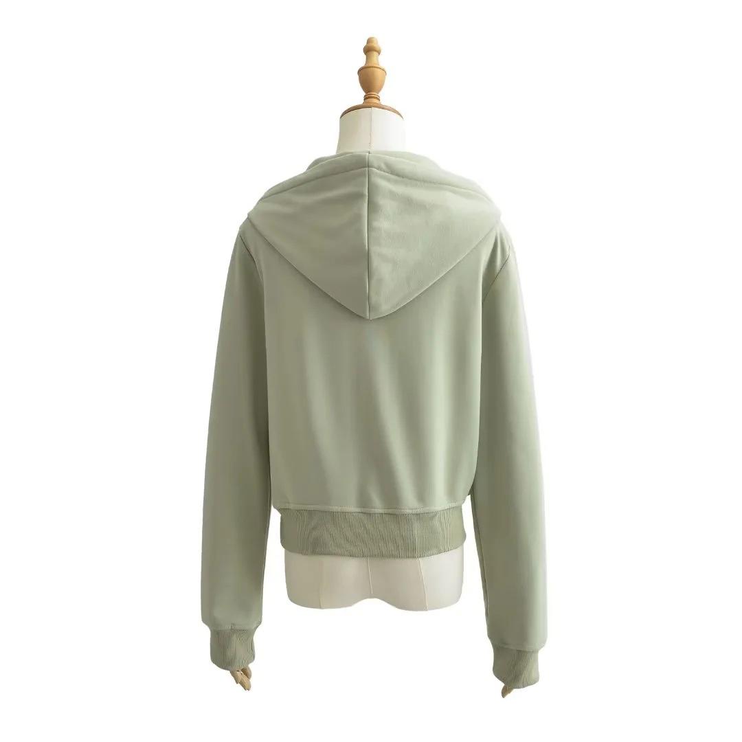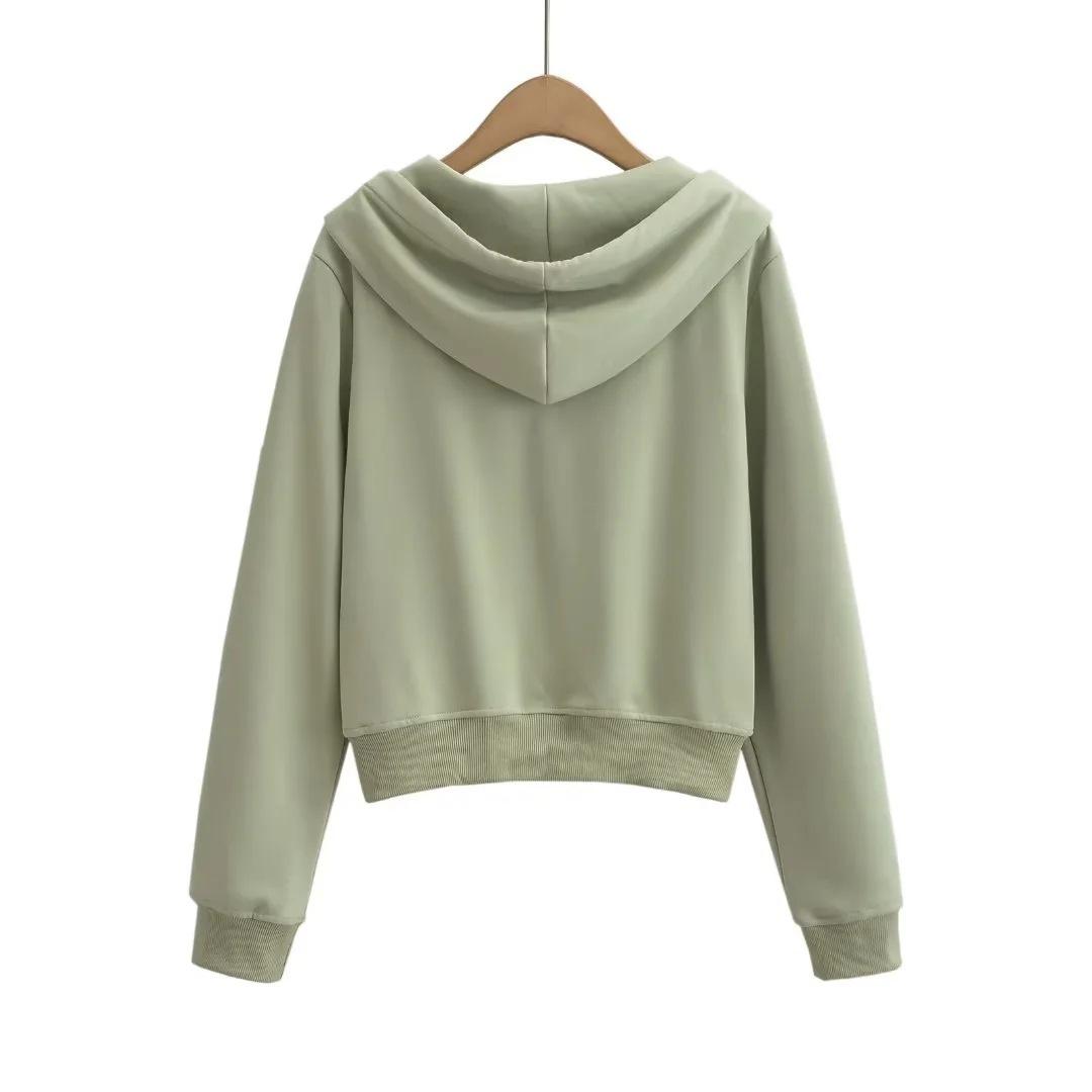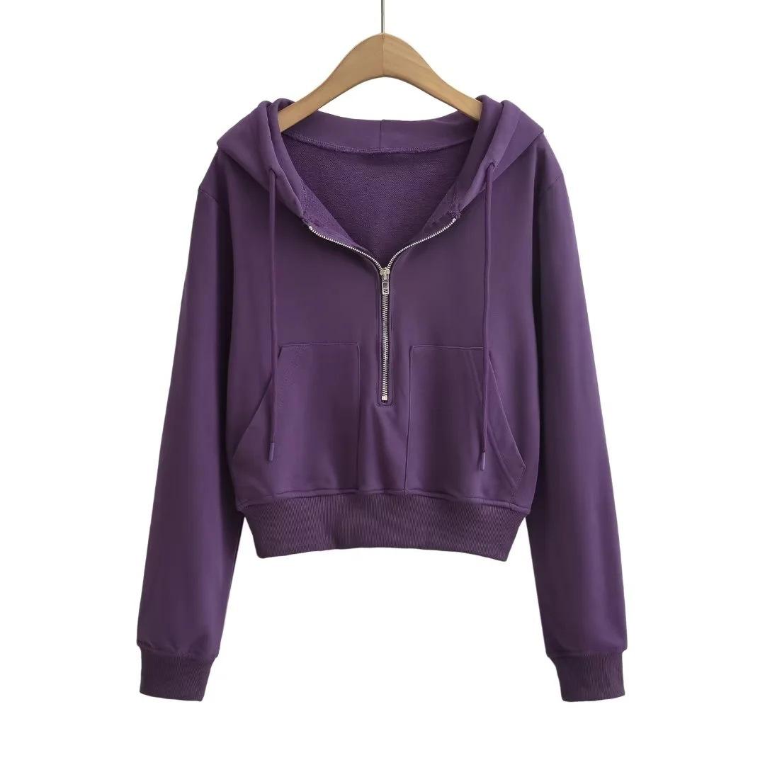 Suéter corto con media cremallera de estilo europeo y americano para mujer, otoño 2023, nuevo abrigo básico holgado con capucha, abrigo de moda para mujer