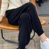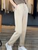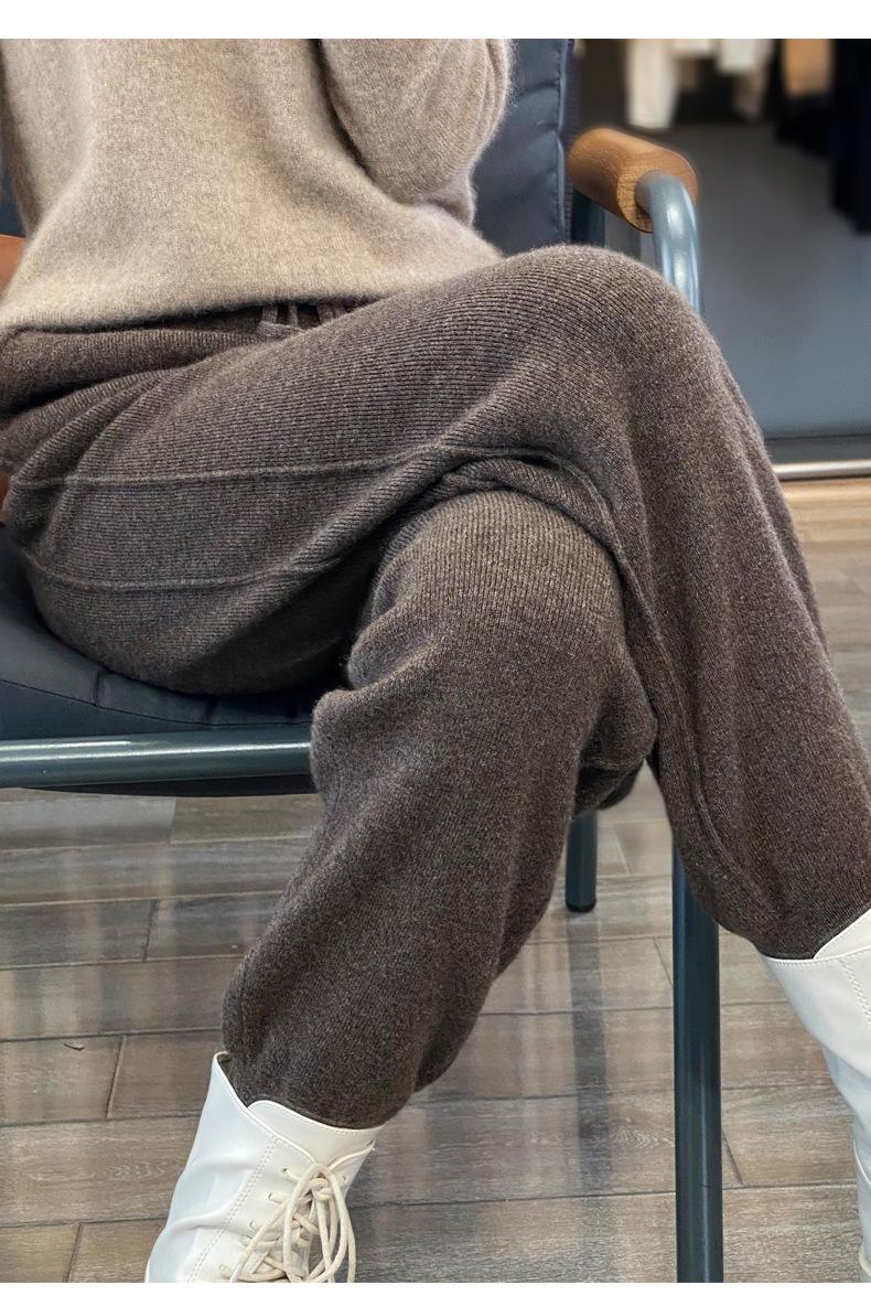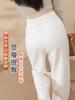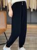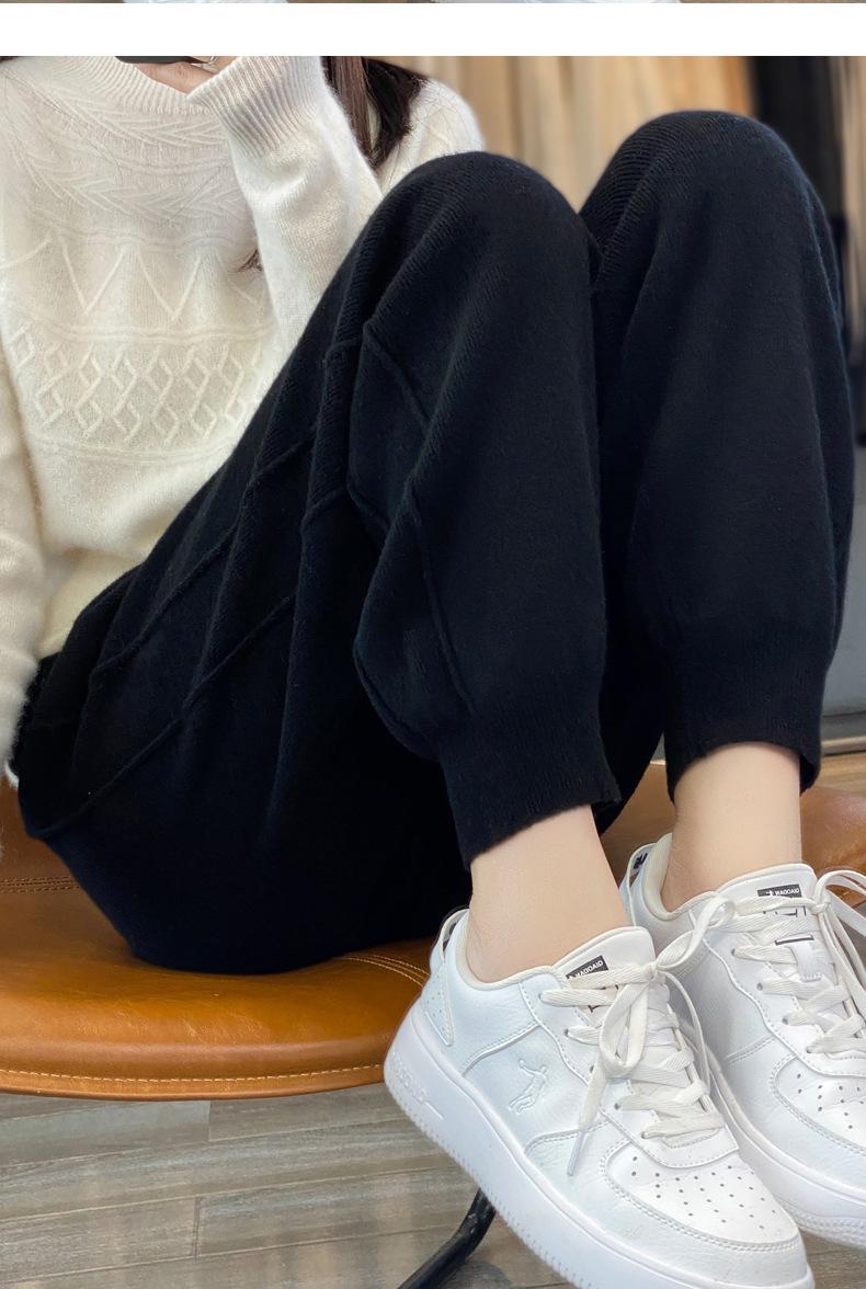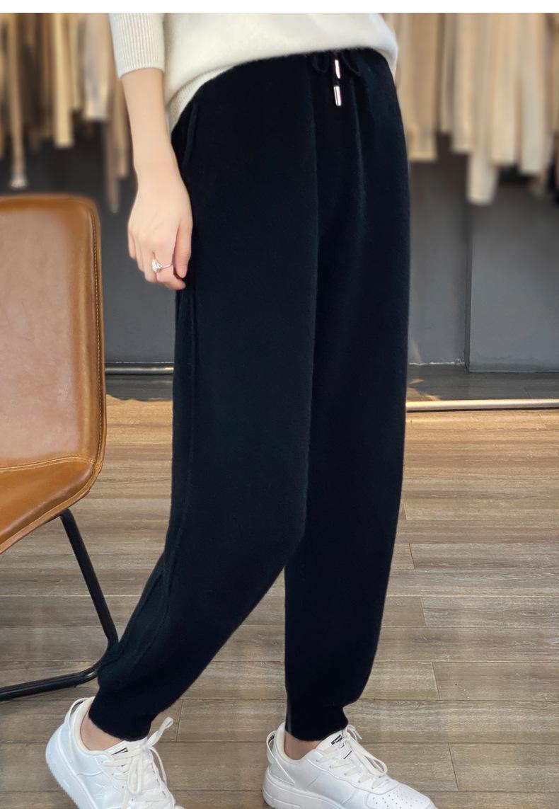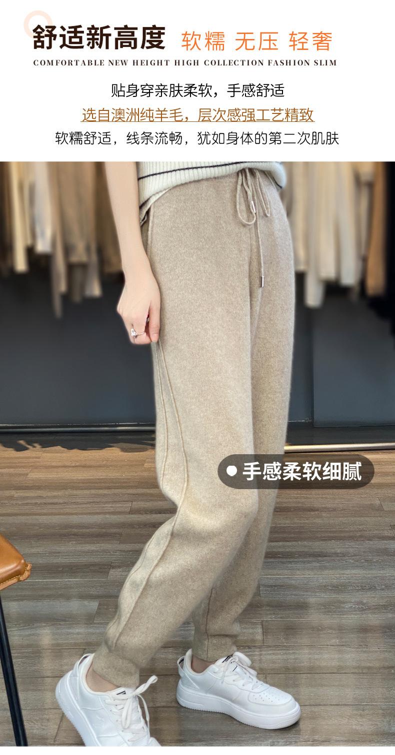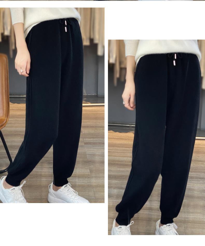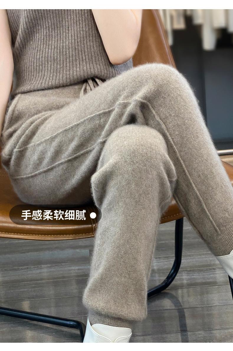 Pantalones ajustados de lana europeos y americanos para mujer, otoño e invierno 2023, nuevos pantalones de cachemira con cintura elástica y cordón de cintura alta en stock, engrosados