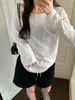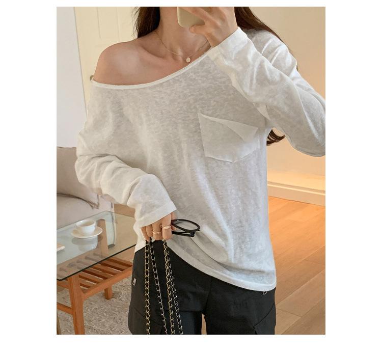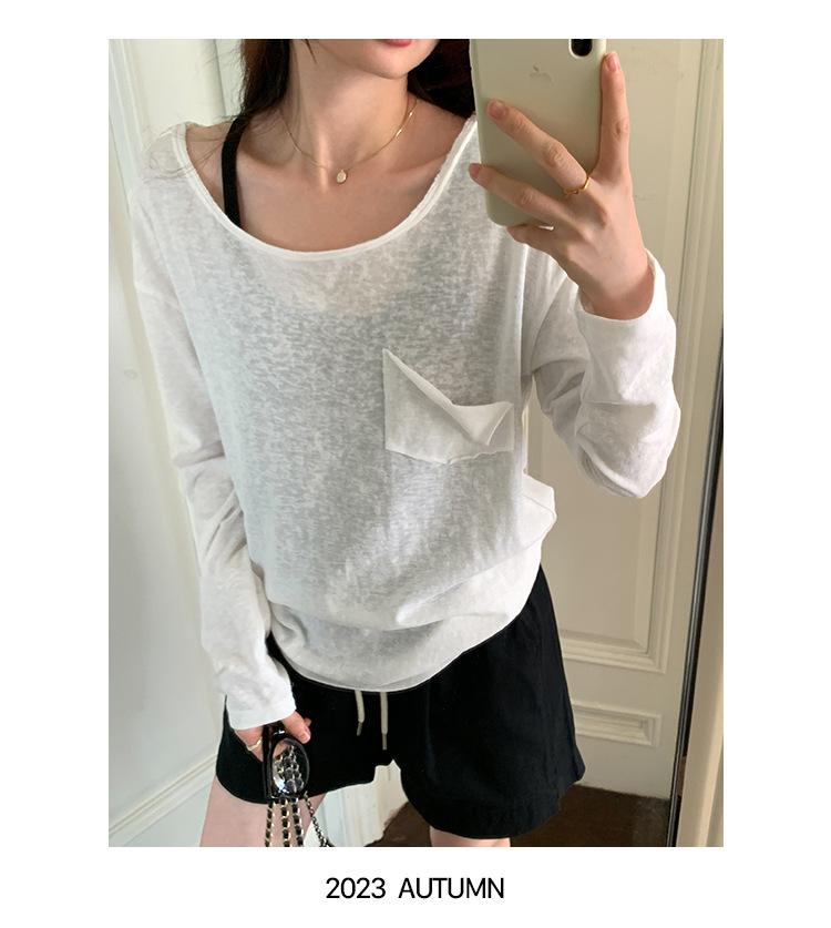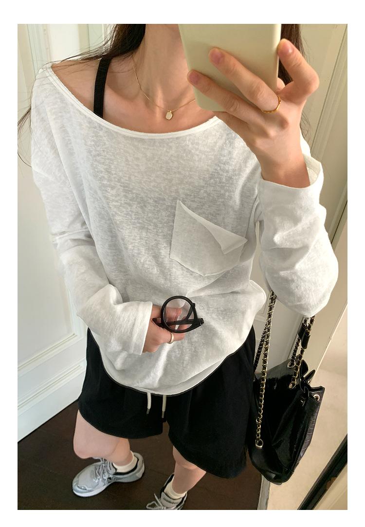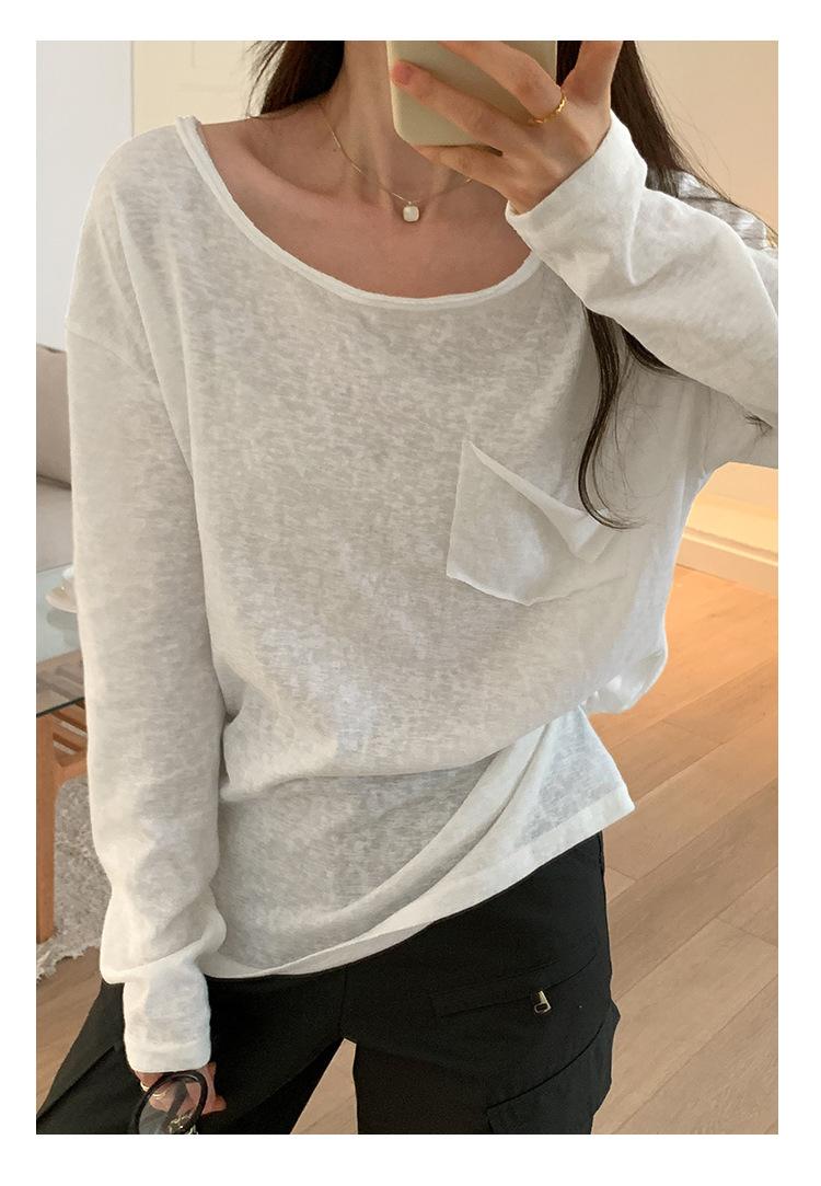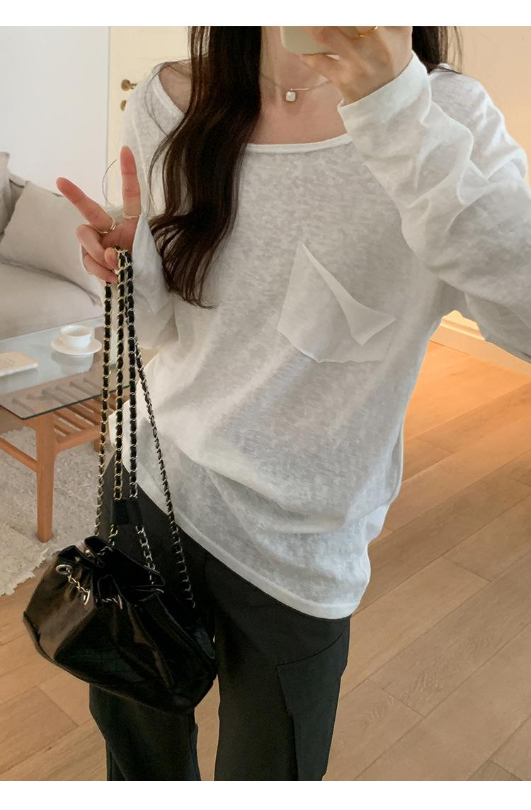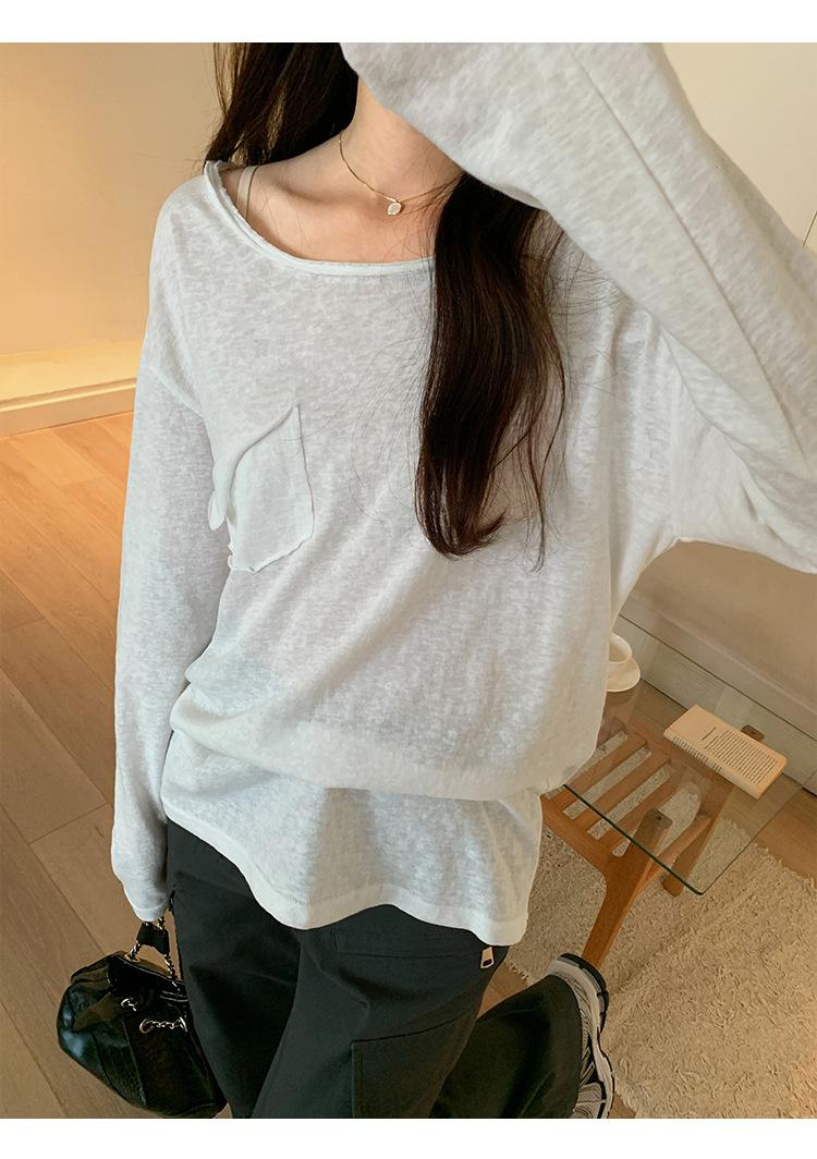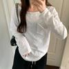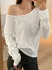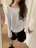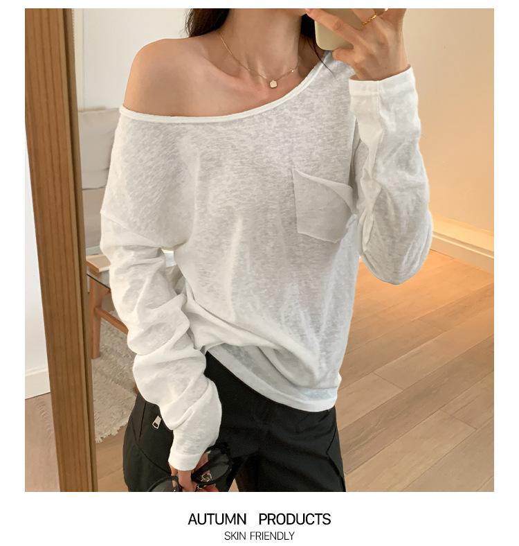 Playera Blanca Holgada de Manga Larga con Cuello Redondo Grande para Mujer Otoño 2025 Nuevo Chic Ins Look Adelgazante Blusa Top Ligeramente Transparente