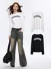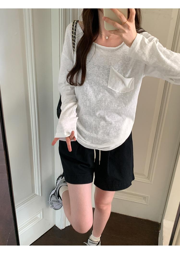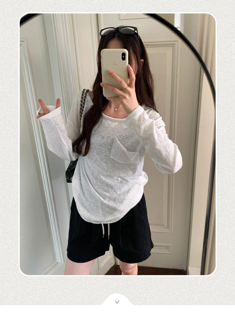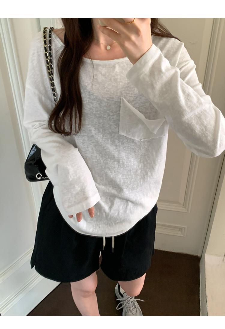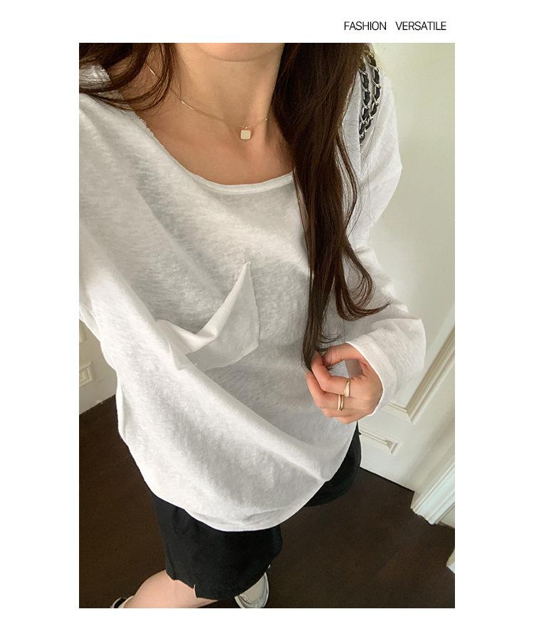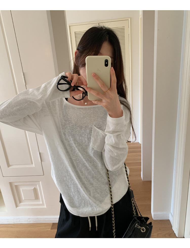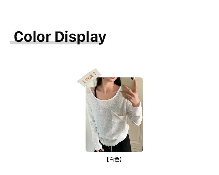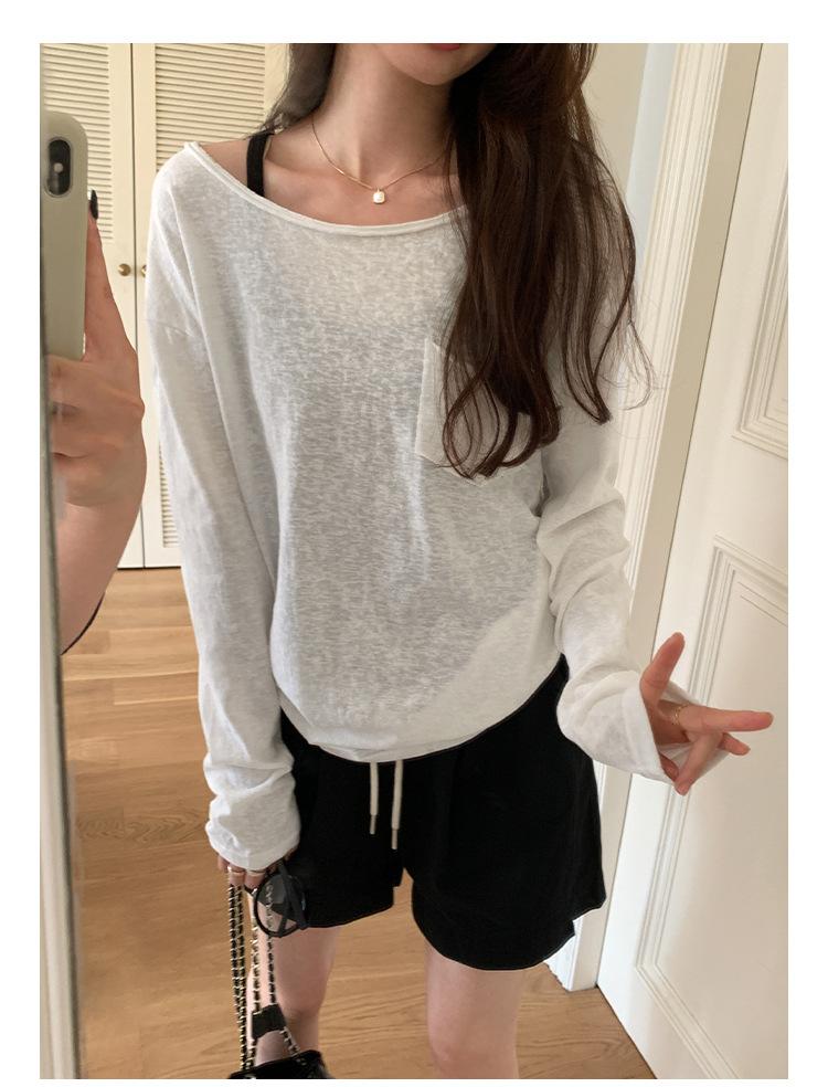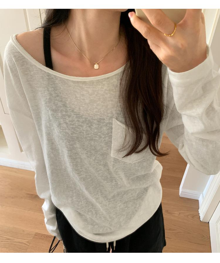 Playera Blanca Holgada de Manga Larga con Cuello Redondo Grande para Mujer Otoño 2025 Nuevo Chic Ins Look Adelgazante Blusa Top Ligeramente Transparente