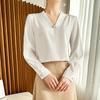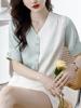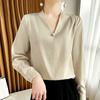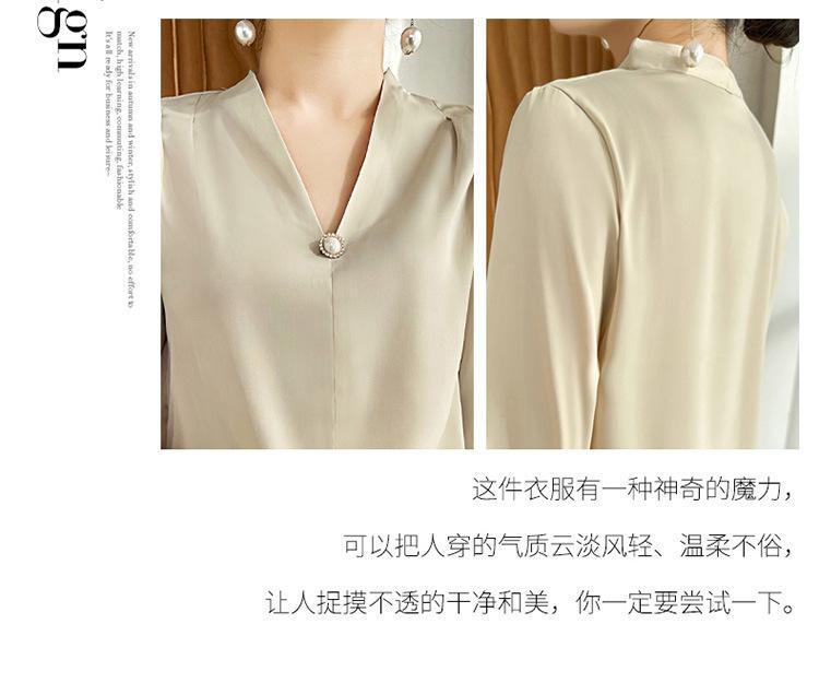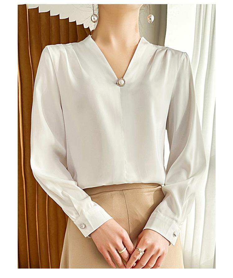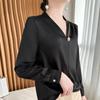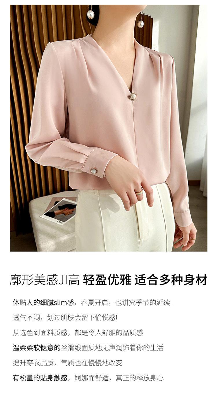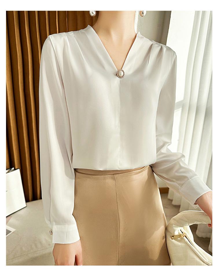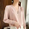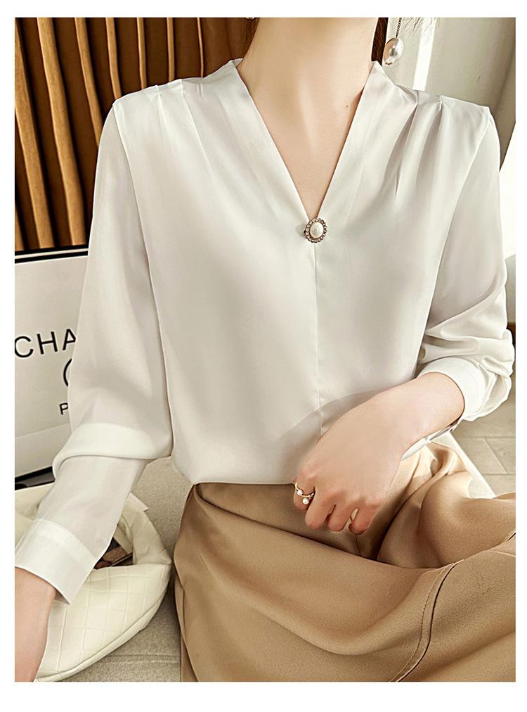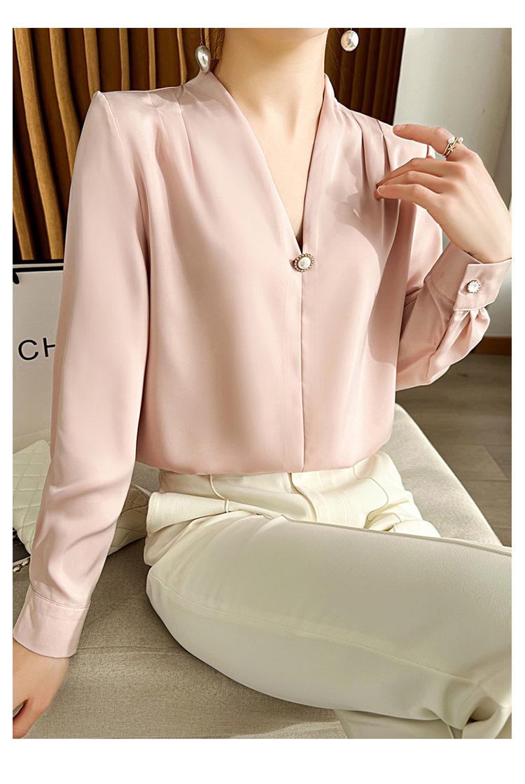 Camisa colgante de satén nueva de primavera y otoño 2023 para mujer, sencilla, delgada, cuello en V, un solo botón, camisa de moda por lote