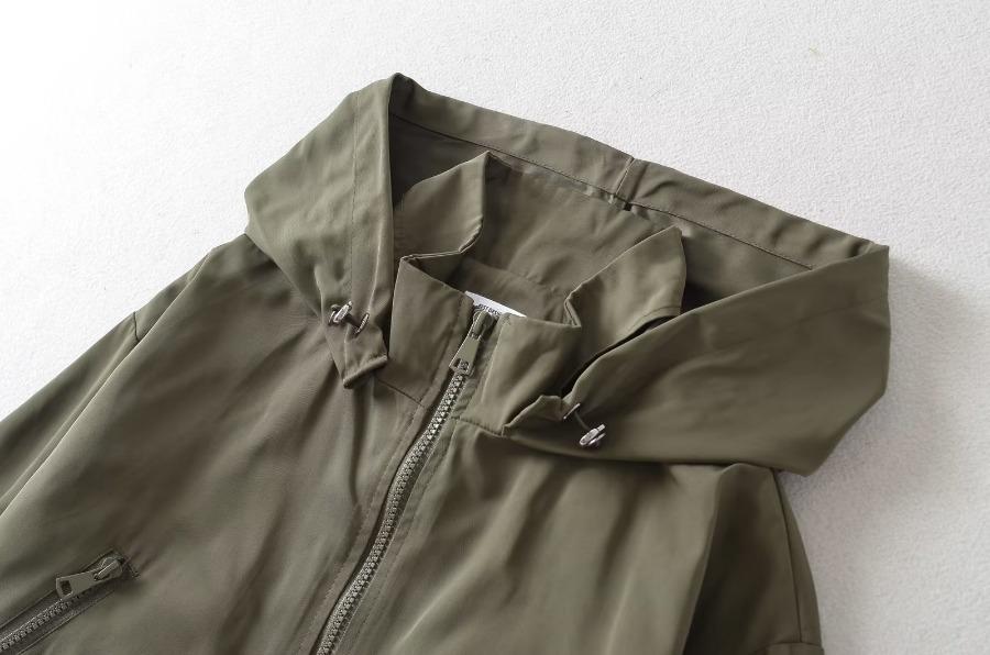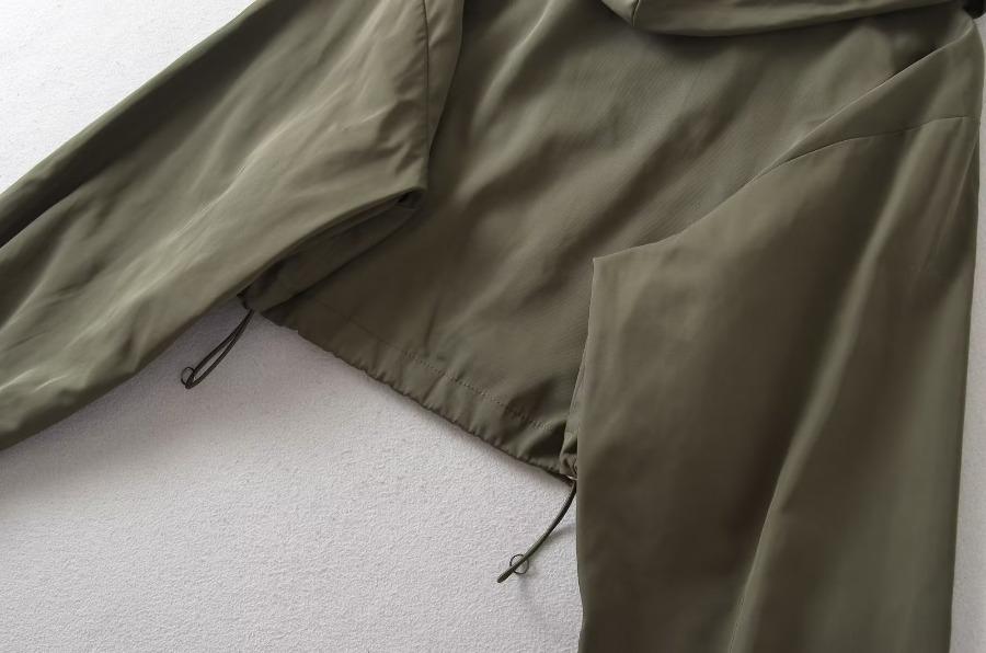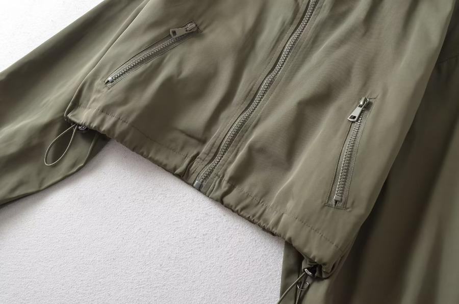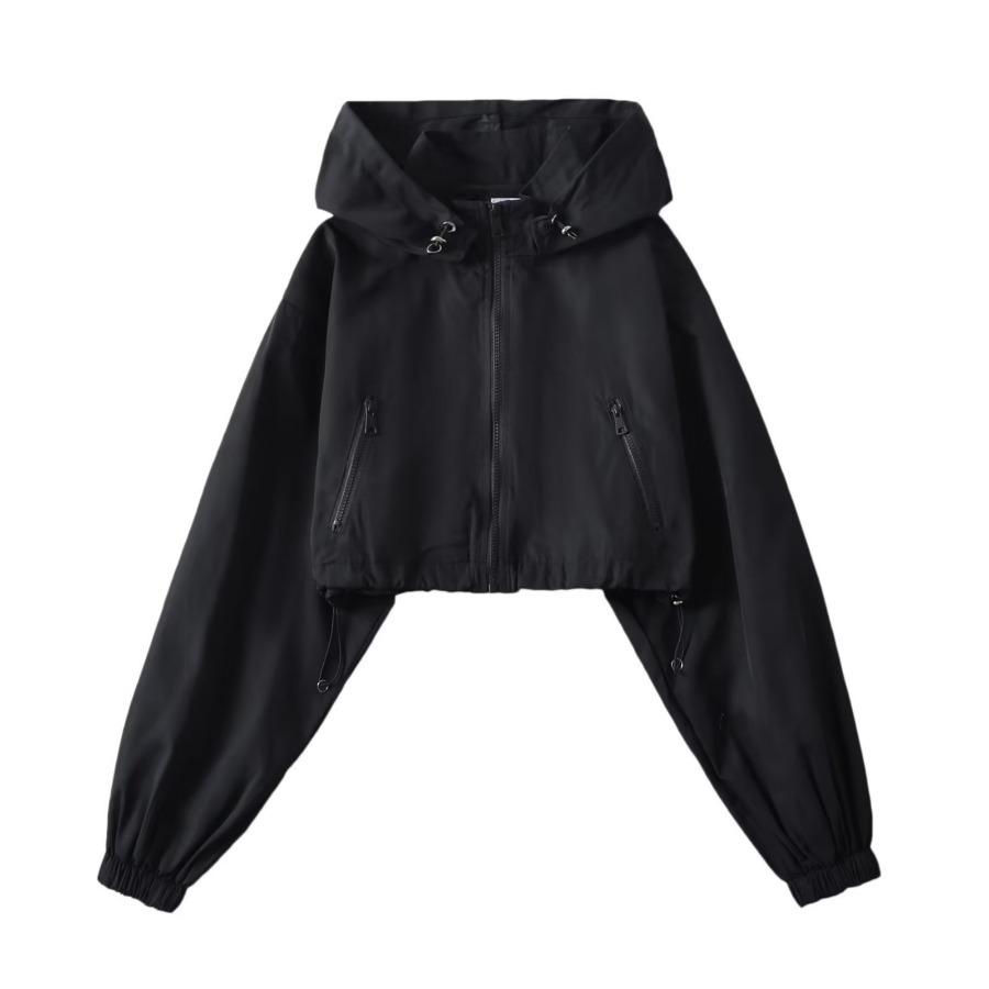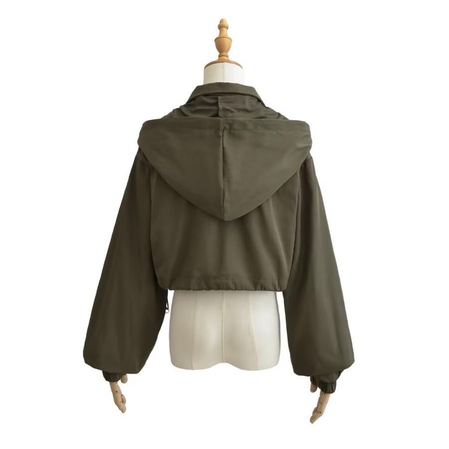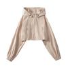 Chaqueta informal estilo americano dulce y fresco para mujer, con capucha, cremallera, holgada, de manga corta y larga