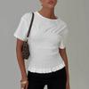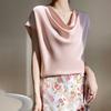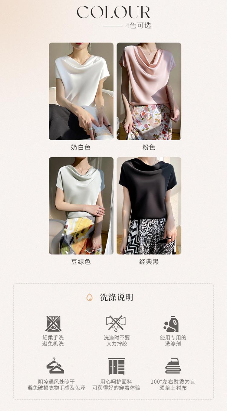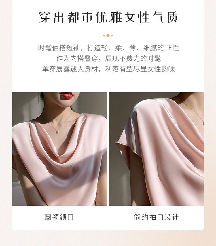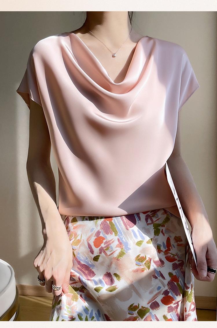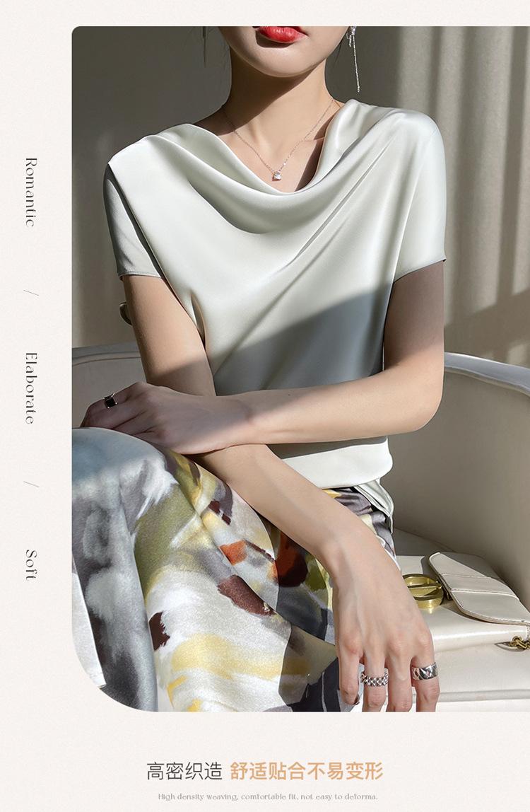 2025 Primavera y Verano Nueva Moda Camiseta de Manga Corta con Cuello Alto para Mujer, Moderna, de Satén, Ajustada, Elegante, Versátil