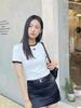 Marca de moda francesa diseño clásico de borde en contraste camiseta algodón delicado bordado clásico logotipo tridimensional