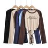 TB JL Nueva Camisa de Mujer con Ombligo, Manga Larga, Cintura Alta, Camisa para Niña, Marca de Moda, Top Juvenil