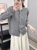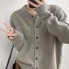 Suéter Cárdigan para Mujer Estilo Coreano Otoño e Invierno Nuevo Simple Manga Larga Holgado Cuello Redondo de Punto Color Sólido Chaqueta de un Solo Botón