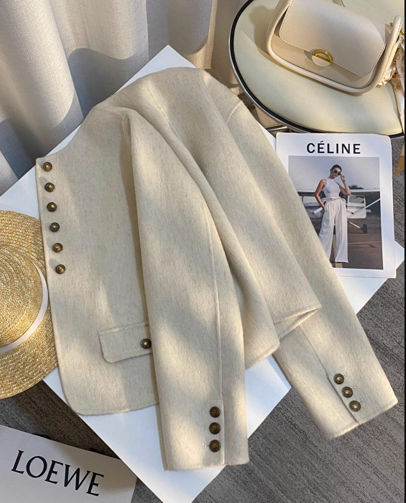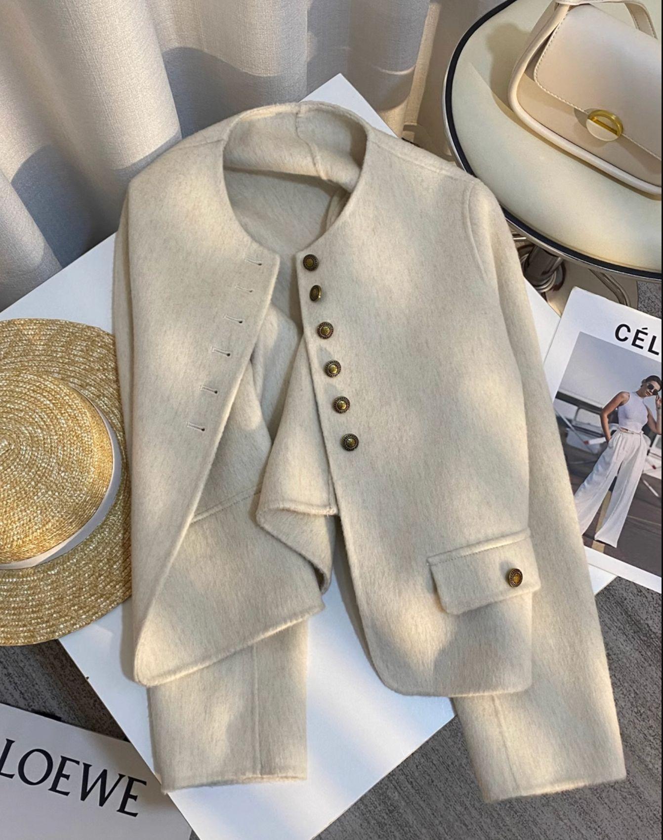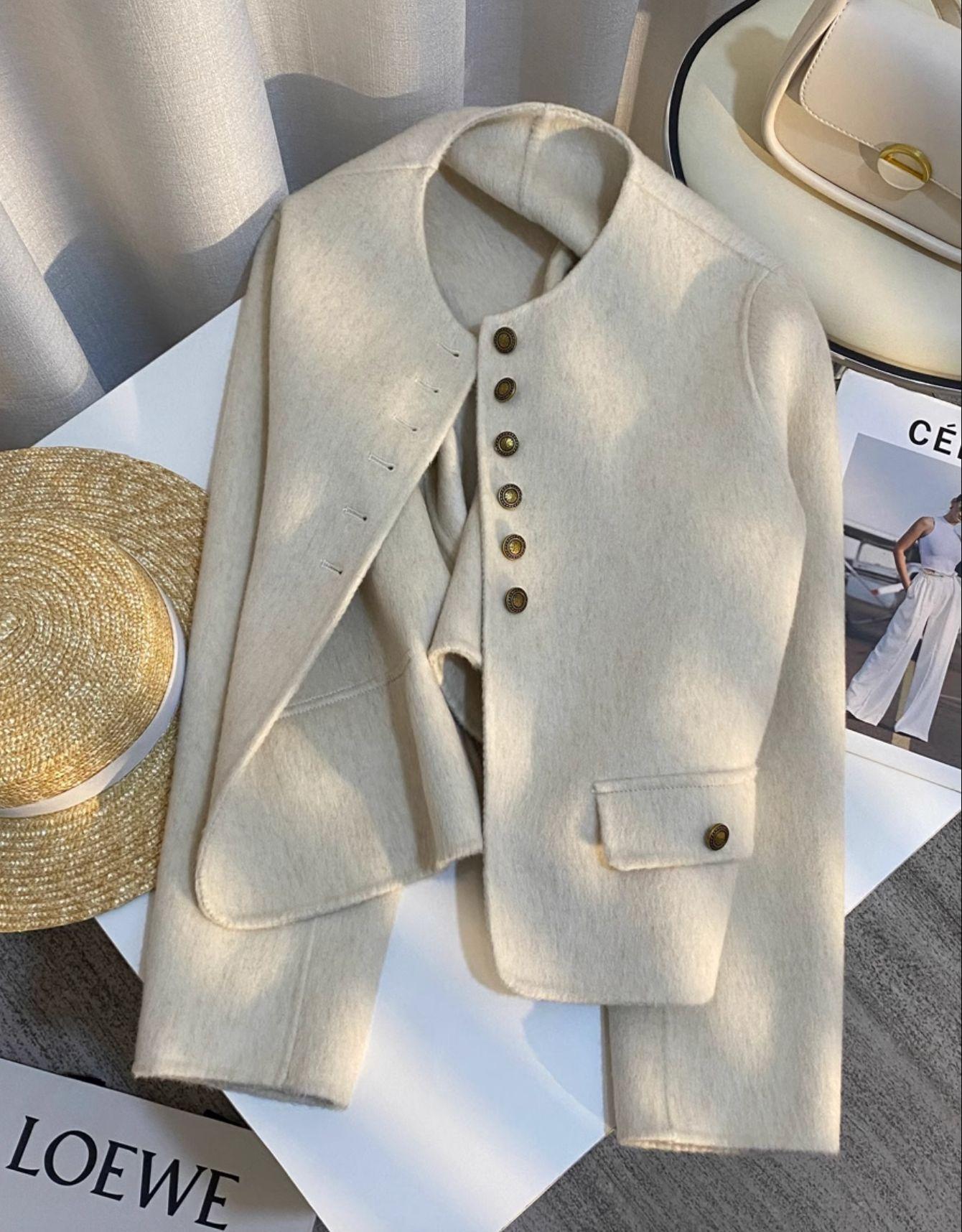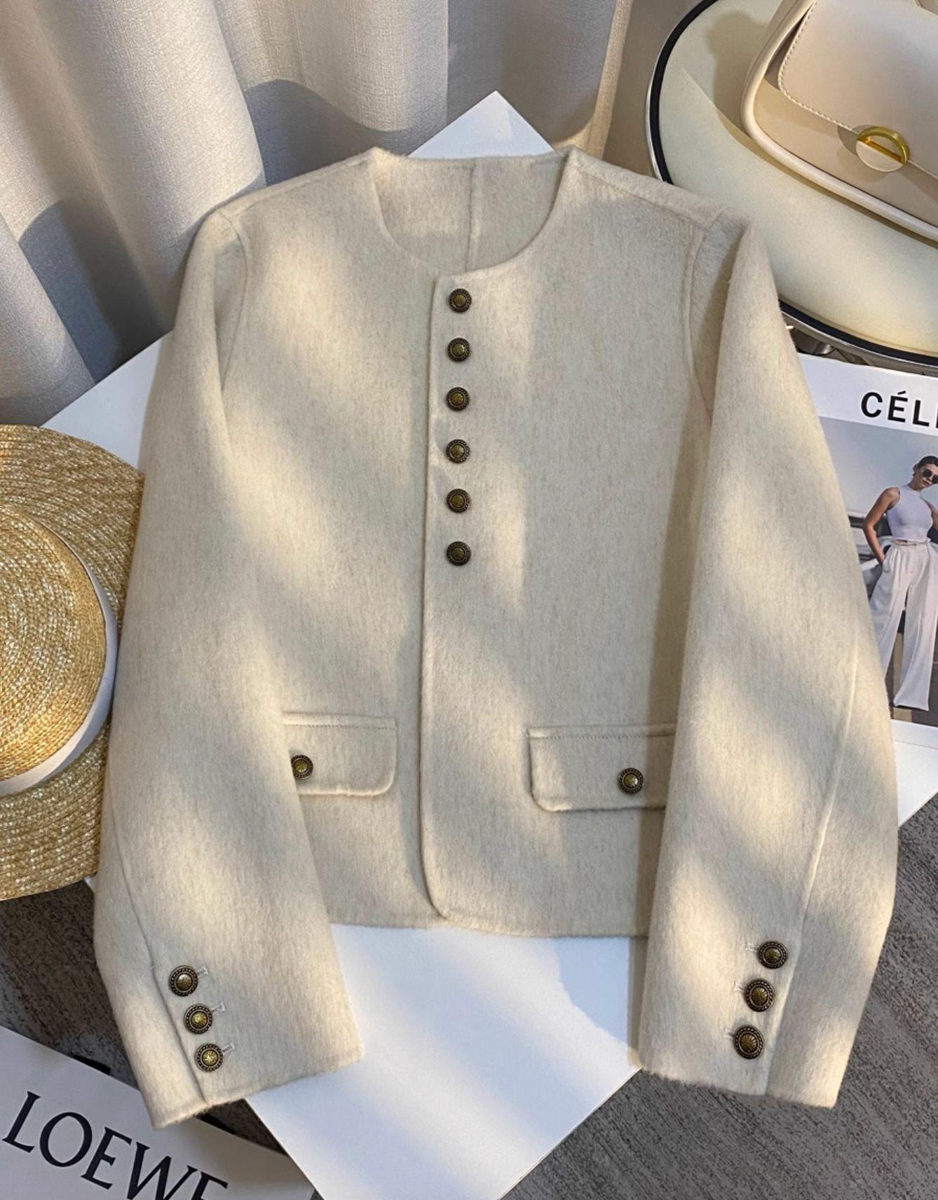 Abrigo de Cachemira de Alta Gama de Primavera y Otoño para Mujer 2025 Chaqueta Corta de Lana Estilo Chanel para Petite