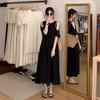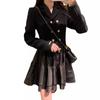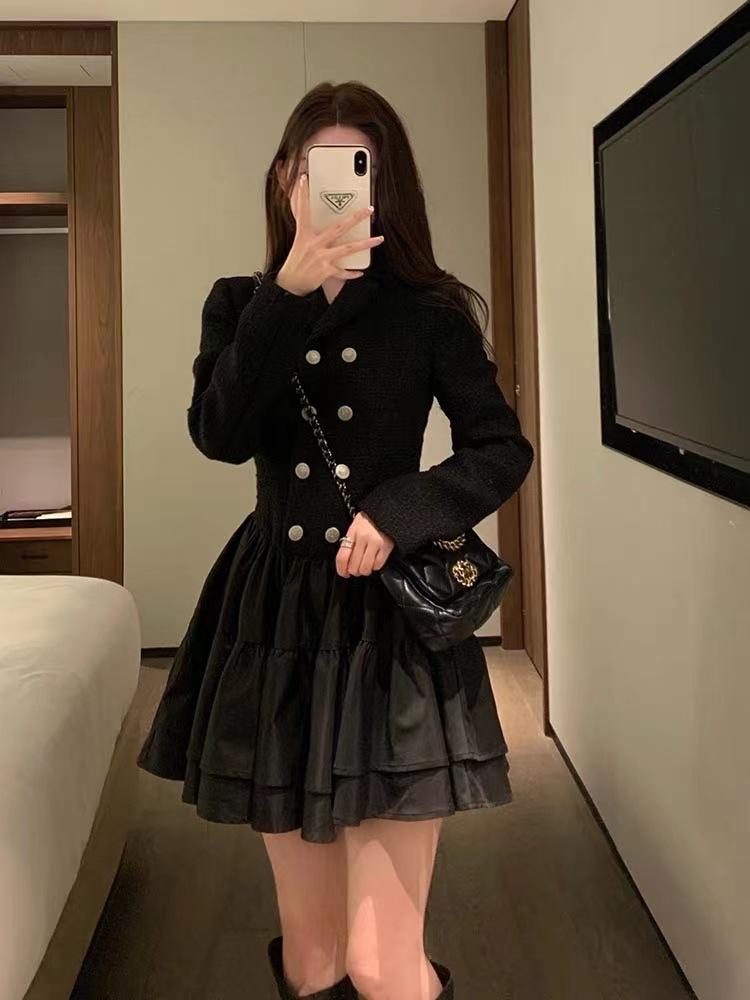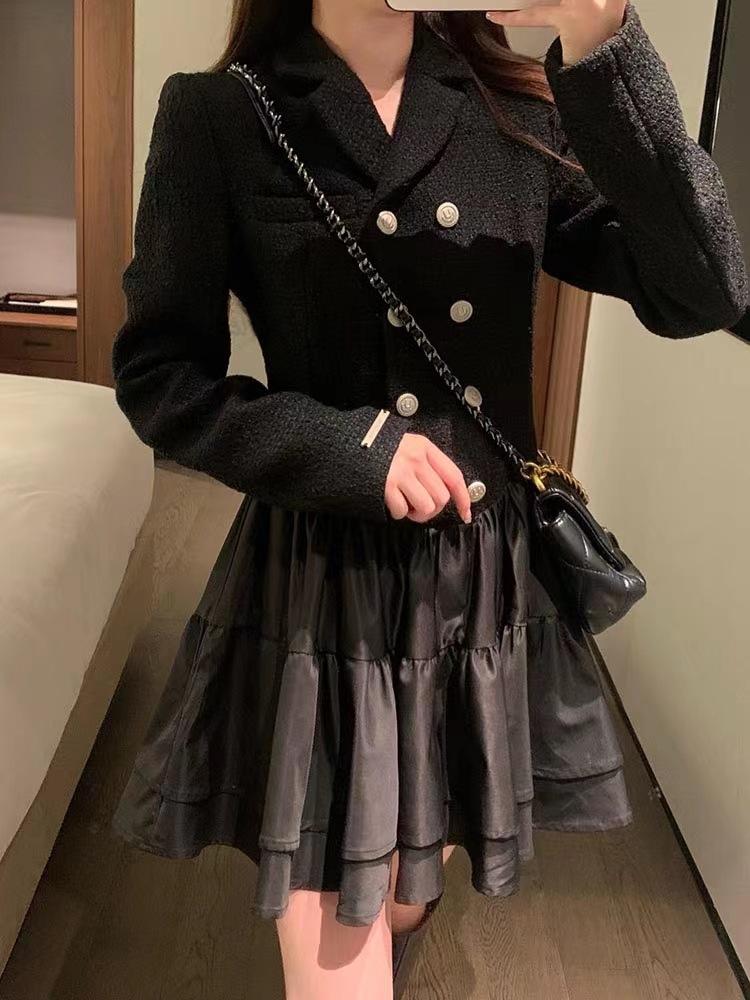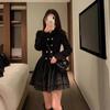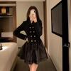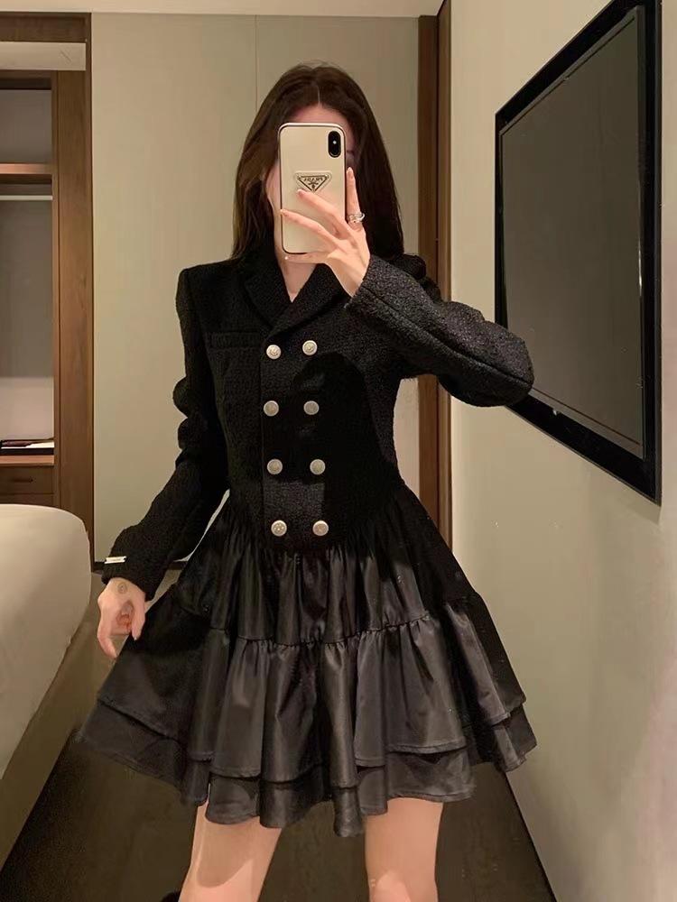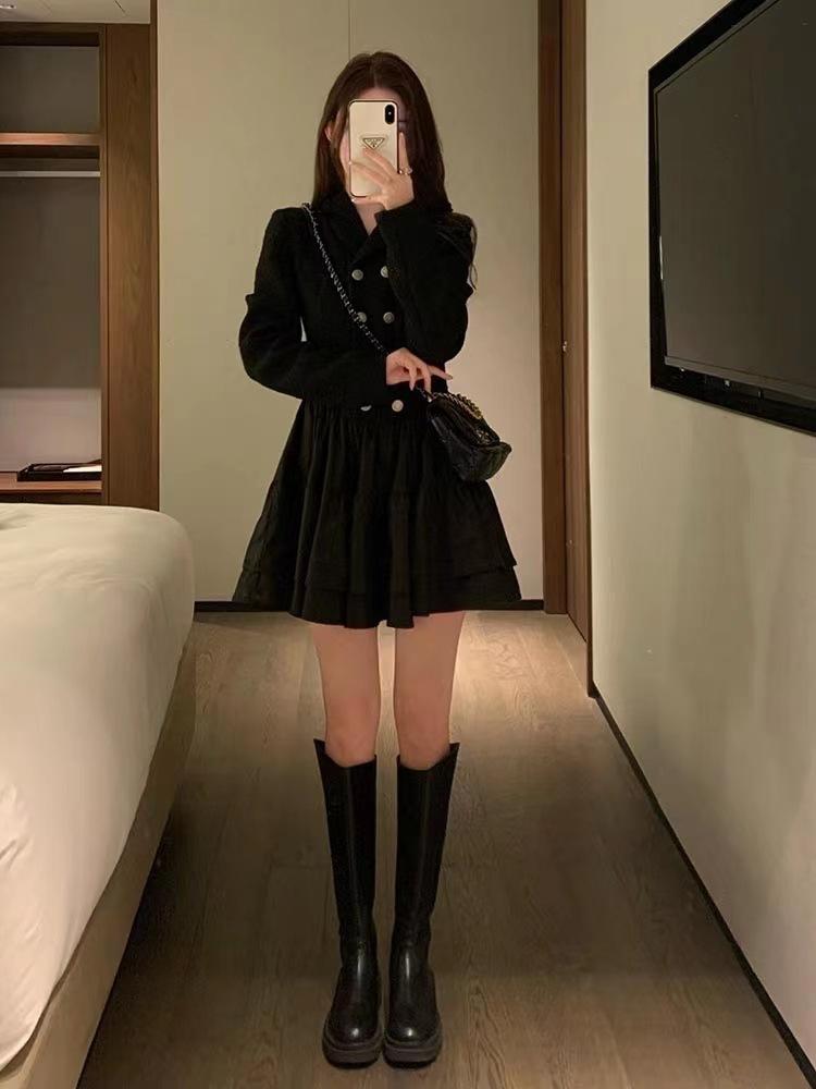 Vestido Estilo Dama Francesa, Vestido de Invierno Petite, Vestido de Princesa, Elegante y Vestido Negro Corto Empalmado para Niña Rica, a la Moda