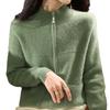 Cárdigan de punto con cuello alto de estilo coreano para mujer, abrigo informal holgado de manga larga con cremallera, moda para otoño e invierno