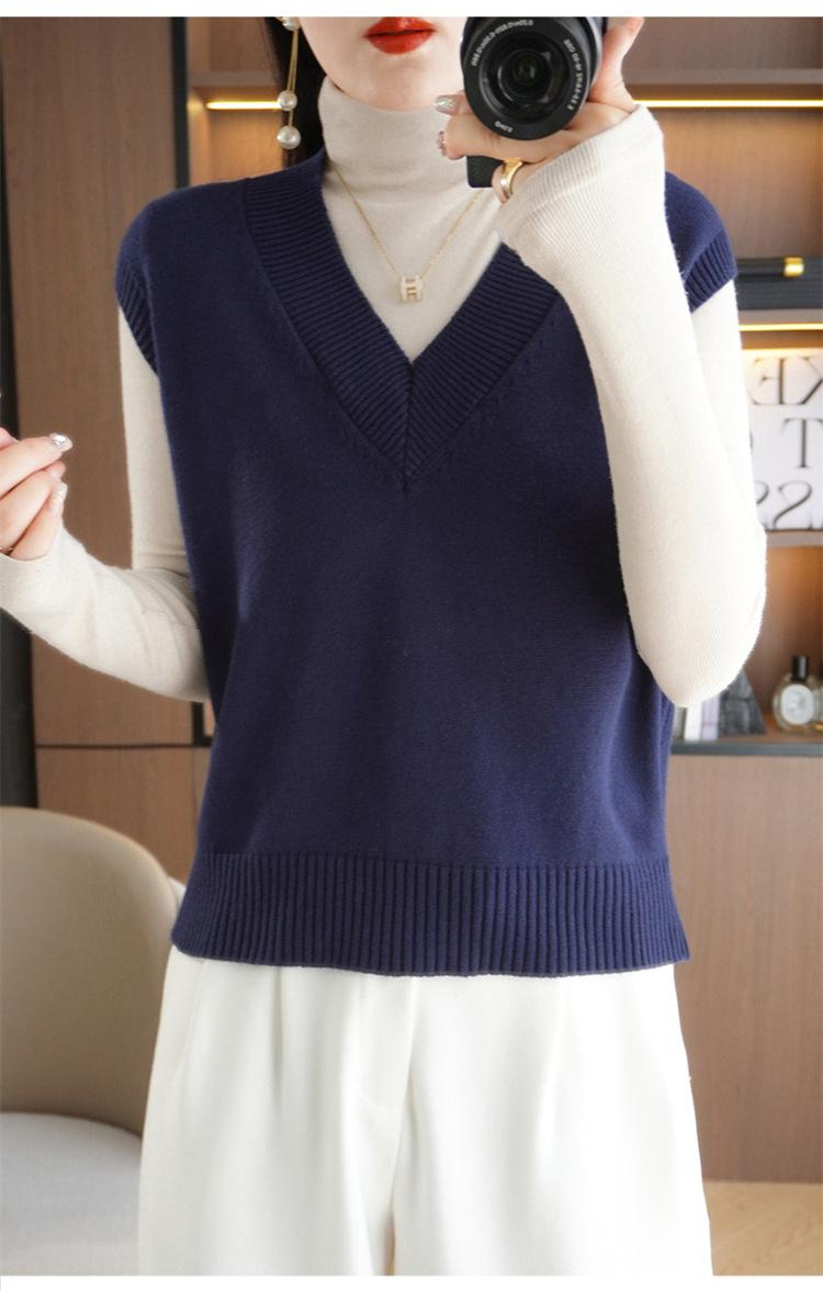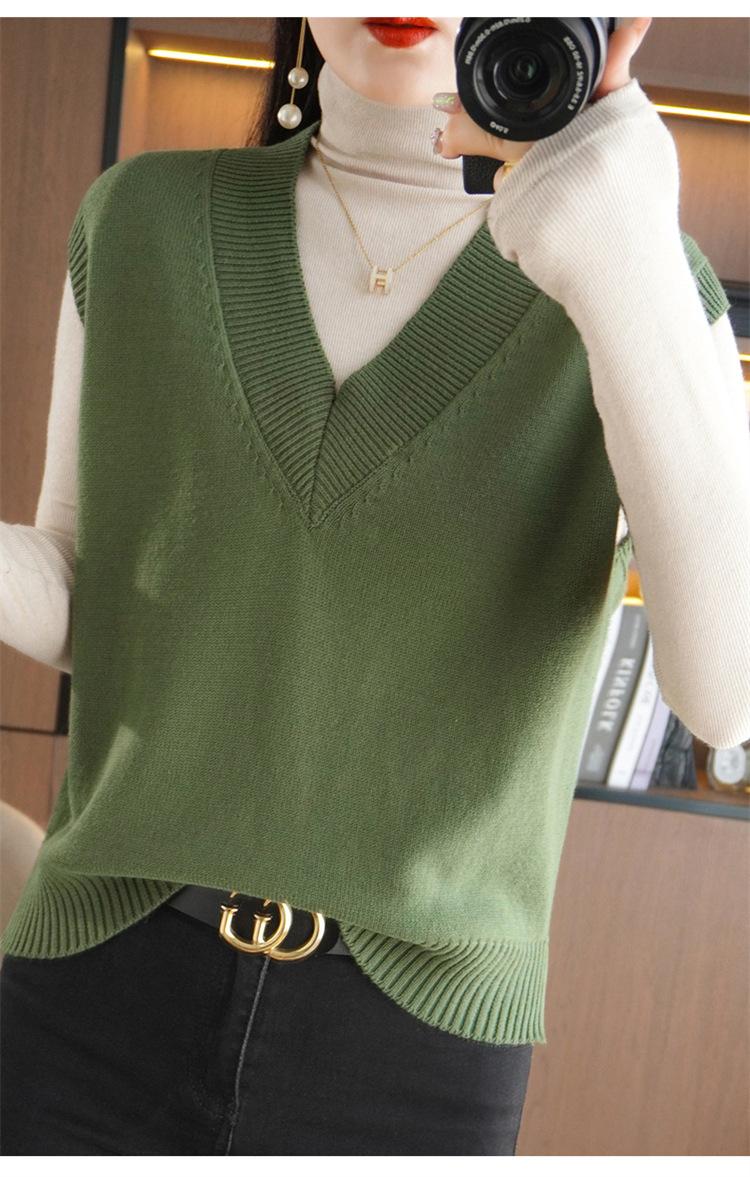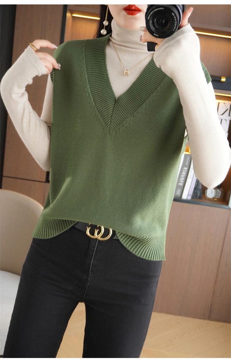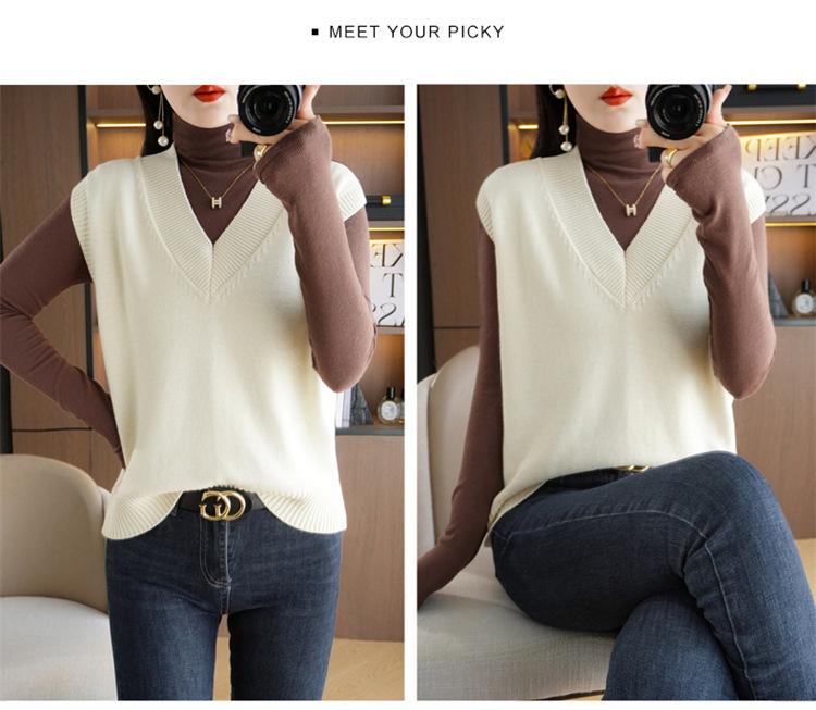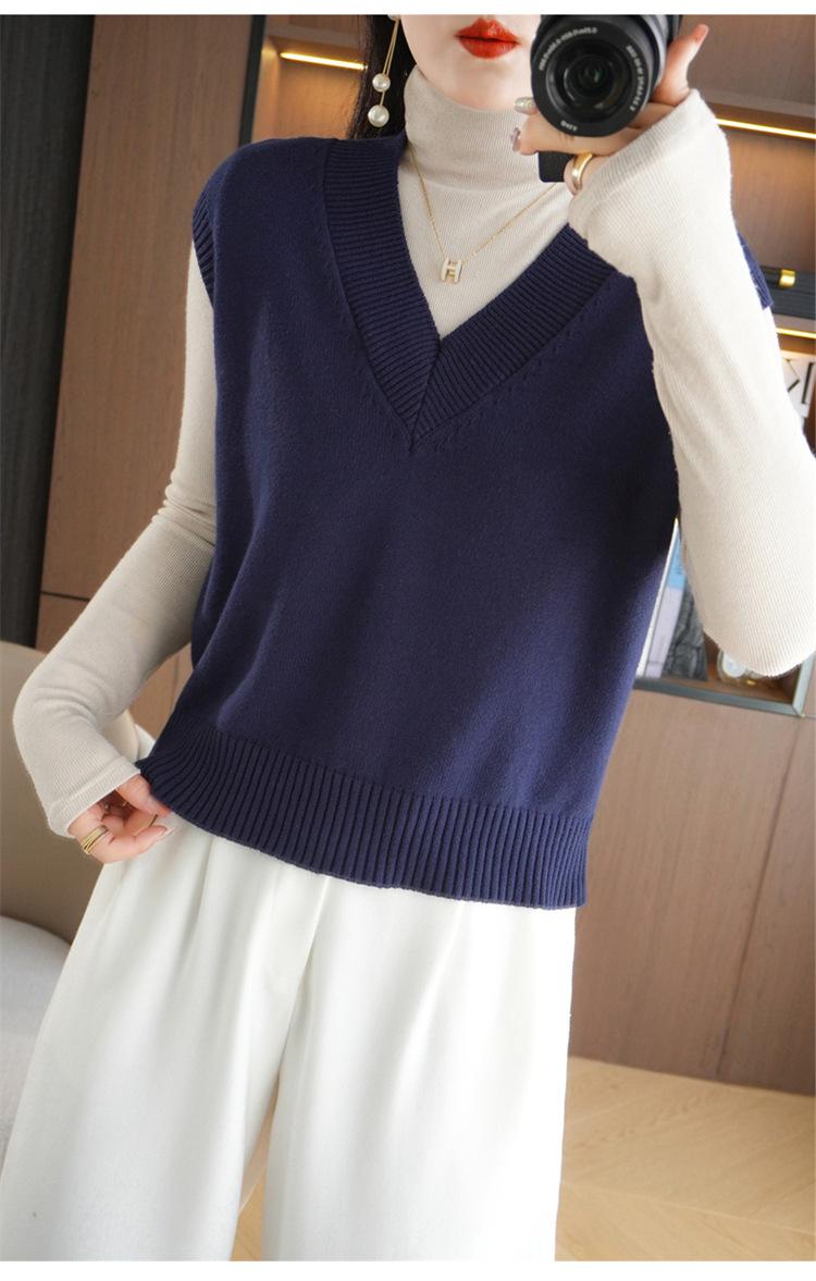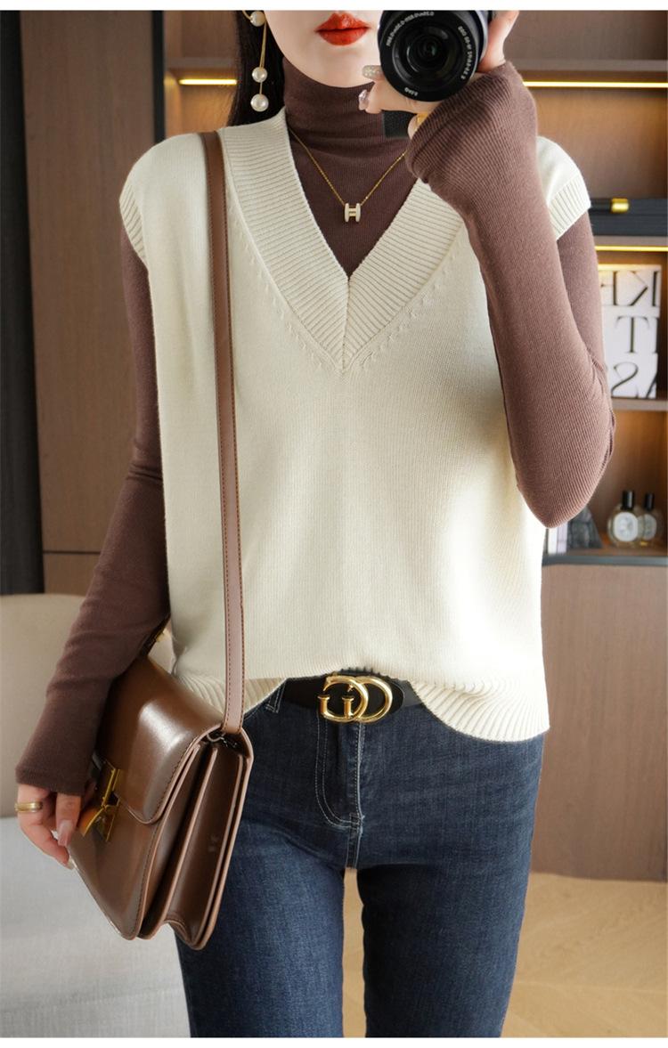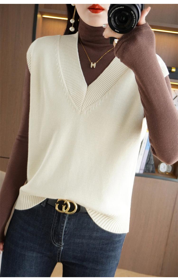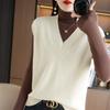 Suéter de punto sin mangas con cuello en V, holgado, combinable con todo, primavera y otoño de 2023 para mujer