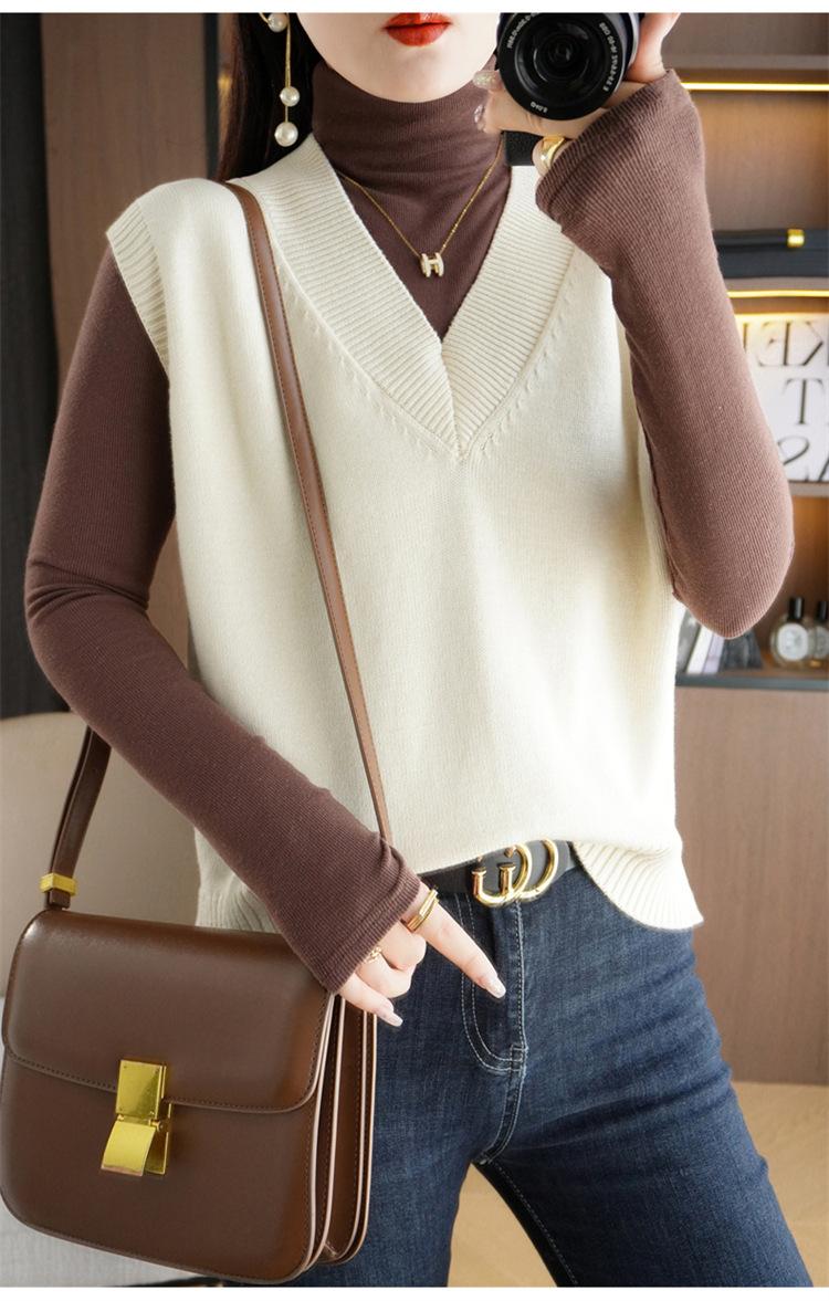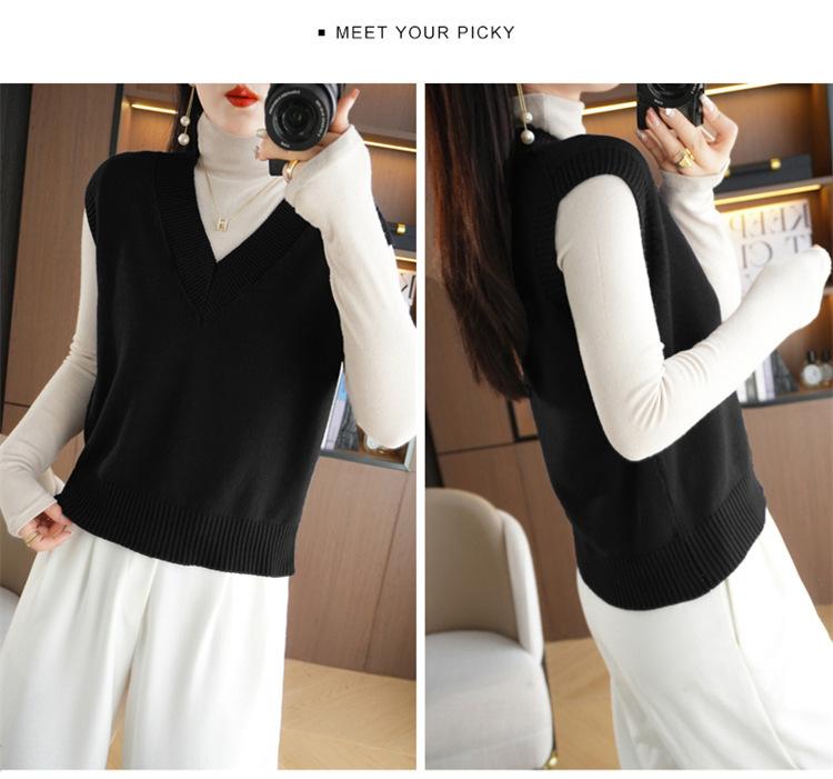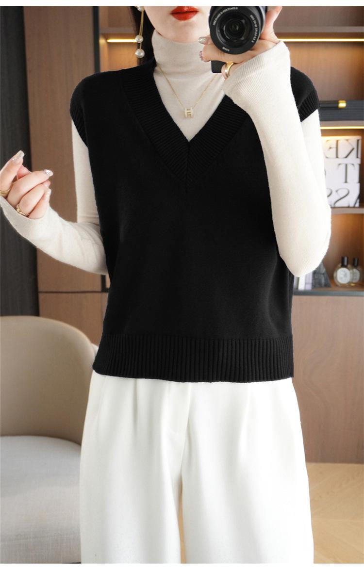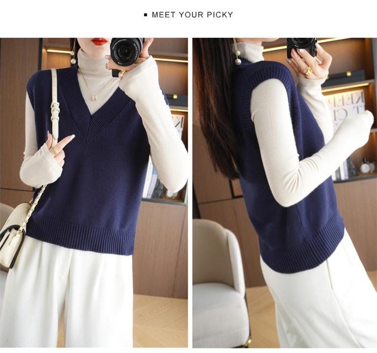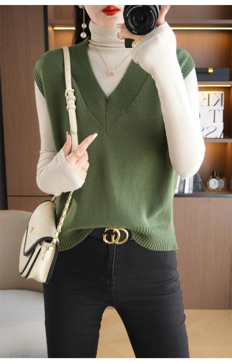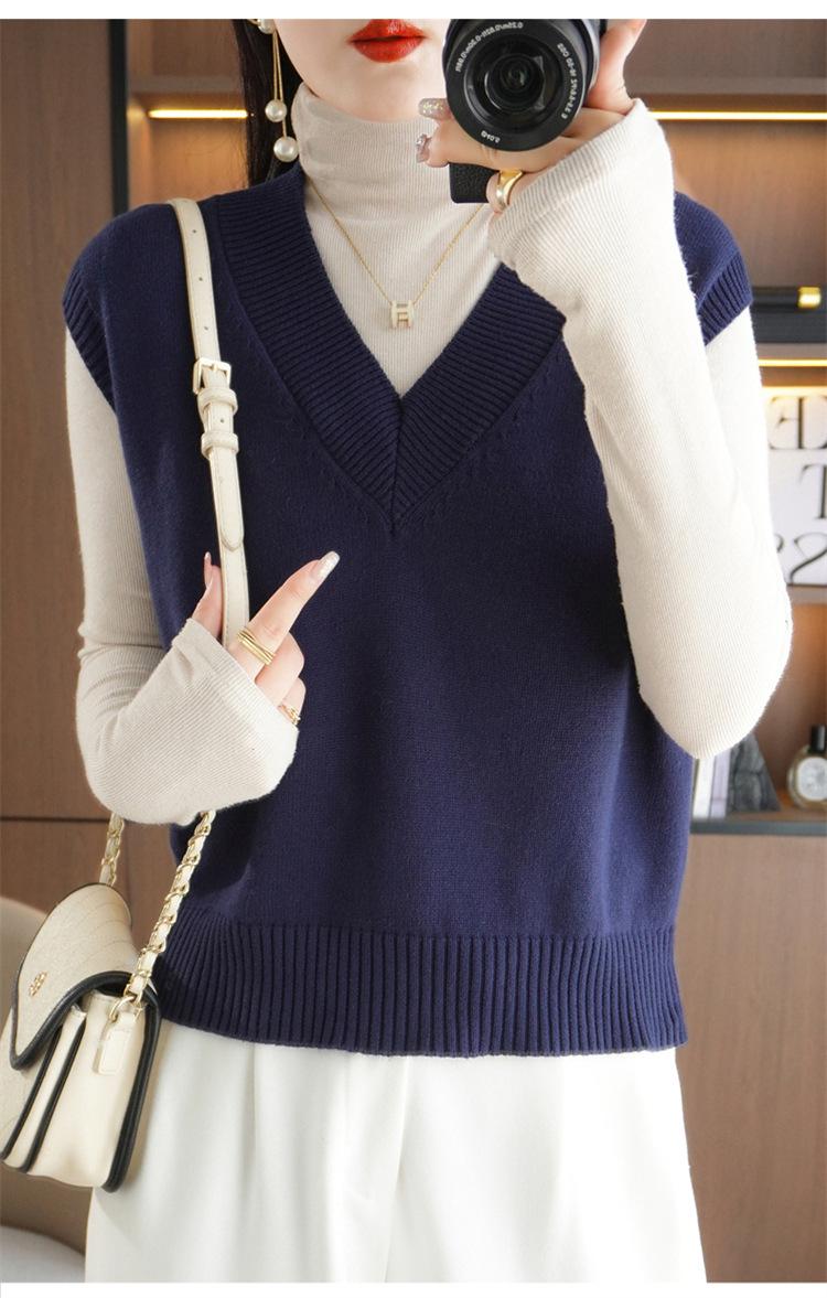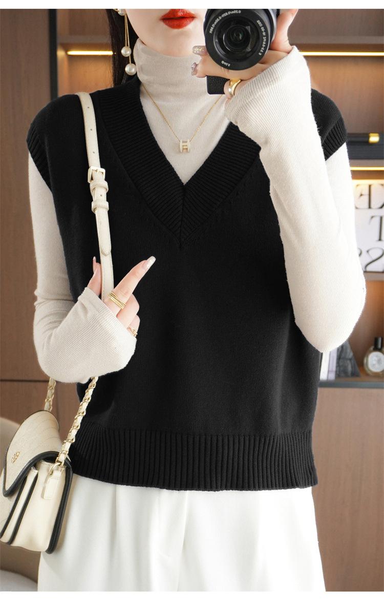 Suéter de punto sin mangas con cuello en V, holgado, combinable con todo, primavera y otoño de 2023 para mujer