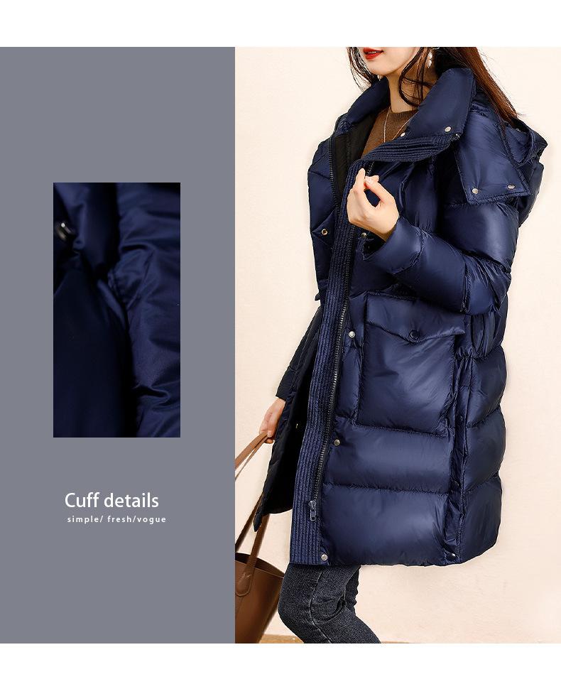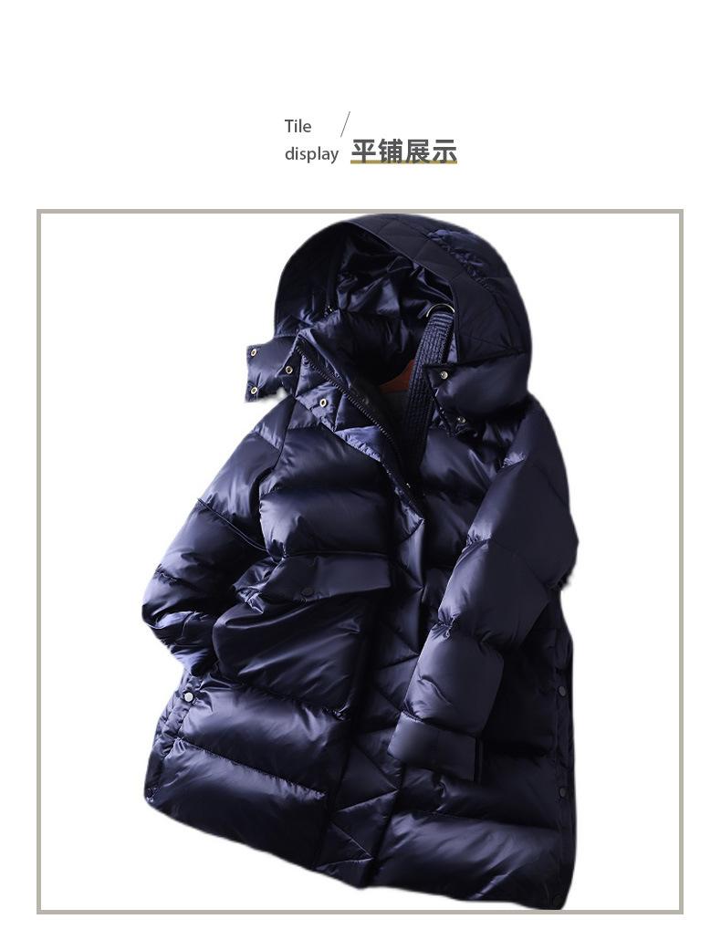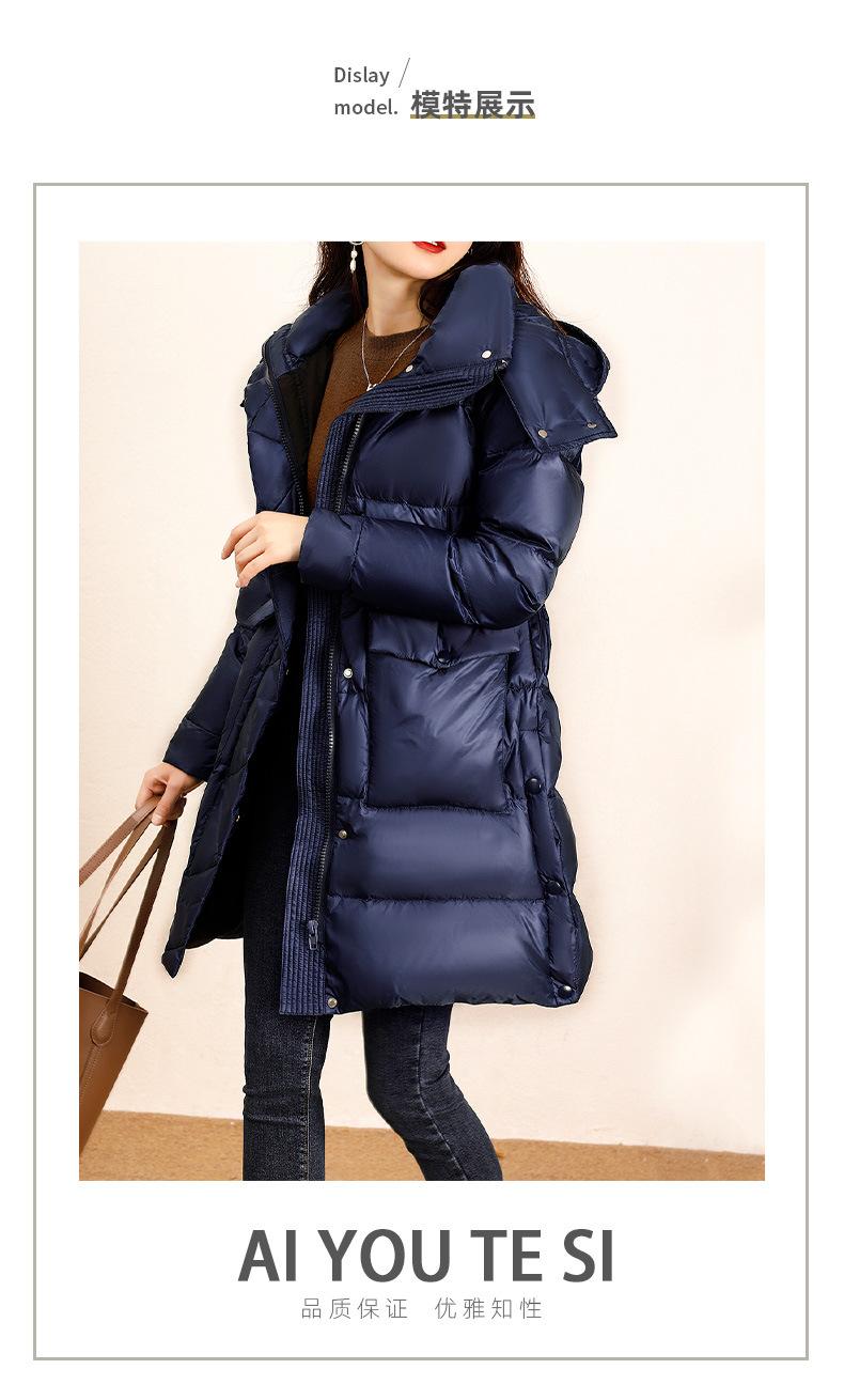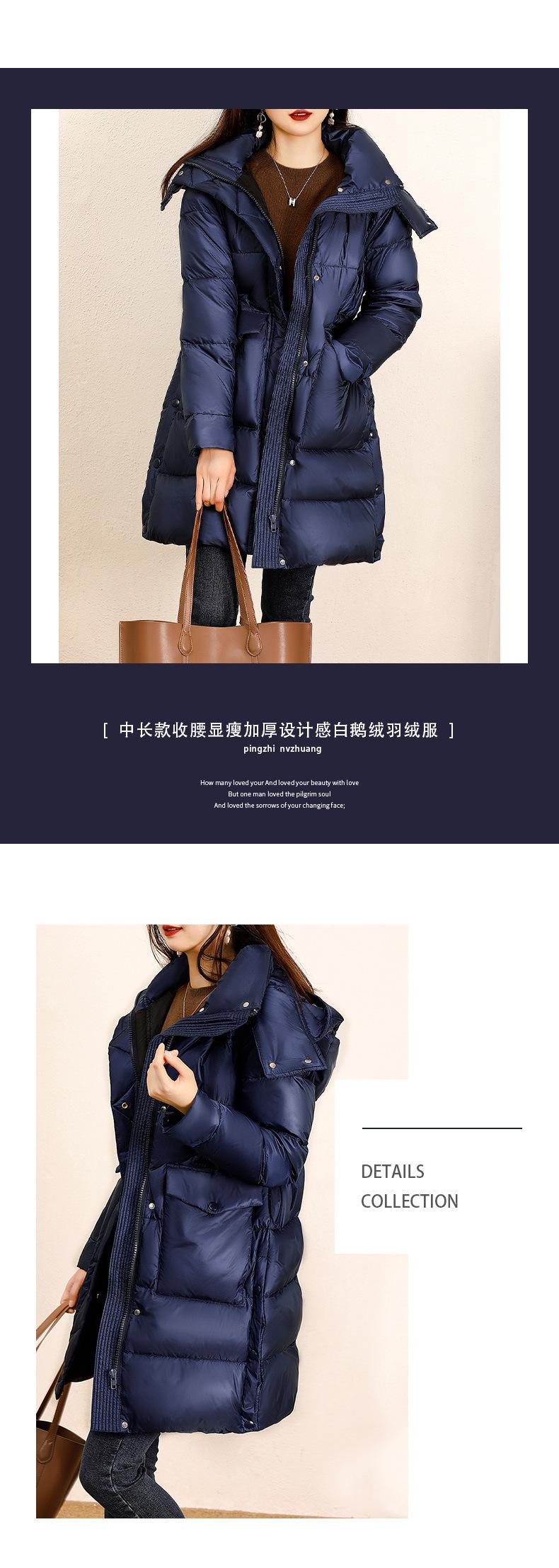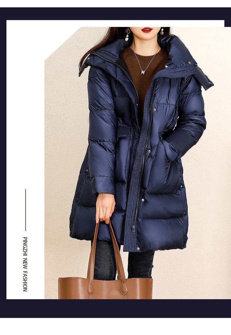 Chaqueta de plumón de ganso blanco 95, chaqueta de plumón de ganso con capucha de alta gama, abrigo de pan de invierno de longitud media para mujer de Pinghu
