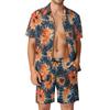 Camisa de manga corta para hombre, traje de playa con estampado digital 3D en contraste naranja y azul, para Europa y Estados Unidos, verano 2024