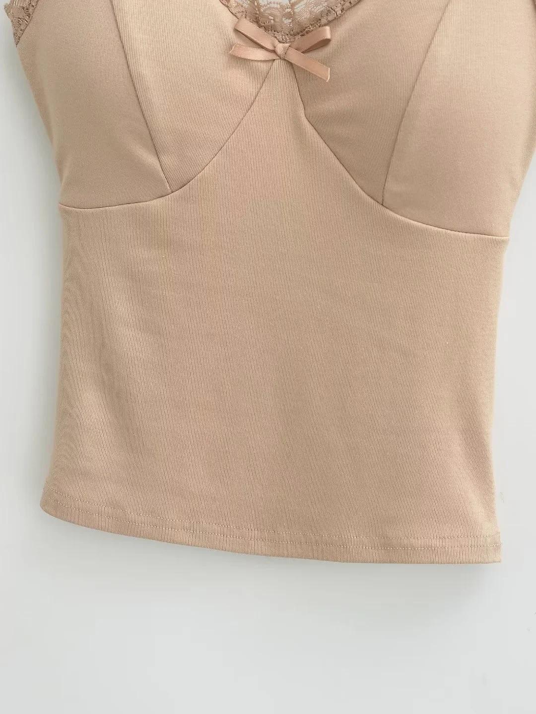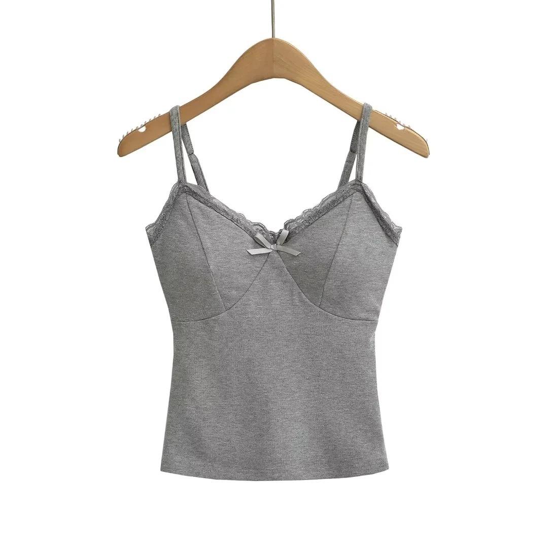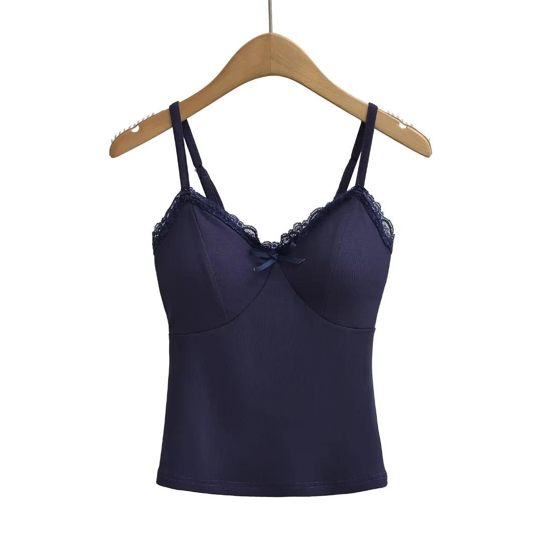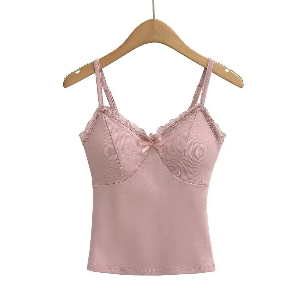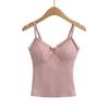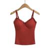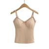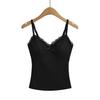 Camisola corta ajustada de color sólido nueva primavera y verano 2024 con escote en V profundo y almohadilla en el pecho para chica sexy
