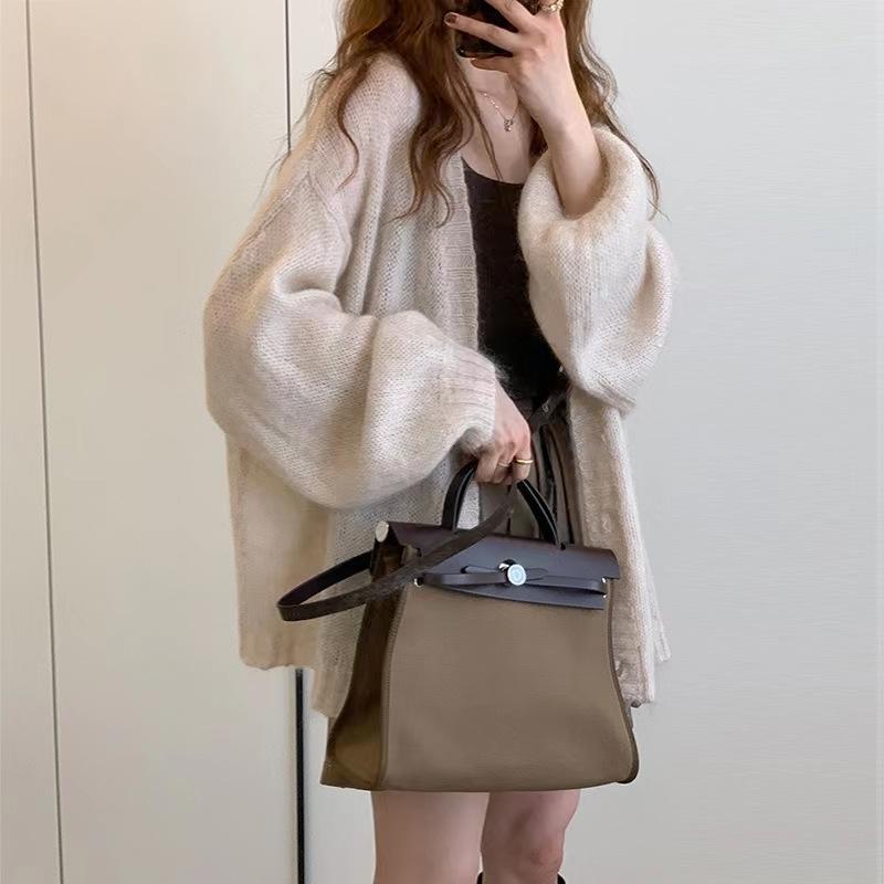 Cárdigan de Punto Mohair de Largo Medio con Manga Farol para Mujer, Verano, Holgado, Relajado, Delgado, Chal Exterior