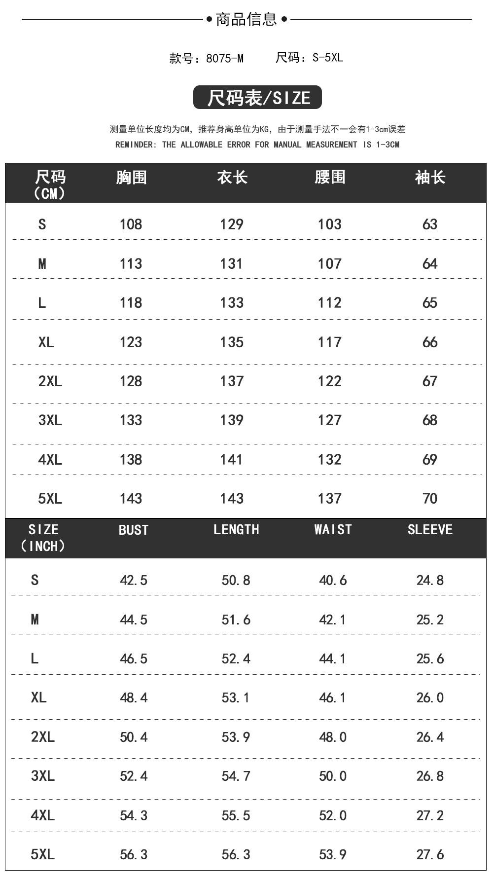 S, M, L, XL, 2XL, 3XL, 4XL, 5XL