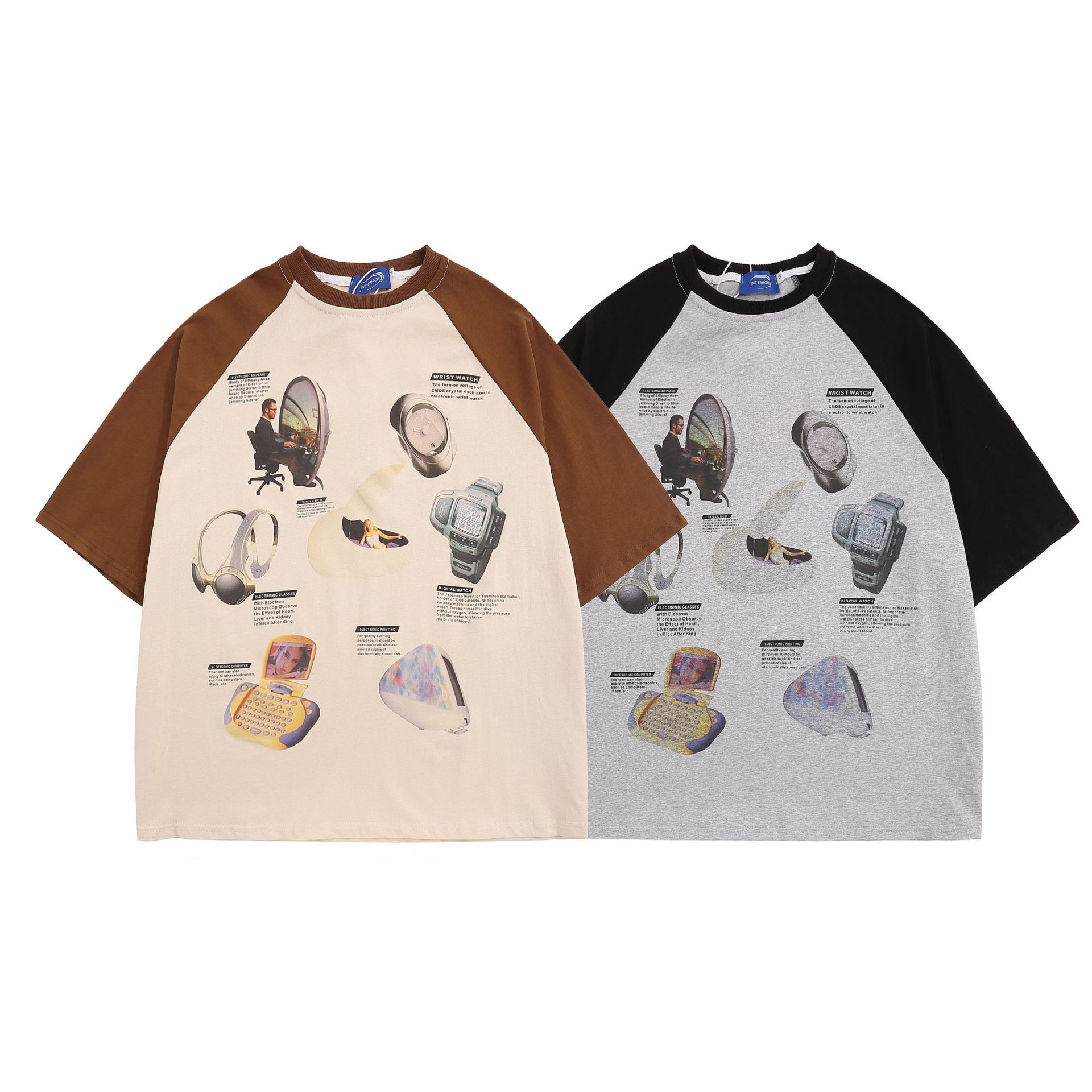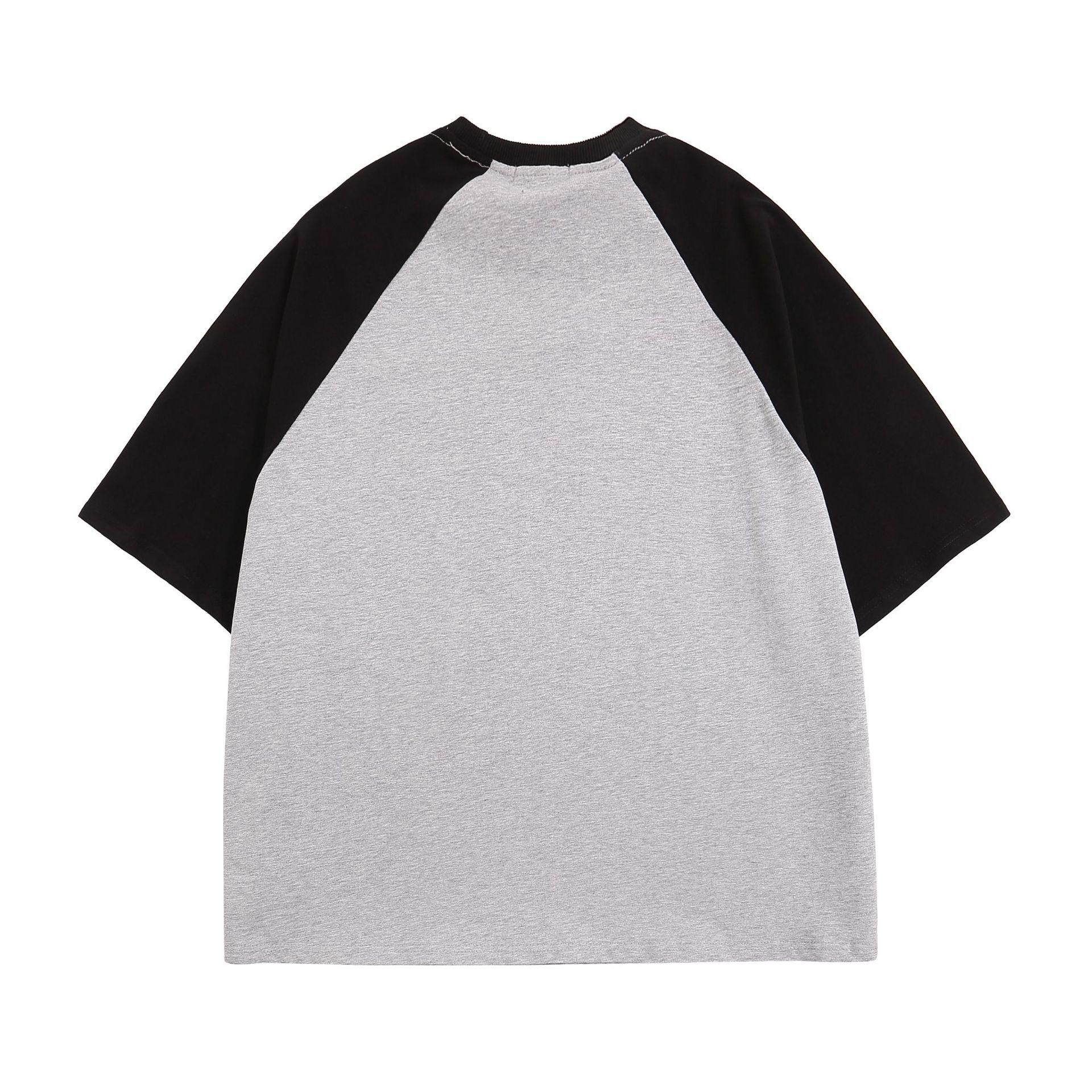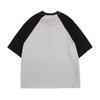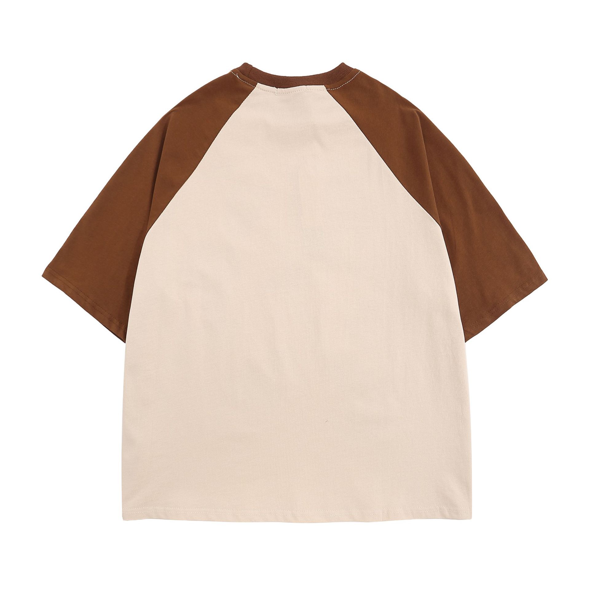 Camiseta de manga corta raglán con estampado de bloques de color retro estilo americano para hombre y mujer, top holgado de media manga de verano a la moda para parejas.