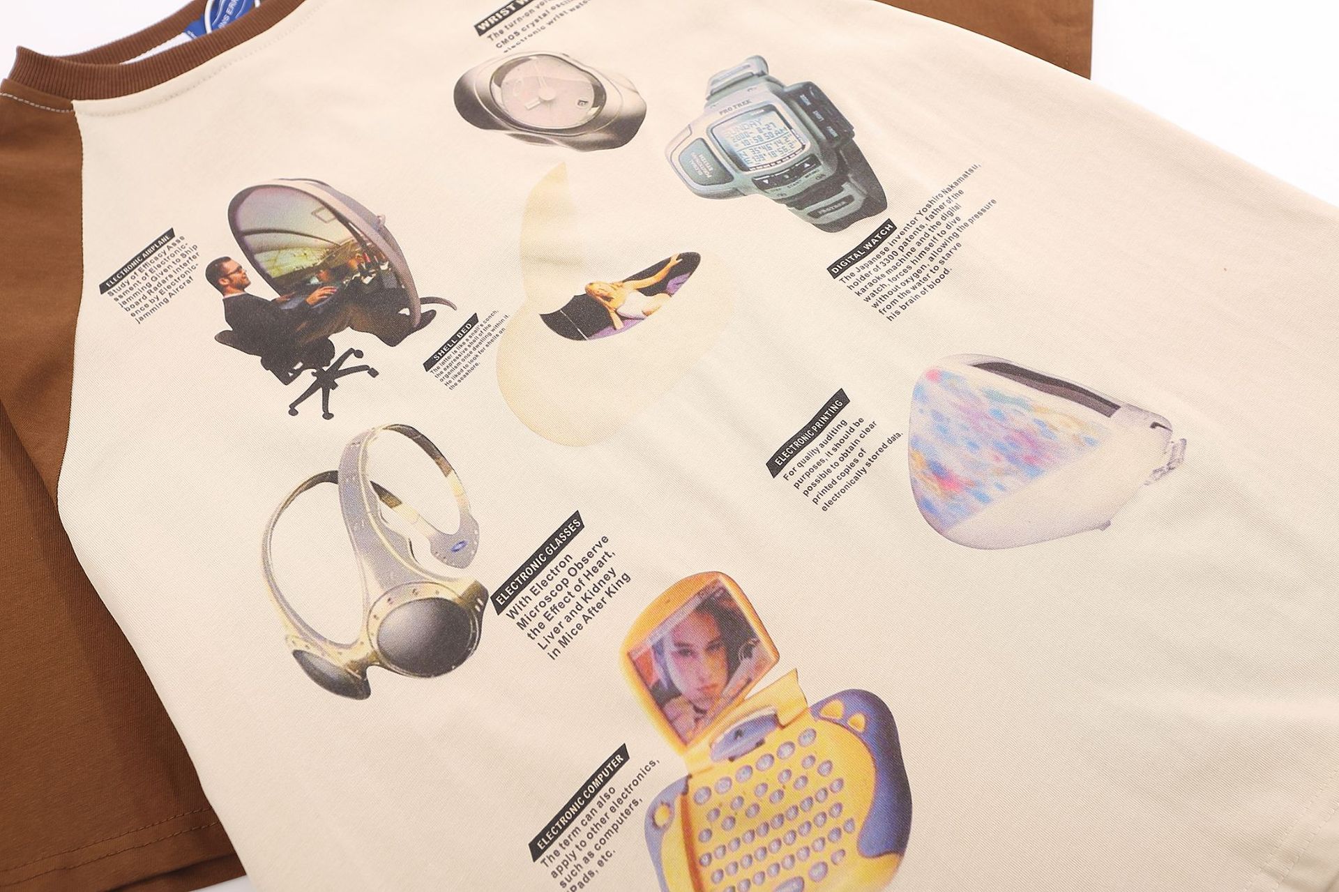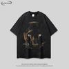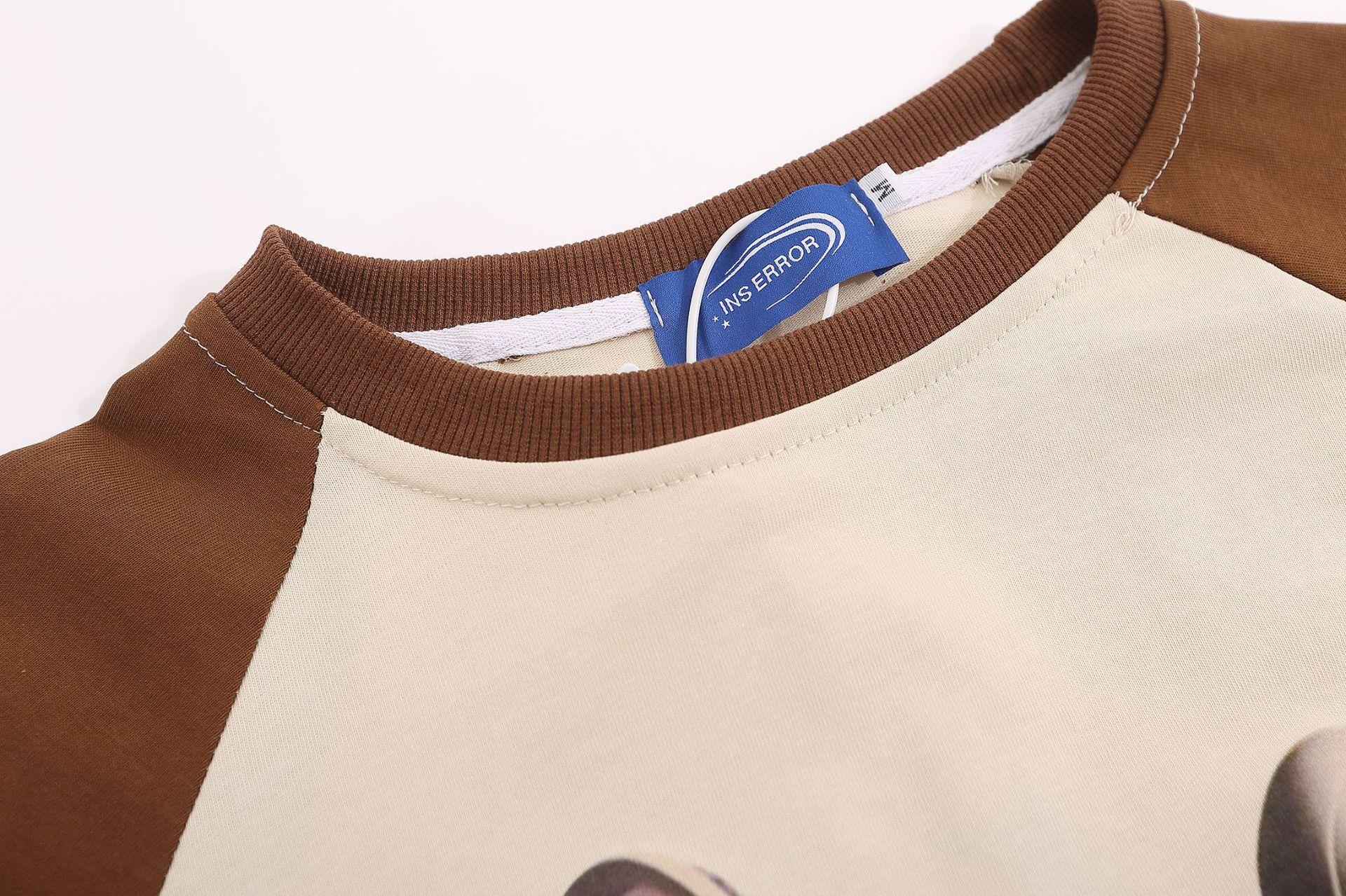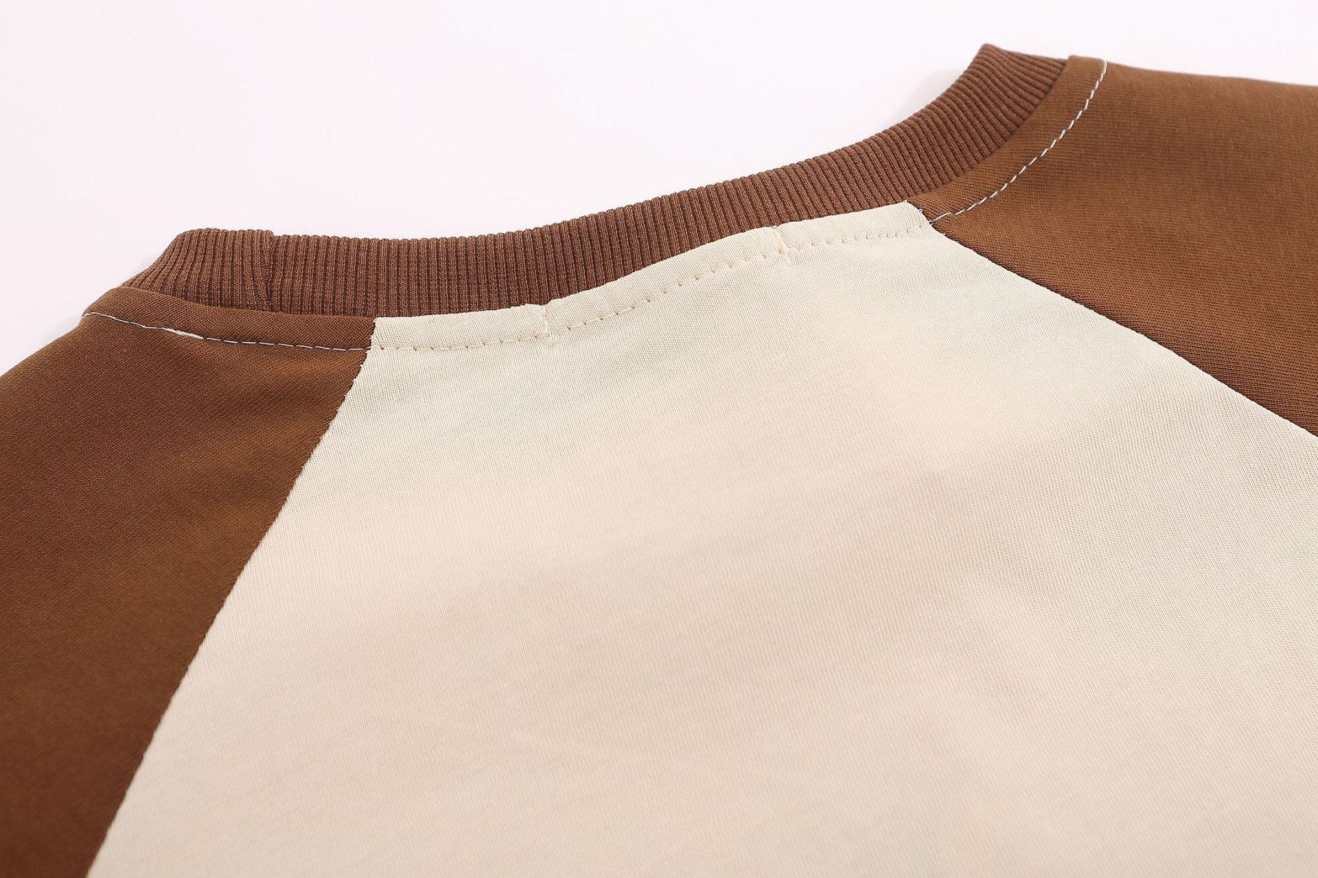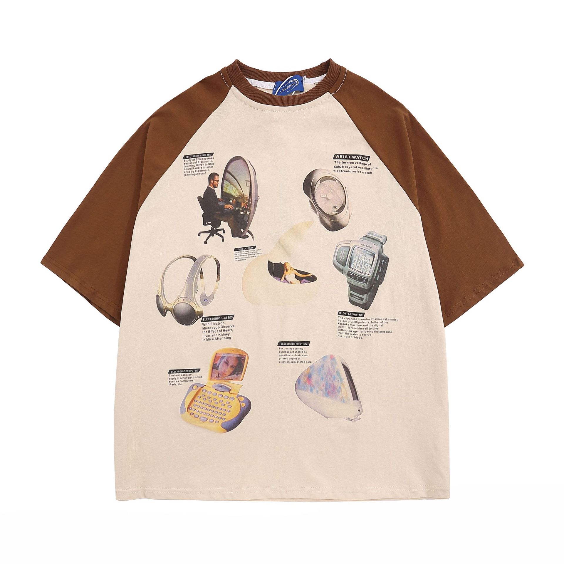Camiseta de manga corta raglán con estampado de bloques de color retro estilo americano para hombre y mujer, top holgado de media manga de verano a la moda para parejas.