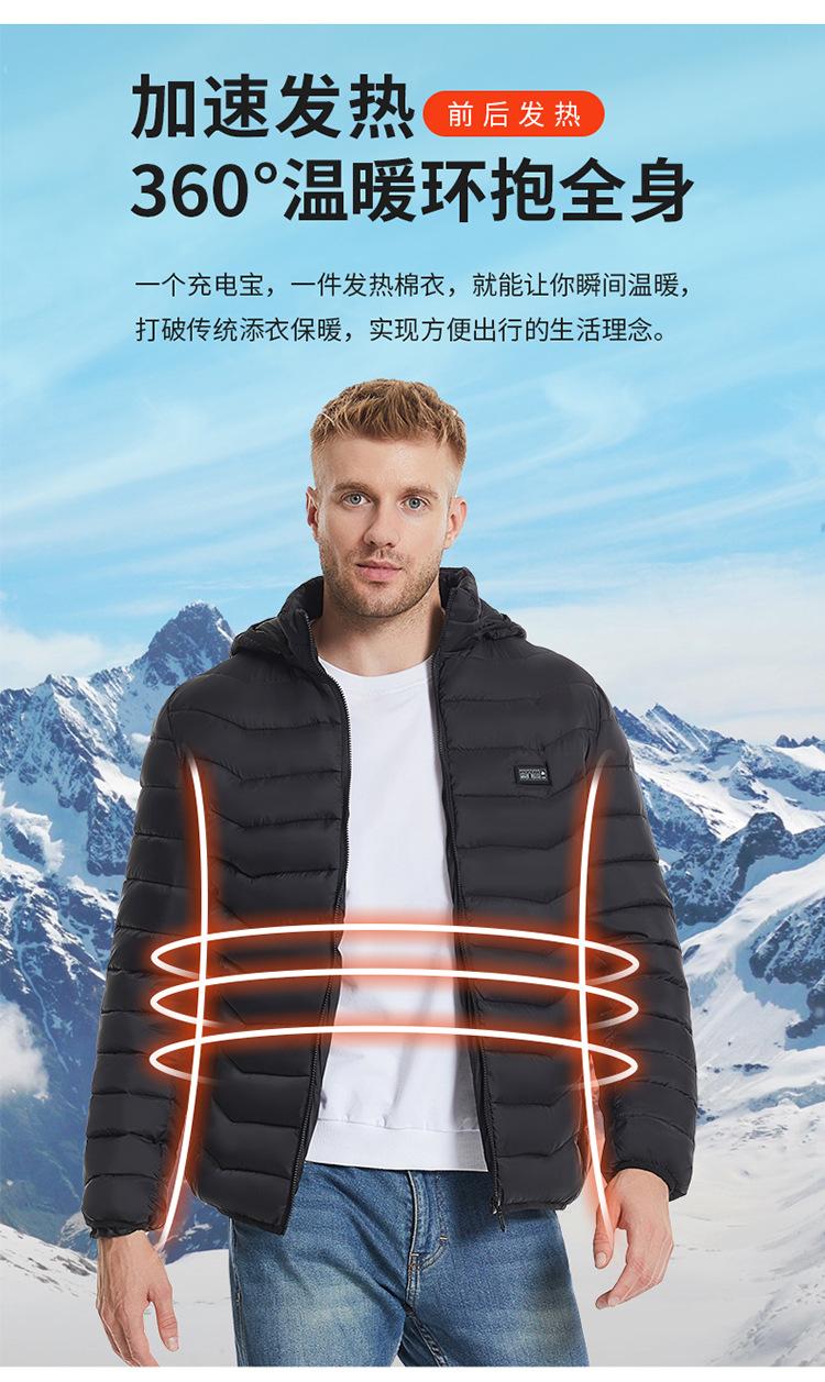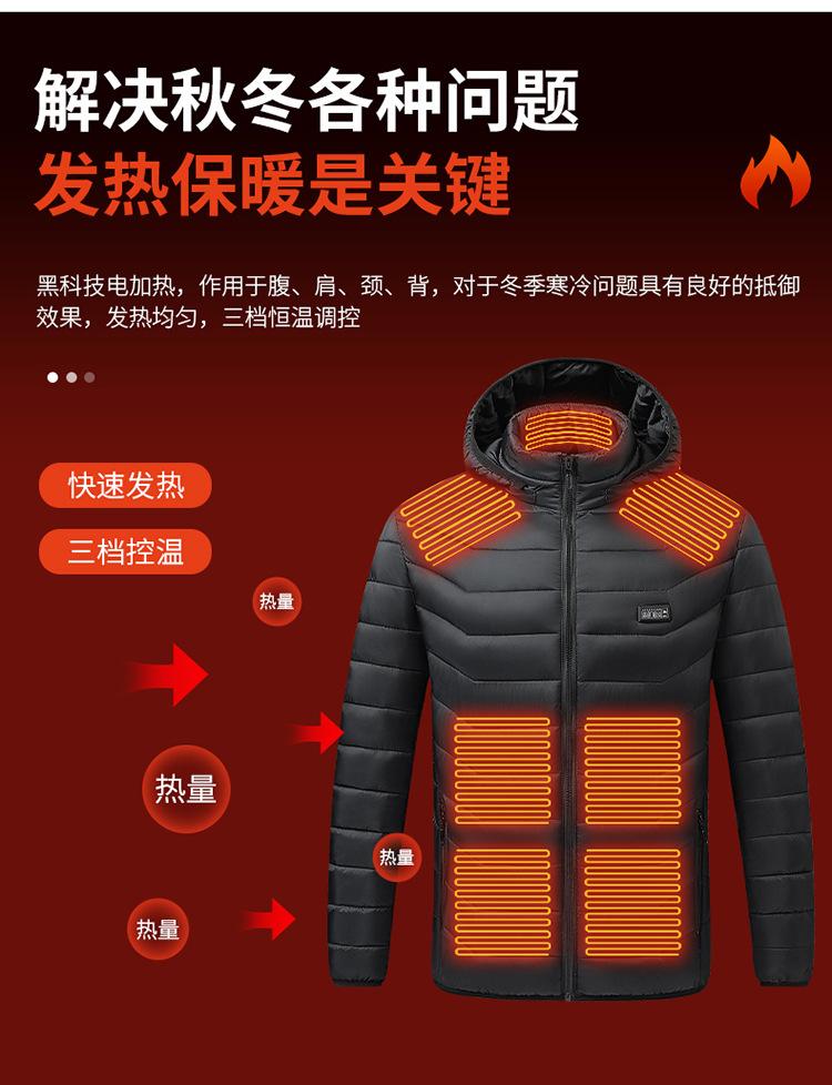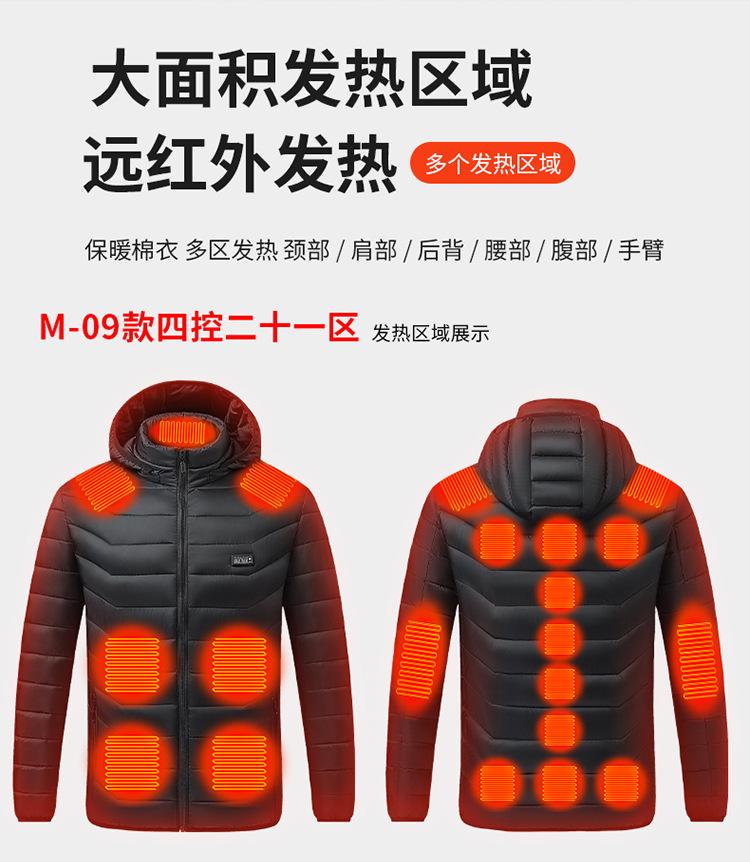 Ropa de abrigo con calefacción eléctrica de temperatura constante USB, nueva ropa de otoño e invierno con cuatro zonas de control 21, ropa acolchada de algodón, venta al por mayor de fábrica