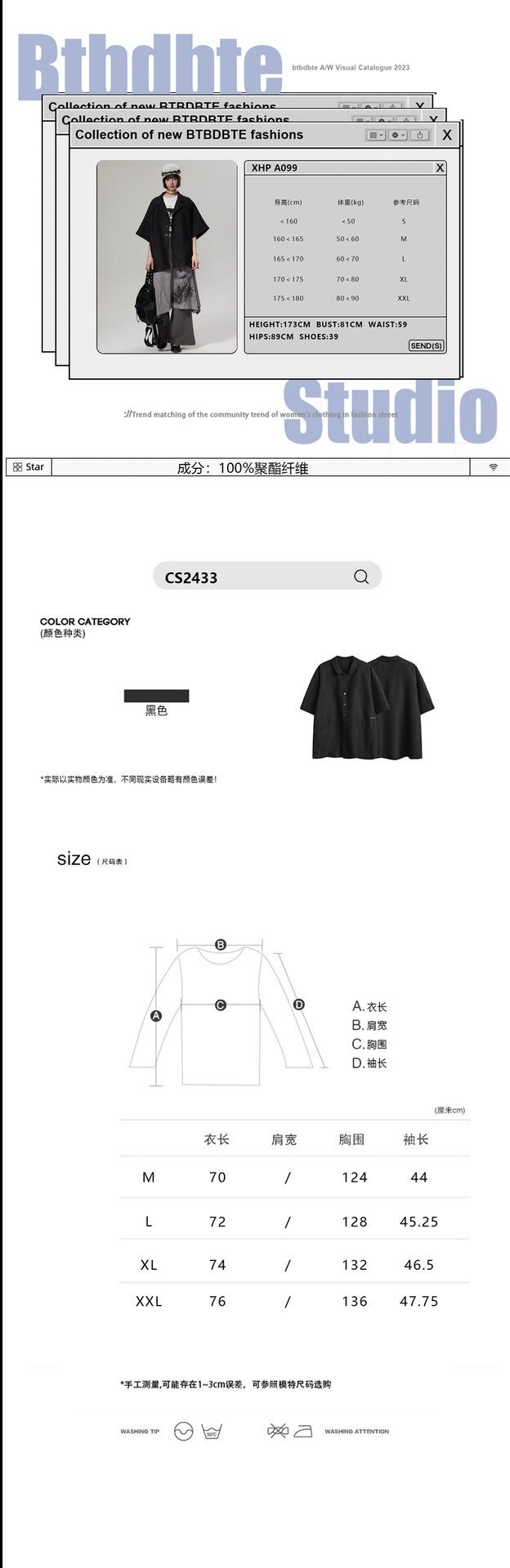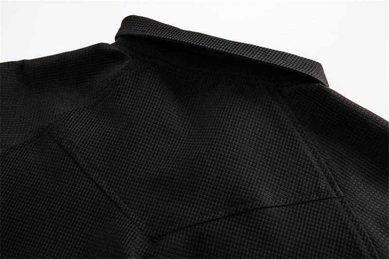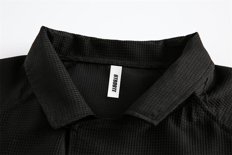 Verano Nuevo Estilo Americano Marca de Moda Textura Camisa de Manga Corta para Hombre Básica Simple Holgada Negra Camisa Chaqueta