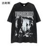 Camiseta retro de comercio exterior LAZADA de manga corta para hombre, de verano, de marca de moda pequeña, con estampado de gran tamaño, chaqueta de media manga, venta al por mayor