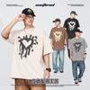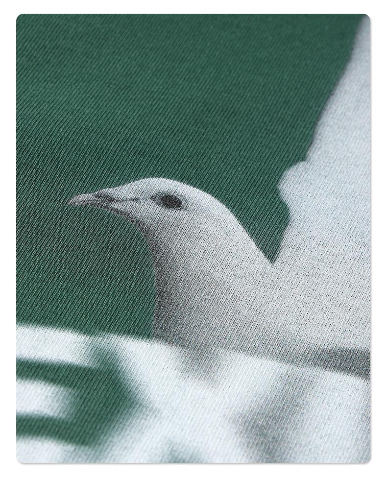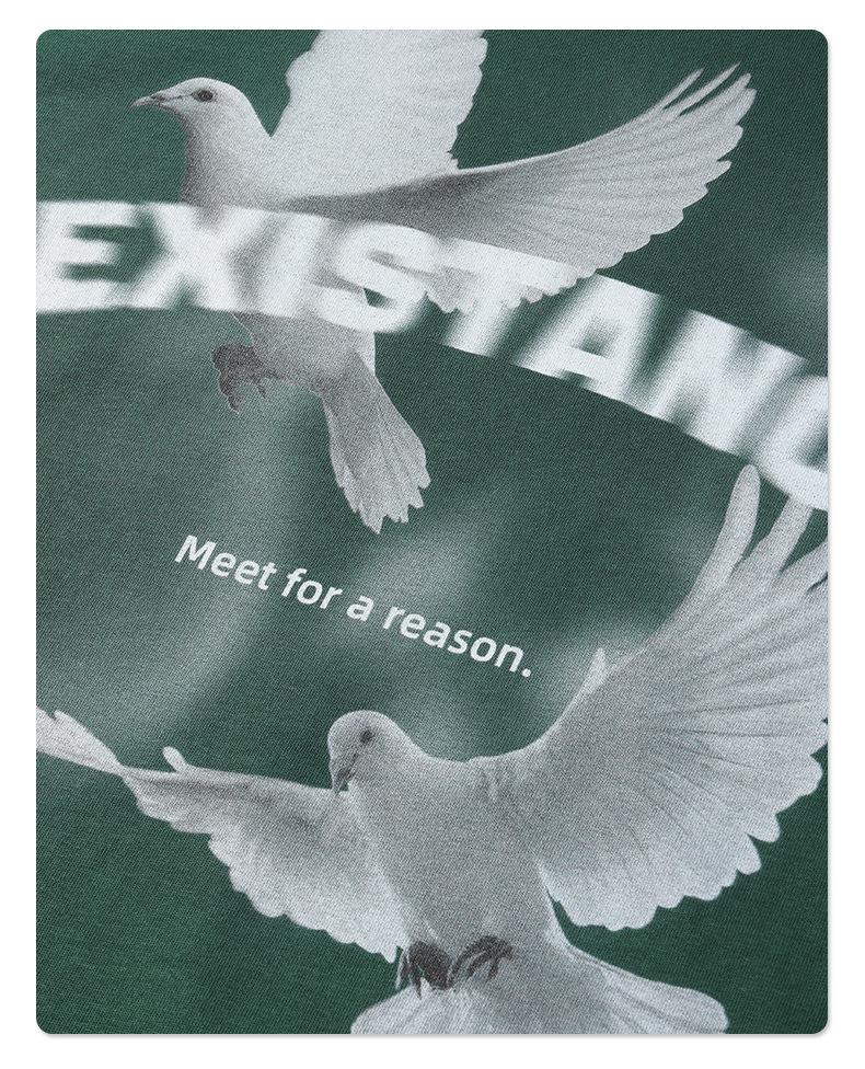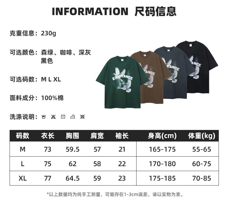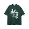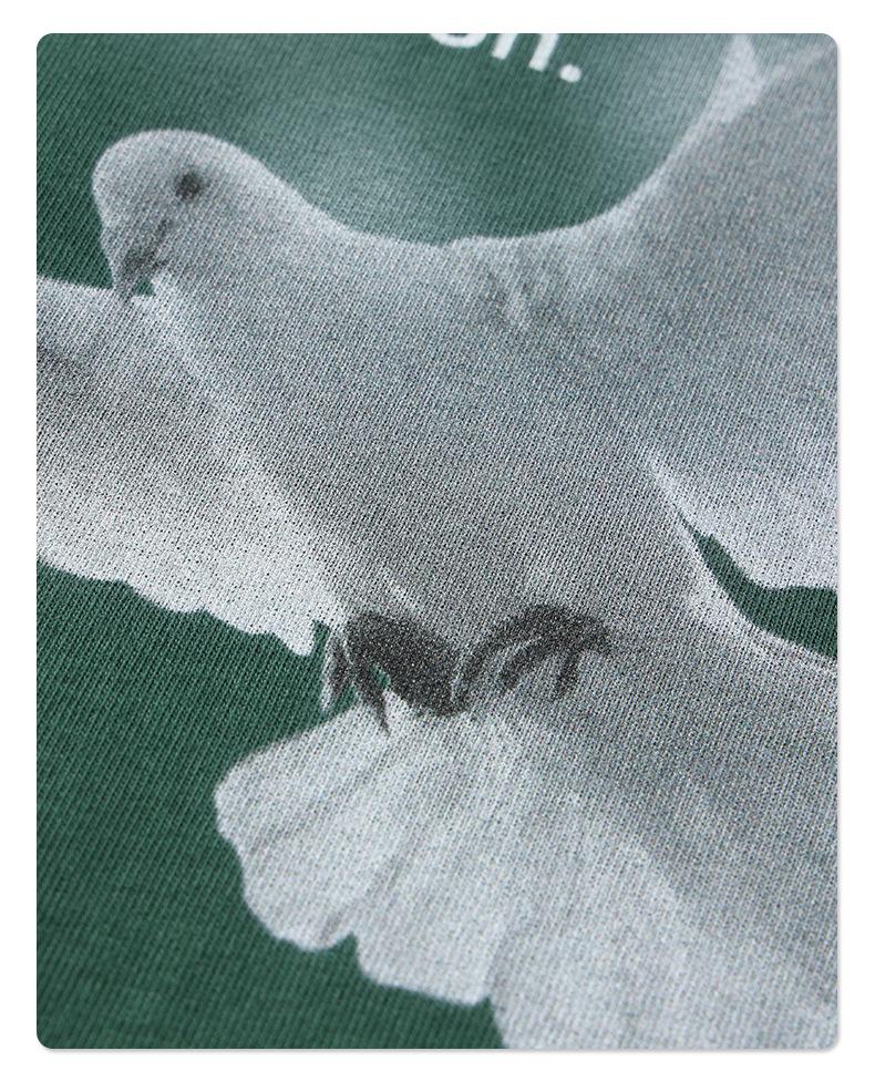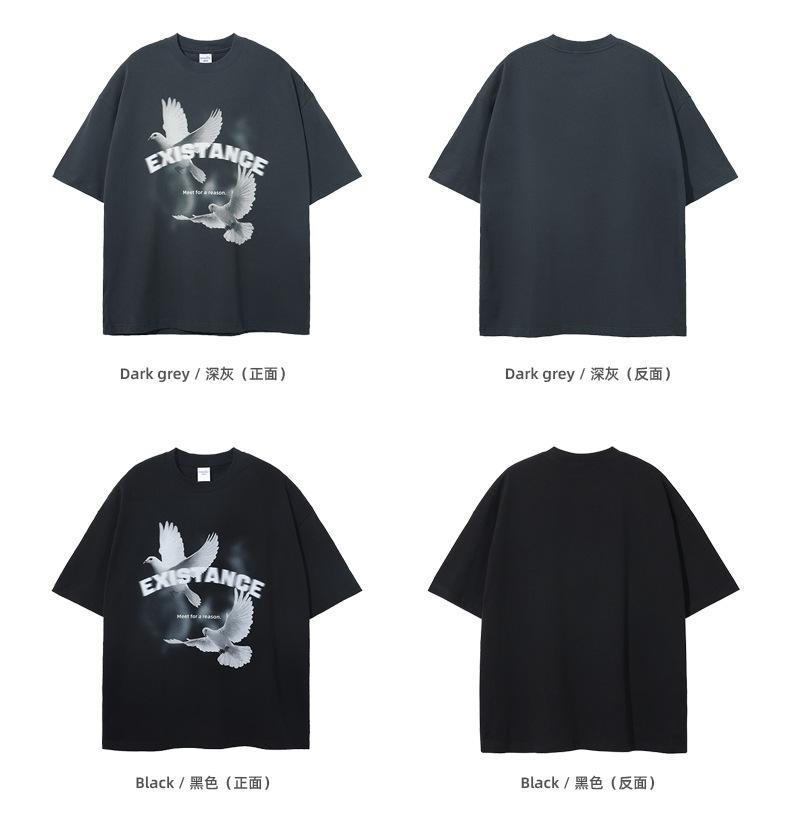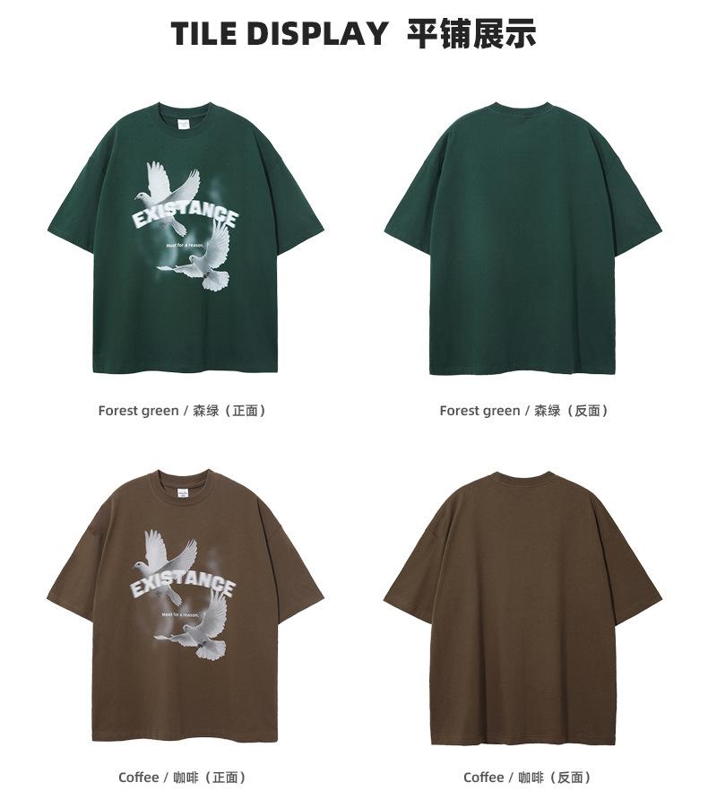 ARTIE Marca de Moda para Hombre 230g Doble Hilo Algodón Puro Estampado Paloma de la Paz Manga Corta Camiseta Holgada para Hombre Algodón Puro Top