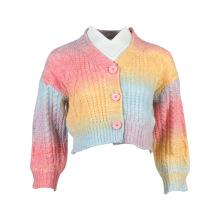 Suéter navideño corto con degradado de arcoíris para mujer de Xirulong, suéter tipo cárdigan ajustado de estilo europeo y americano de comercio exterior de eBay