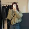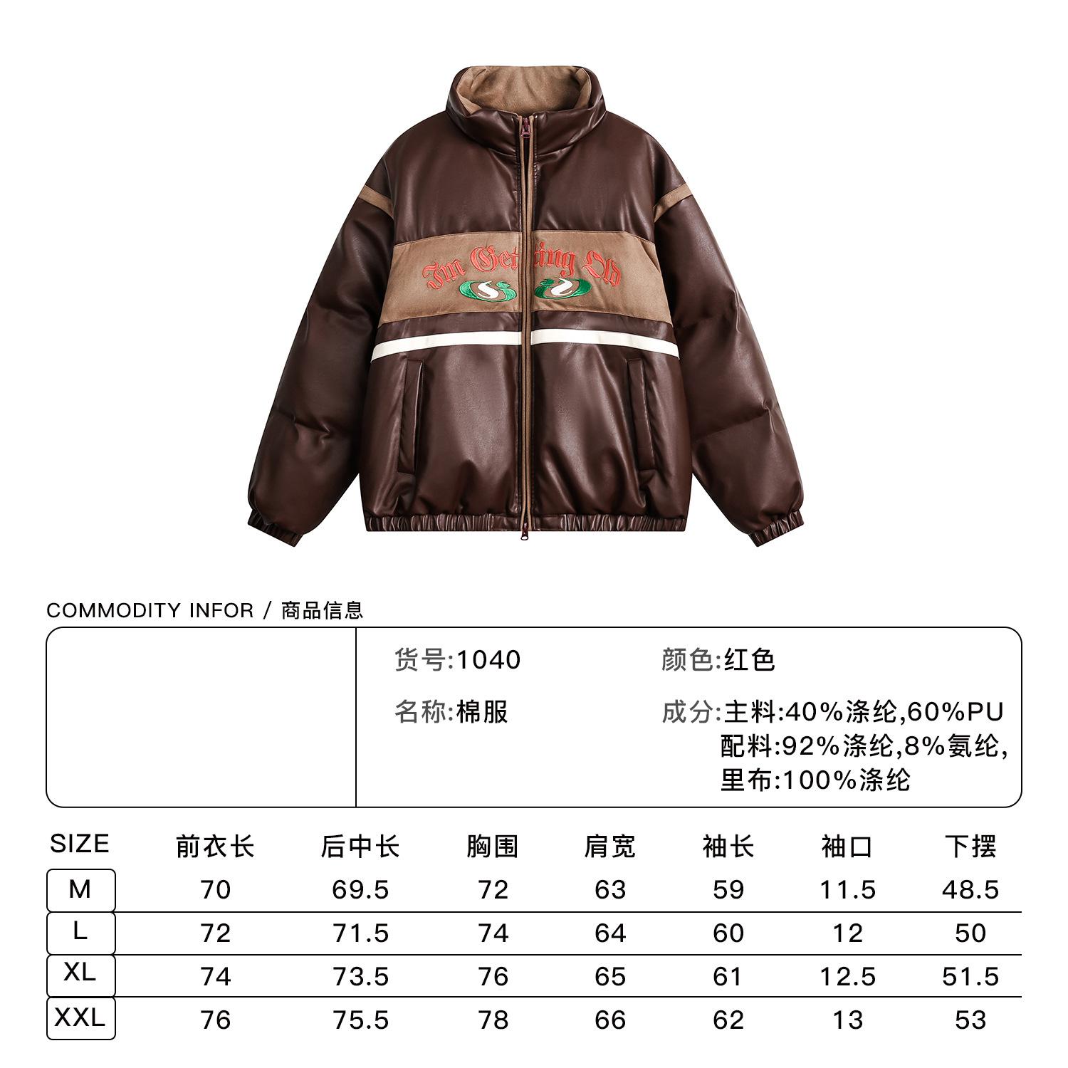 Ropa de verano del sur 2023 Invierno nuevo costuras de color en contraste gamuza cuello alto ropa acolchada de algodón retro japonés holgada cuero ropa acolchada de algodón