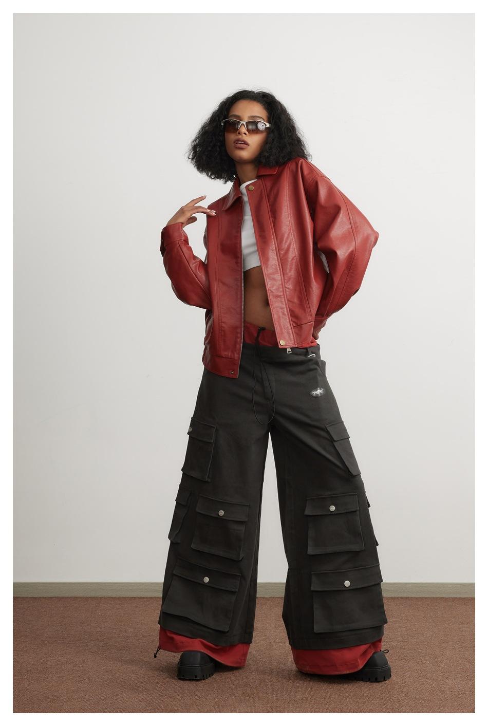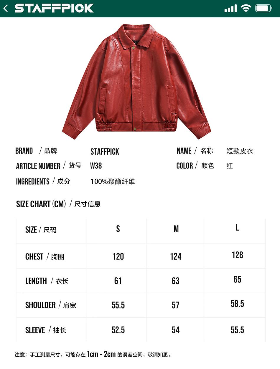 STAFFPICK Chaqueta de Cuero PU Americana de Moda Nacional para Hombre y Mujer Marca de Moda Nicho Dulce Cool Spice Girl Chaqueta Corta de Cuero W38