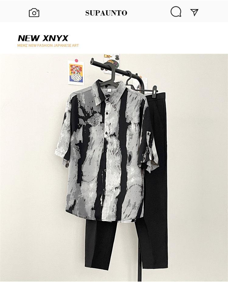 Camisa de manga corta de verano para hombre, estilo japonés, estilo callejero, holgada, con personalidad, de marca popular, combina con todo, camisa de media manga.
